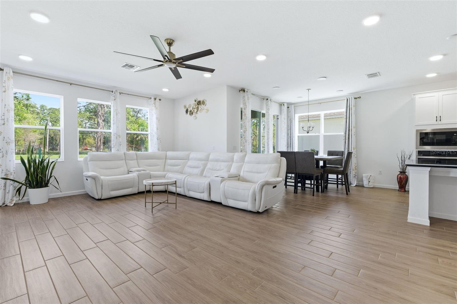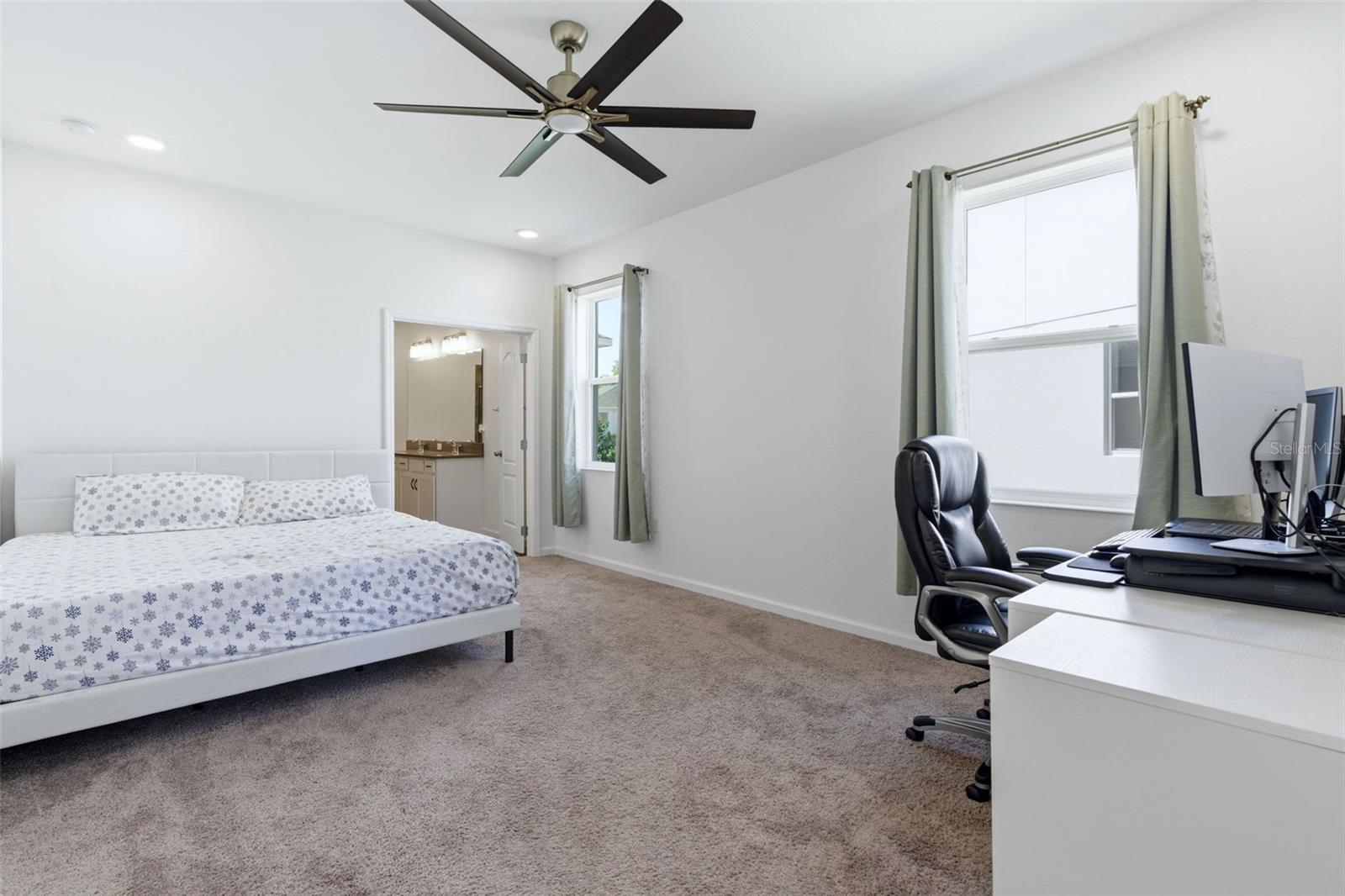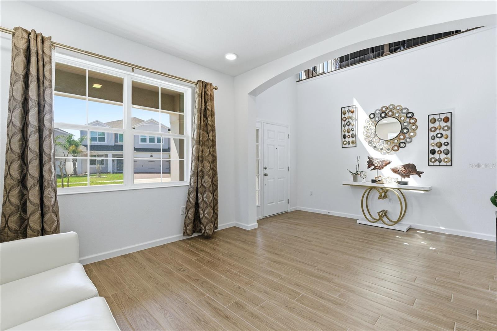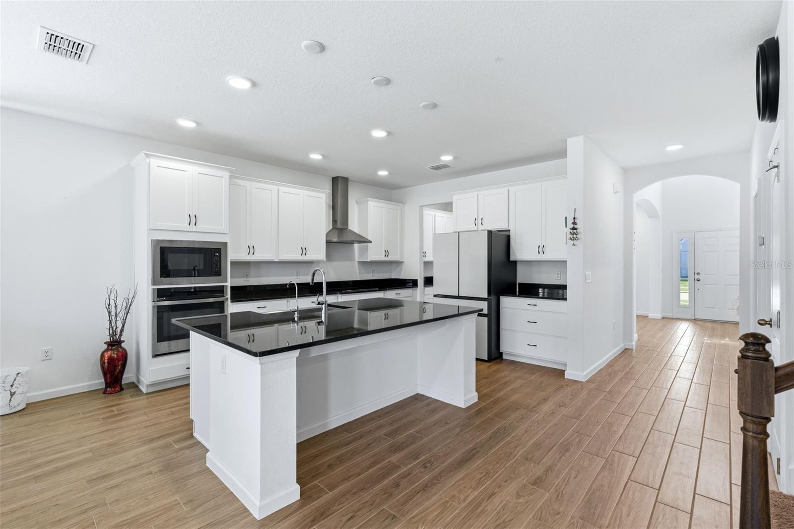 Welcome to this stunning, nearly new home located in the exclusive gated community of Bartrams Landing at St. Johns, a charming enclave of just 31 homes offering a peaceful, family-oriented lifestyle complete with a private playground. Built in 2023, this spacious and thoughtfully designed residence features 5 bedrooms, 4 bathrooms, and an expansive 3-car garage, with 3,779 square feet of beautifully appointed living space. From the moment you enter, you’ll be impressed by the soaring high ceilings, abundant natural light, and open-concept layout that seamlessly blends comfort and elegance—perfect for both everyday living and entertaining. The heart of the home is the oversized kitchen, showcasing stainless steel appliances, granite countertops, and a large center island that flows effortlessly into the family and dining areas, creating a true gathering space. A separate formal living room offers additional flexibility for hosting or relaxation. Designed with both style and functionality in mind, the home features luxury vinyl plank flooring throughout the main living areas and upgraded carpeting in the bedrooms. With two primary suites—one conveniently located on the first floor and another upstairs—this layout is ideal for multi-generational living or added privacy. The remaining three bedrooms are located upstairs, along with a spacious loft currently configured as a media room complete with a projector system and surround sound speakers. Enjoy ample storage throughout, including generous walk-in closets. Step outside to unwind on the covered upstairs balcony or relax on the ground-level covered patio overlooking a large backyard with serene pond views—perfect for enjoying Florida’s beautiful weather. Additional highlights include a whole-house water purification and filtration system, enhancing both comfort and peace of mind. This move-in ready home truly has it all and is ideal for a growing family seeking space, style, and modern convenience. Conveniently located near dining, shopping, healthcare, and major highways for an easy commute.