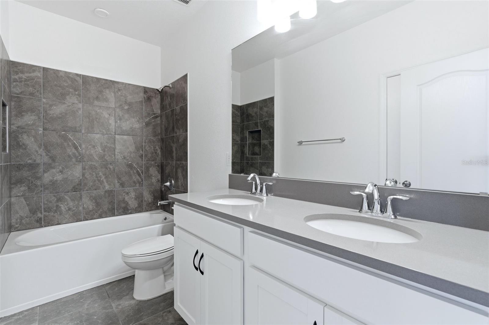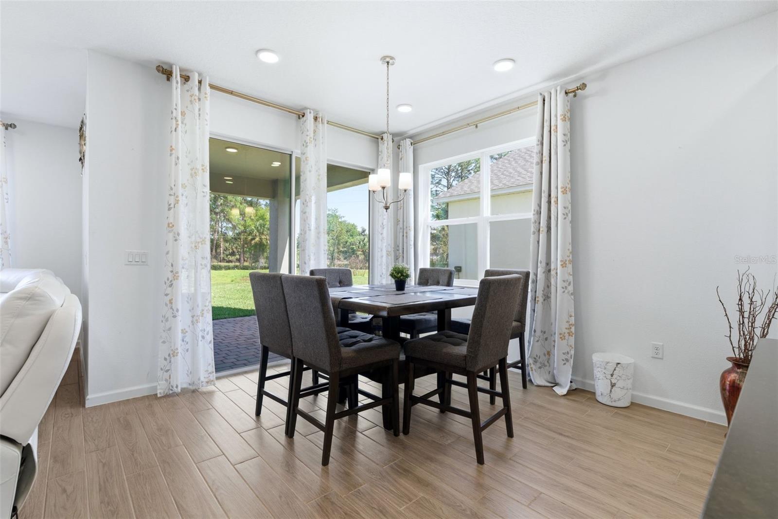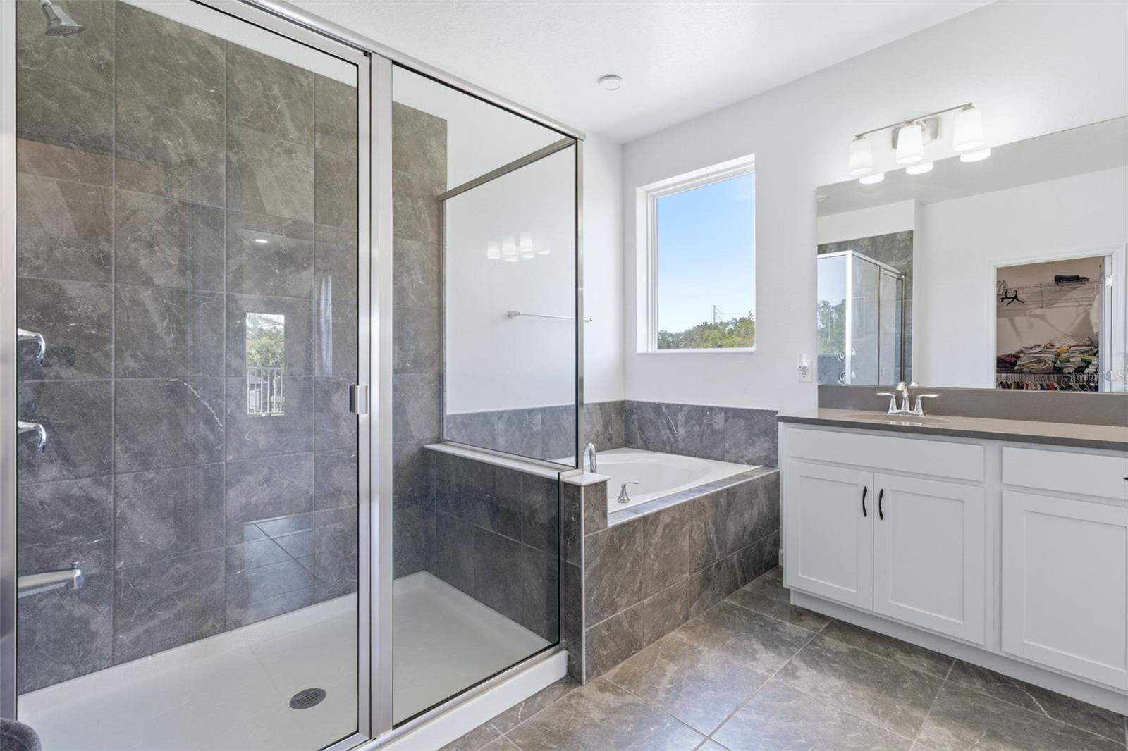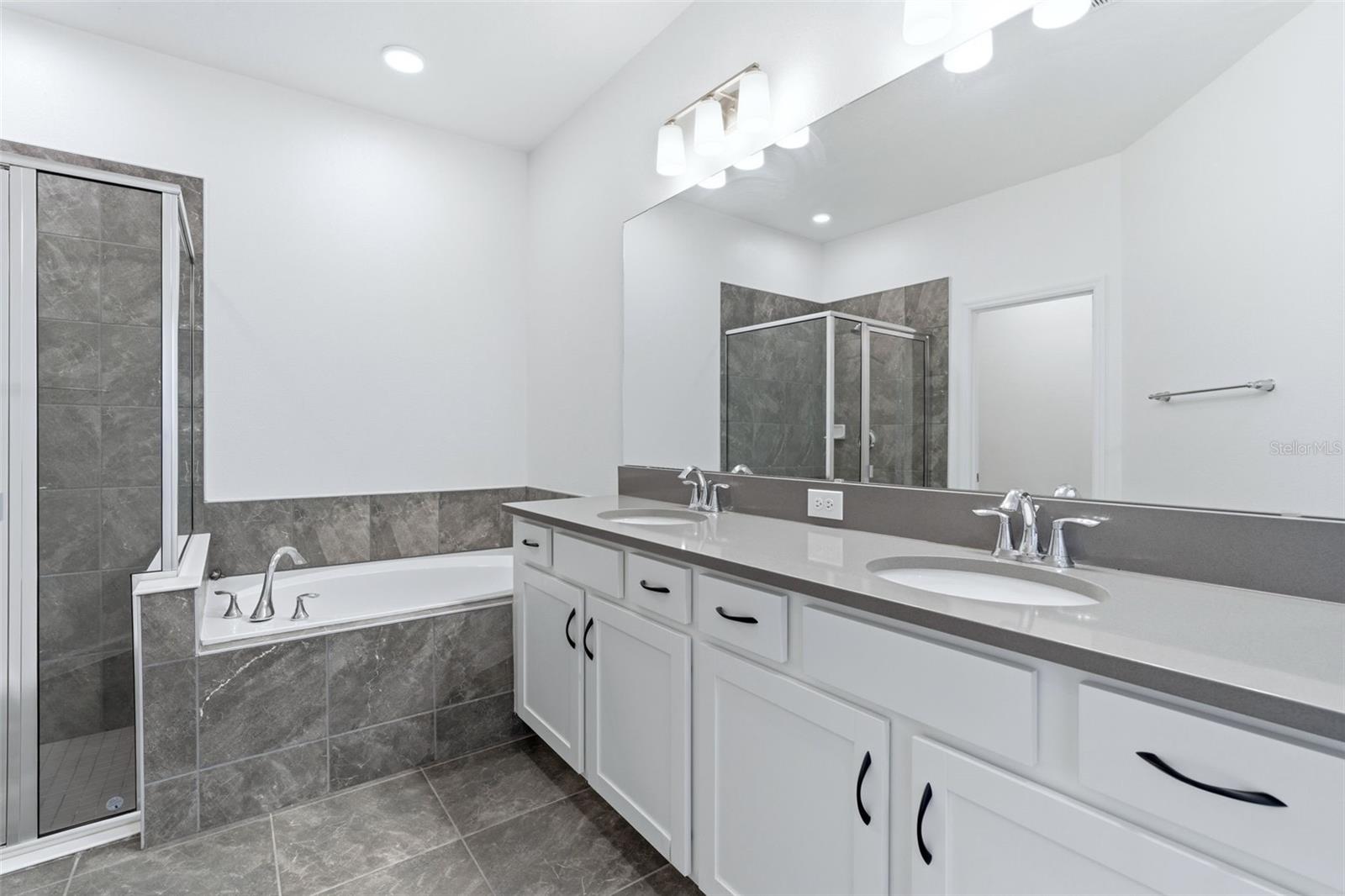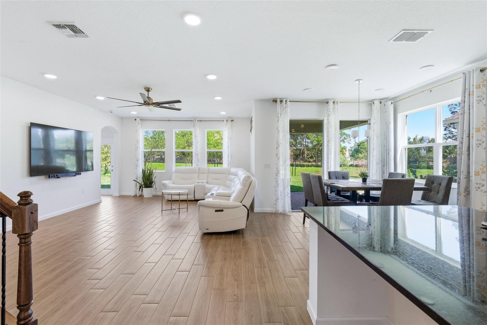 Welcome to this stunning, nearly new home located in the exclusive gated community of Bartrams Landing at St. Johns, a charming enclave of just 31 homes offering a peaceful, family-oriented lifestyle complete with a private playground. Built in 2023, this spacious and thoughtfully designed residence features 5 bedrooms, 4 bathrooms, and an expansive 3-car garage, with 3,779 square feet of beautifully appointed living space. From the moment you enter, you’ll be impressed by the soaring high ceilings, abundant natural light, and open-concept layout that seamlessly blends comfort and elegance—perfect for both everyday living and entertaining. The heart of the home is the oversized kitchen, showcasing stainless steel appliances, granite countertops, and a large center island that flows effortlessly into the family and dining areas, creating a true gathering space. A separate formal living room offers additional flexibility for hosting or relaxation. Designed with both style and functionality in mind, the home features luxury vinyl plank flooring throughout the main living areas and upgraded carpeting in the bedrooms. With two primary suites—one conveniently located on the first floor and another upstairs—this layout is ideal for multi-generational living or added privacy. The remaining three bedrooms are located upstairs, along with a spacious loft currently configured as a media room complete with a projector system and surround sound speakers. Enjoy ample storage throughout, including generous walk-in closets. Step outside to unwind on the covered upstairs balcony or relax on the ground-level covered patio overlooking a large backyard with serene pond views—perfect for enjoying Florida’s beautiful weather. Additional highlights include a whole-house water purification and filtration system, enhancing both comfort and peace of mind. This move-in ready home truly has it all and is ideal for a growing family seeking space, style, and modern convenience. Conveniently located near dining, shopping, healthcare, and major highways for an easy commute.