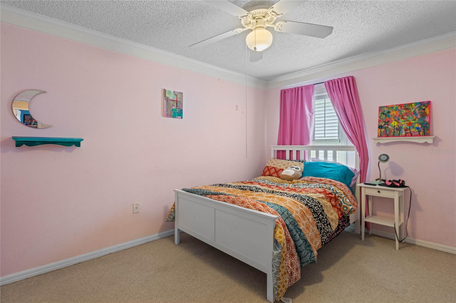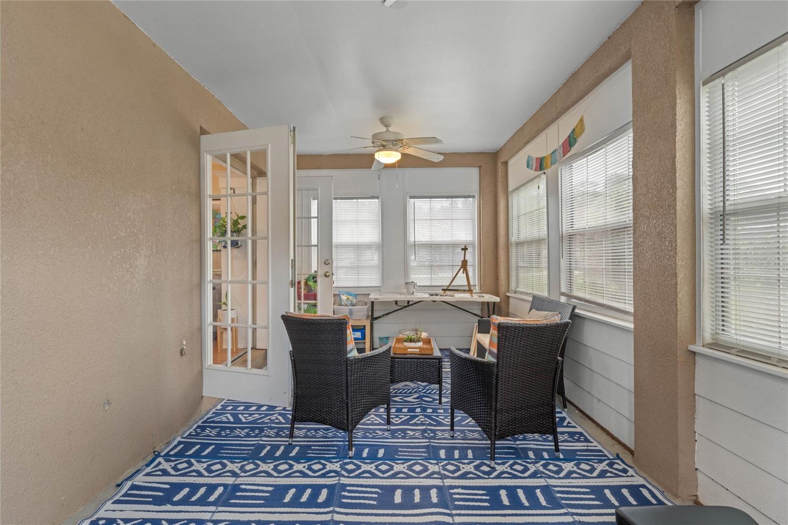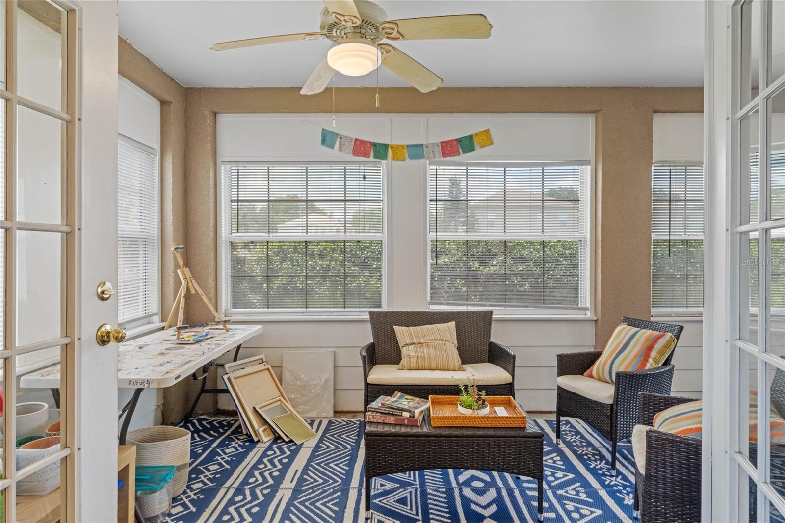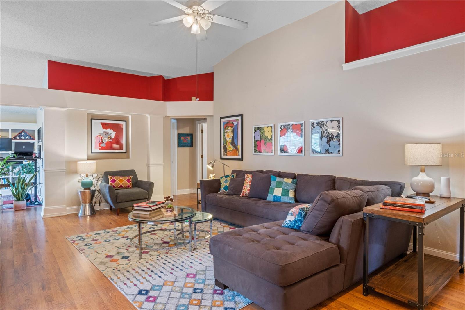 A bright & spacious 4-bedroom home near Mayfair Country Club in Sanford is just waiting for you to make it your own. This 2,114sf home features a classic stucco exterior, tidy landscaping, and a welcoming covered entrance. As you first step inside, you're met with a bright, open floor plan with vaulted ceilings and beautiful laminate wood flooring. The sizeable living room flows into a semi-open concept kitchen with solid wood cabinetry featuring stylish pulls, newer stainless steel appliances including an electric range/oven combo, refrigerator, built-in microwave and dishwasher, a breakfast area, and an adjoining family room with built-in bookcases and French doors leading to the bonus area. The fenced-in backyard is perfect for relaxation and entertaining, featuring a patio, a small green space, lovely water features views, and ample grilling room. Enjoy restful nights in the primary bedroom, which offers abundant closet space and an en suite bathroom with dual sinks, a soaking tub, and a separate shower. Three additional bedrooms provide comfortable living spaces with built-in features. The full guest bathroom includes a shower/tub combination. Other highlights of this home include an attached 2-car garage, an indoor laundry area, and an enclosed bonus room with a dedicated window A/C unit. The central A/C system was replaced in 2022, the roof in 2018, and the water heater in 2021. Additionally, this home has the advantage of no neighbors to the south or west. It is conveniently located just steps from Mayfair Country Club, a 20-mile drive from Downtown Orlando, and near I-4 and 417, shopping, restaurants, recreational activities, Trailblazer Park, schools, and much more! Call now to schedule your private tour!