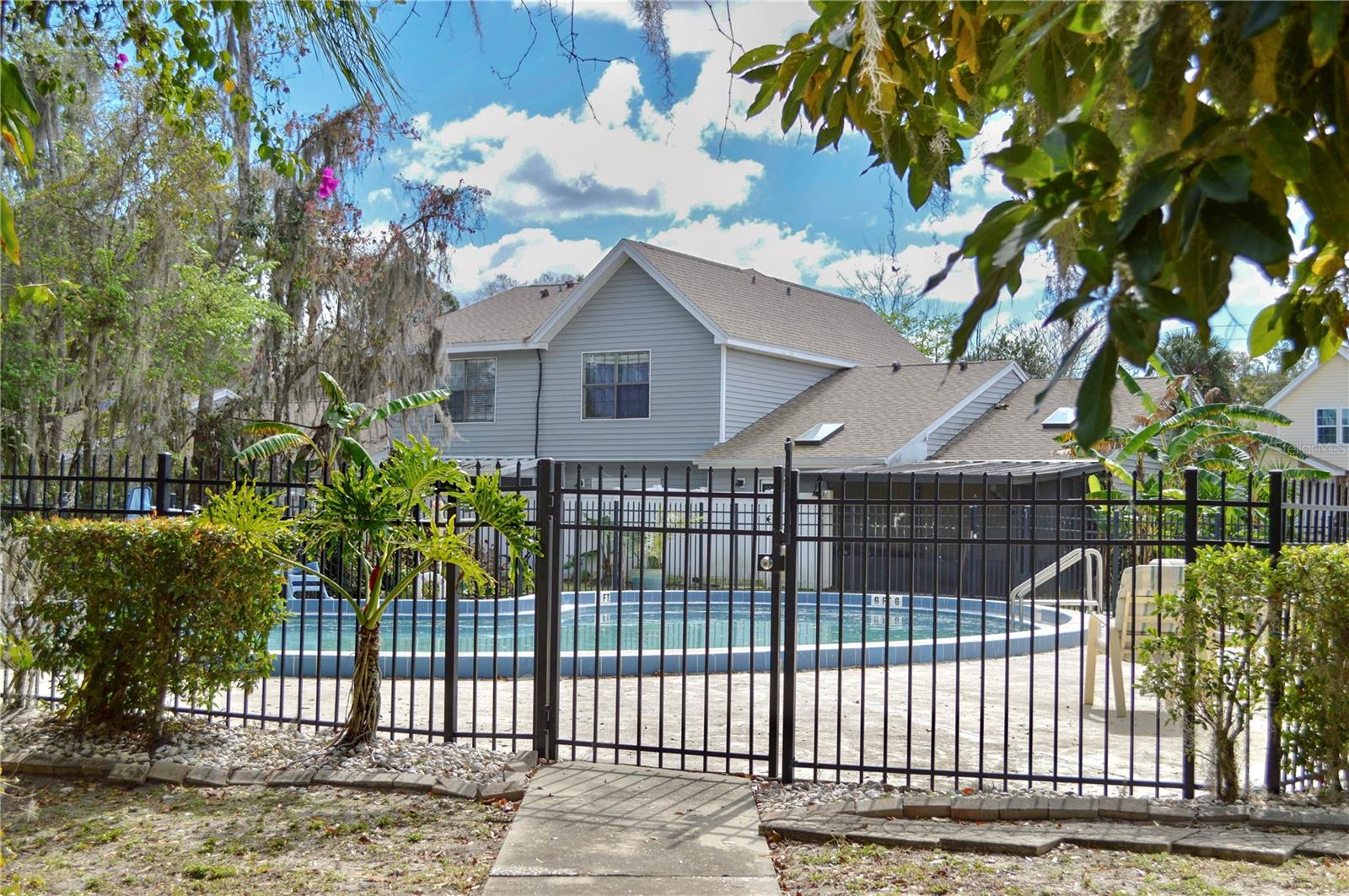 Welcome to this charming 2-bedroom, 2-bathroom end-unit townhome in the highly sought-after Hidden Lake community of Sanford. The kitchen features granite countertops and ample storage, while the open-concept living and dining area showcases vaulted ceilings, ceramic tile flooring, and a cozy fireplace—perfect for cool evenings. The private primary suite offers an en-suite bathroom with a walk-in shower, while the second bedroom is conveniently located near the guest bathroom. The home also includes the convenience of an in-unit laundry closet with a washer and dryer. A sliding glass door in the living room leads to your private fenced patio, ideal for relaxing or entertaining family and friends. Residents of this community enjoy access to a sparkling pool just a short walk from the unit. The townhome’s prime location puts you close to Seminole State College, the historic Sanford district, downtown Lake Mary, and Orlando Sanford Airport, with plenty of shopping and dining options nearby—all while enjoying the peaceful ambiance of this wonderful community. Don’t miss out on this opportunity—schedule your showing today!