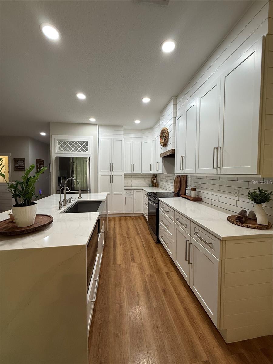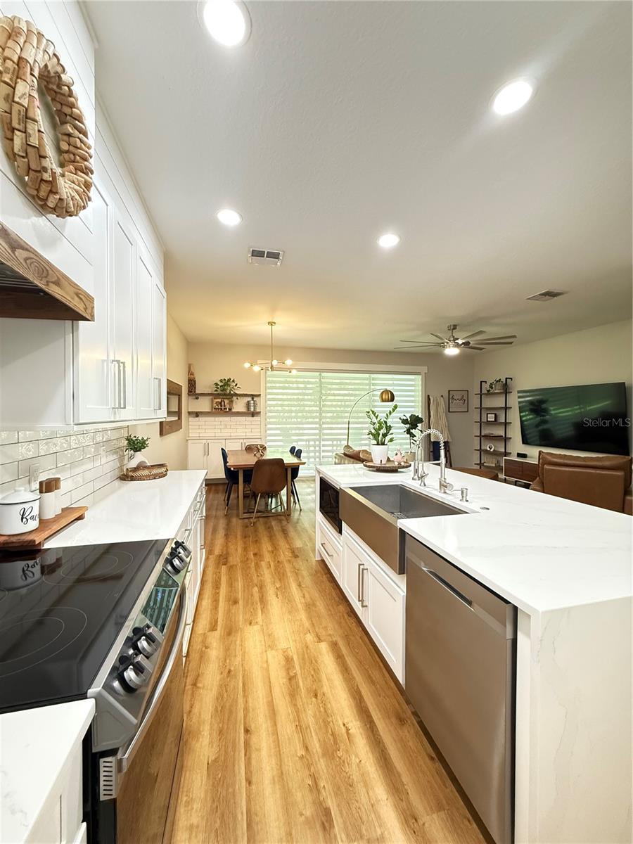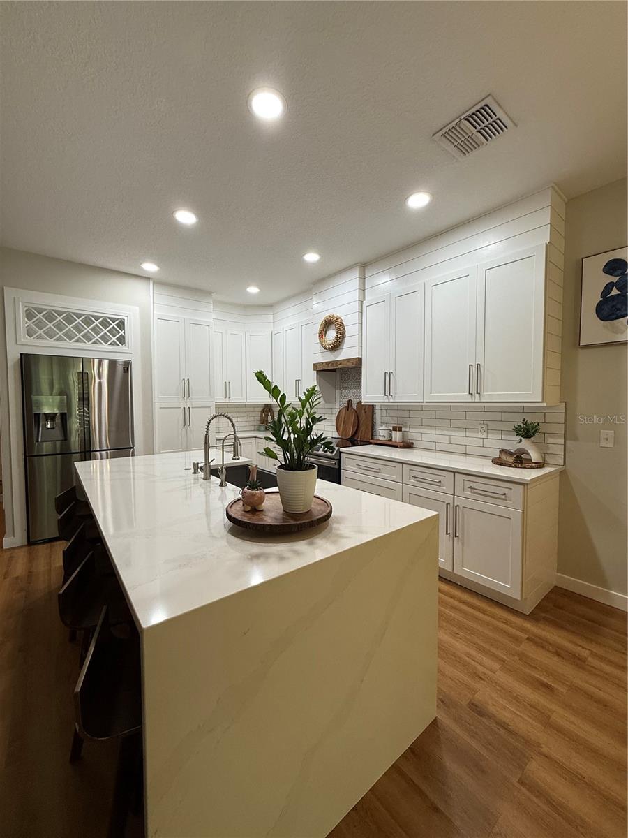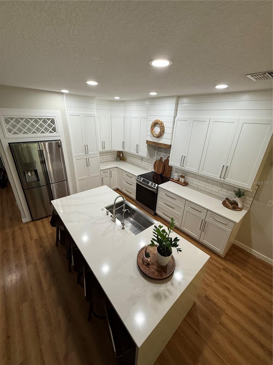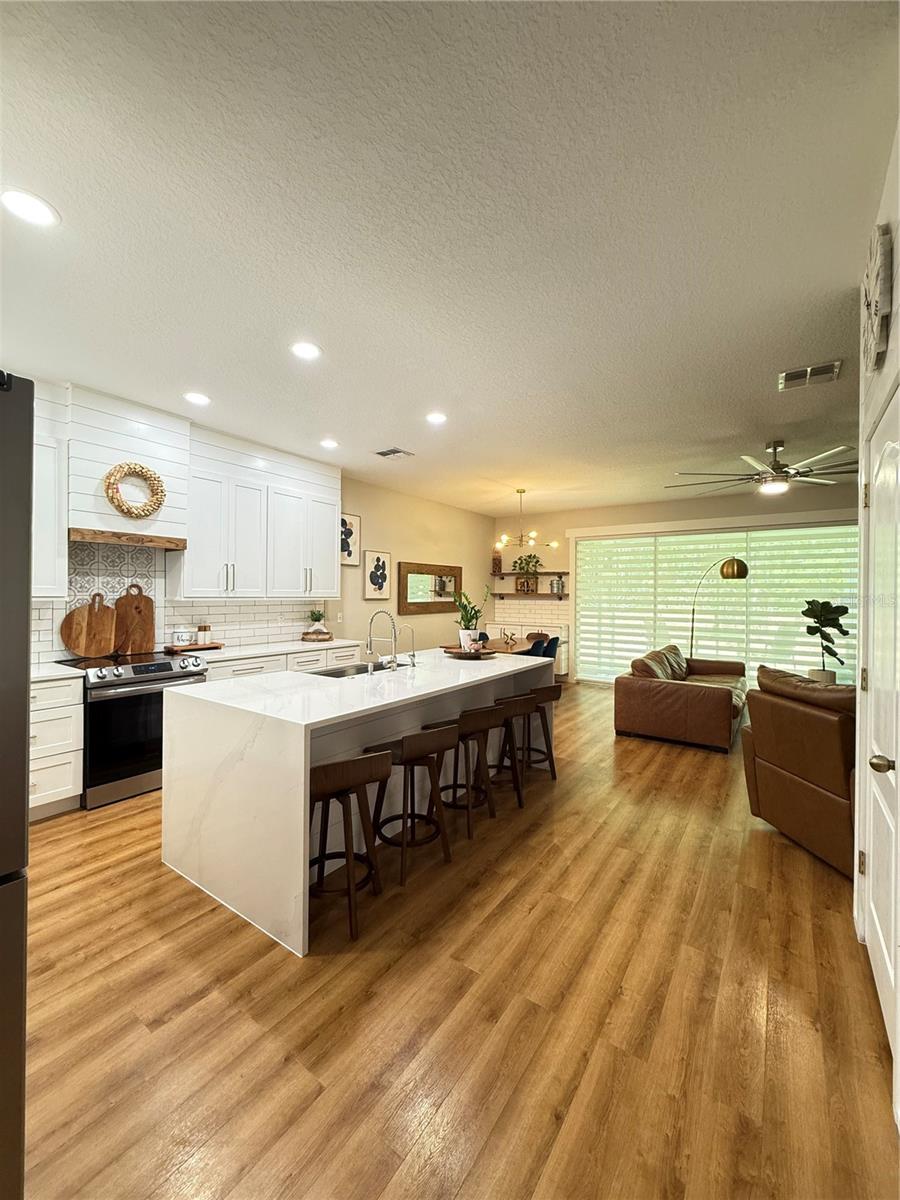 Welcome to a home that feels straight out of a design magazine! This 3-bedroom, 2.5-bath luxury townhouse has been completely transformed with high-end finishes and jaw-dropping details. The kitchen will steal your heart with its all-white cabinetry, dramatic quartz Calacatta waterfall countertops, shiplap detail soaring to the ceiling, and stainless steel appliances included. A stylish dry bar next to the dining area makes entertaining effortless and elegant. The open layout glows with brand-new luxury laminate flooring upstairs and down, while the owner’s suite features a refreshed bathroom and a walk-in closet with custom built-ins. The first-floor powder room has been fully remodeled, and smart recessed lights (Alexa supported), motorized blinds, and a brand-new 2024 A/C add comfort and convenience. Step outside to your private screened lanai with no rear or front neighbors, plus extra parking right at your doorstep. Riverview Townhomes offers gated security, a beautiful pool, playground, and even exclusive private access to the SunRail station—your direct line to work and play across Central Florida. Perfectly located near shopping, dining, major highways, and Orlando Sanford International Airport. This is more than a home—it’s a lifestyle upgrade waiting for you!