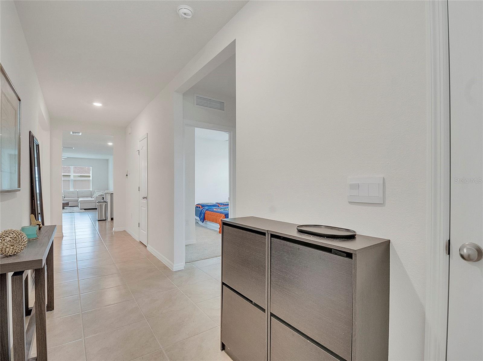 Welcome to this beautiful home in Sanford, built just over a year ago and offering modern design, comfort, and convenience. Situated on a desirable corner lot nearly a quarter acre in size, this property combines space, privacy, and an unbeatable location. Inside, you'll love the spacious kitchen with a large island, dedicated dining area, and a generous pantry for extra storage. The kitchen is outfitted with stainless steel appliances, perfect for both everyday use and entertaining. The primary suite is thoughtfully positioned at the back of the home for added privacy and features an en suite bathroom with a double vanity, a spacious shower/tub area, and a large walk-in closet. Additional highlights include a low HOA fee under $100, NO CDD, and proximity to everything you need. You'll be just minutes from Sanford International Airport, Lake Mary shopping plazas, and the charm of Historic Downtown Sanford.