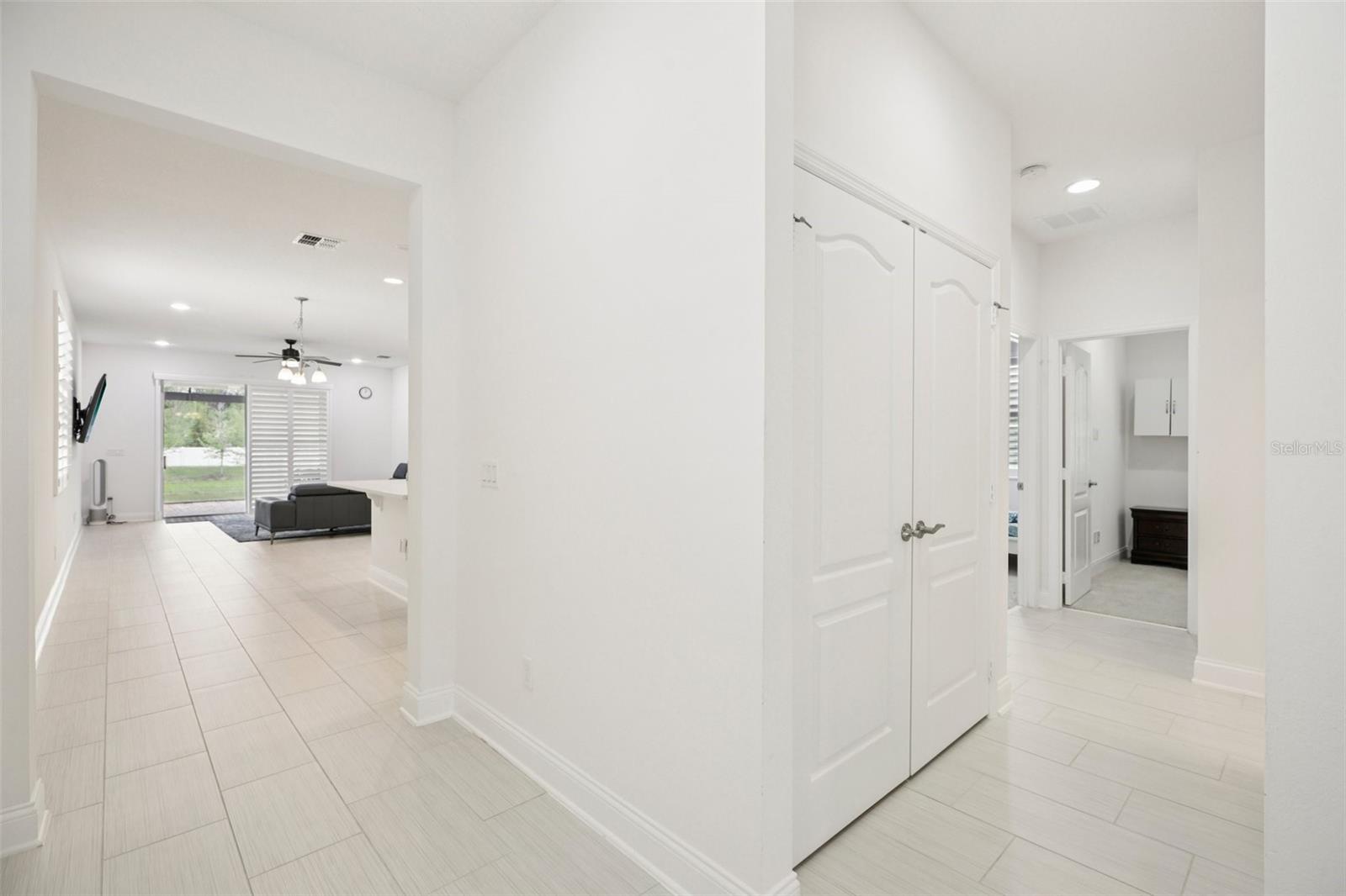 From the moment you pull up the brick paver driveway, this 3-bedroom, 2-bathroom home feels special. Inside, the main living areas flow perfectly with large plank tile flooring that handles daily life with ease and style. The kitchen is a total standout—you’ll love the crisp white cabinetry with extra-tall uppers for all your storage needs, gleaming quartz countertops, and a chic tile backsplash. It’s finished with a deep basin sink that makes cleanup a breeze. Retreat to the primary suite, where the ensuite offers a dual-sink vanity and a spacious tiled shower featuring a handy built-in ledge and a separate water closet. Step outside to the screened-in lanai to enjoy your morning coffee on the brick pavers while taking in peaceful pond views. This is the one you’ve been waiting for!