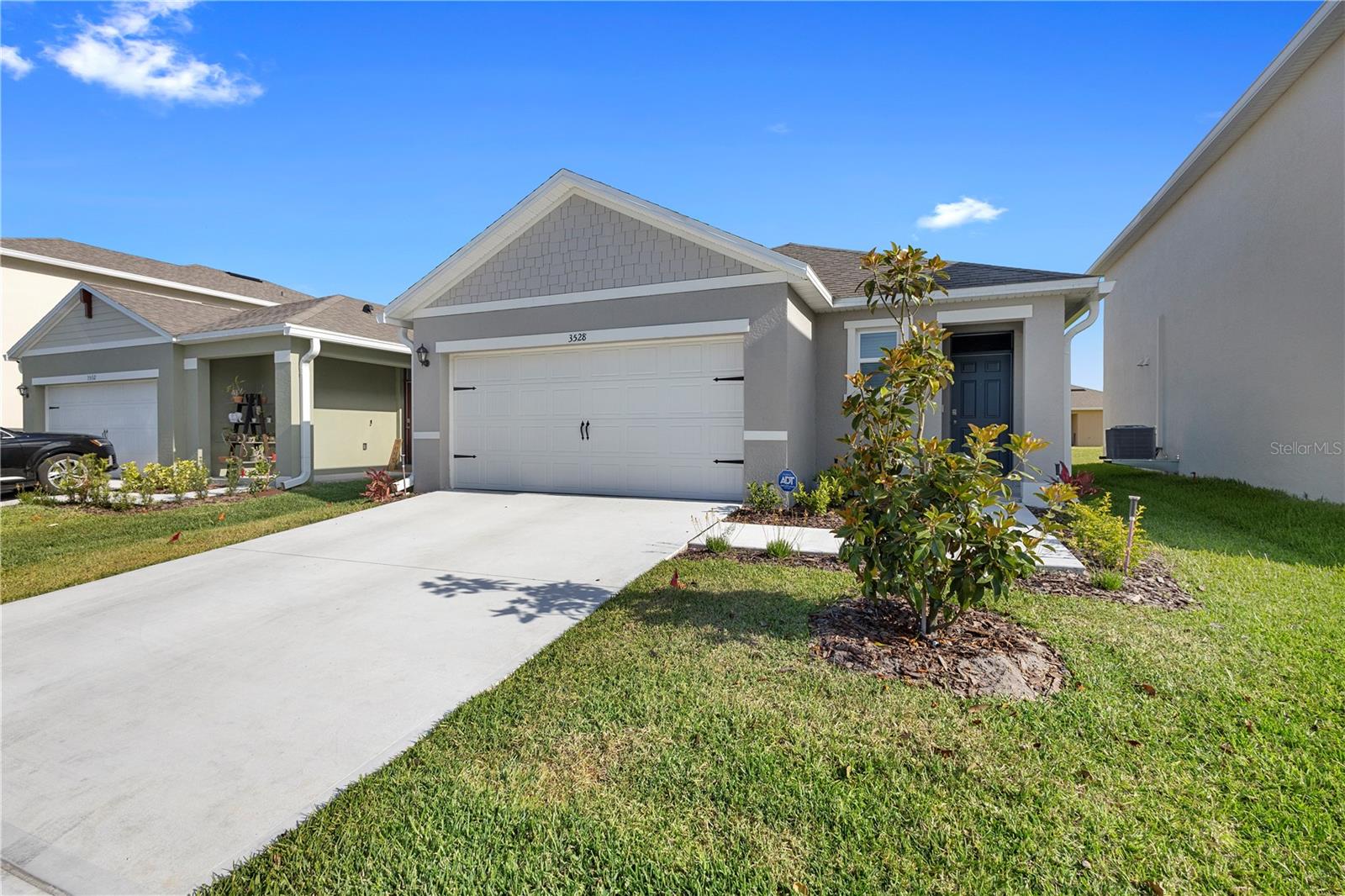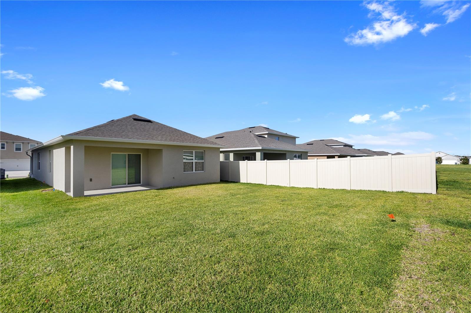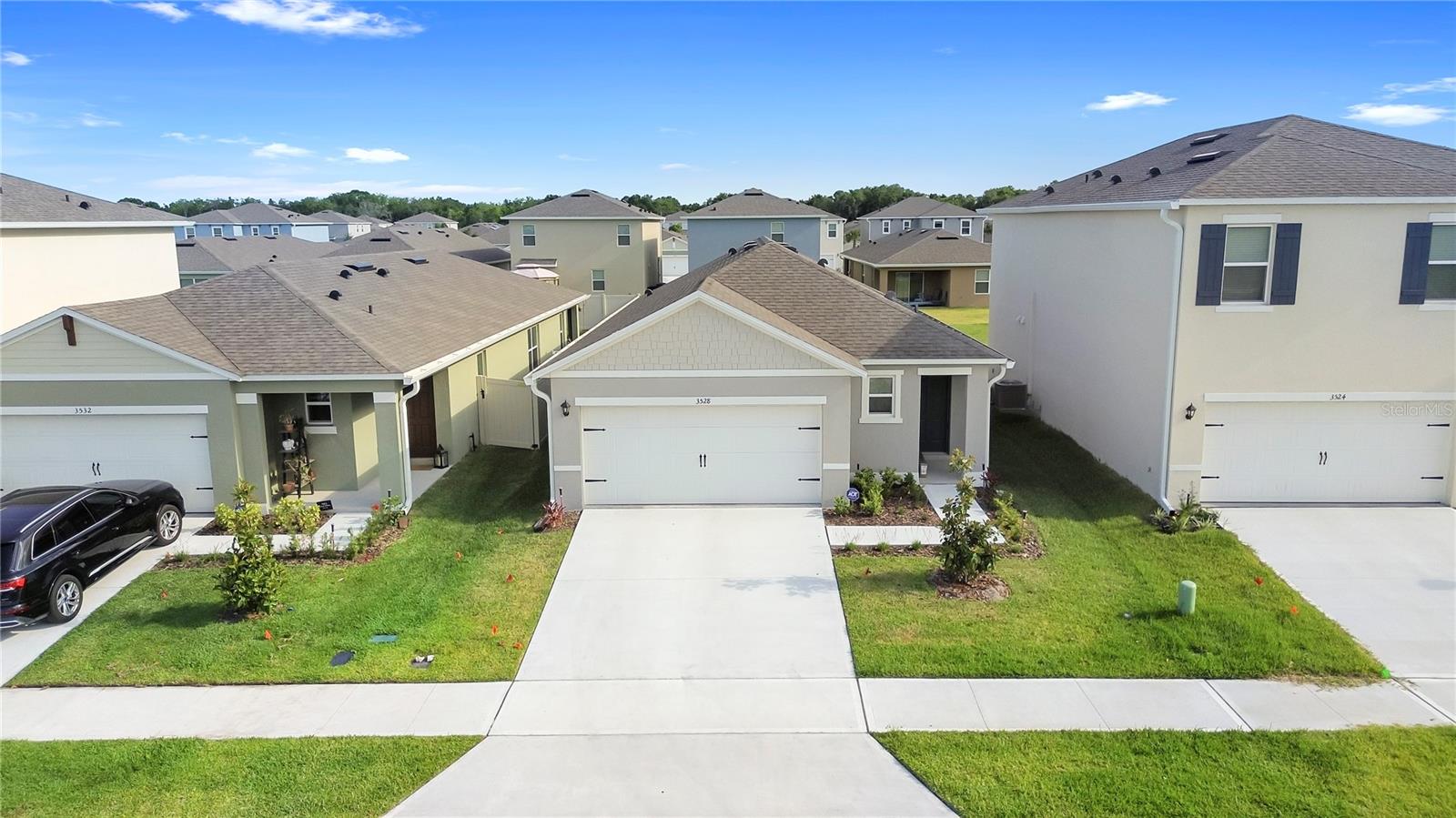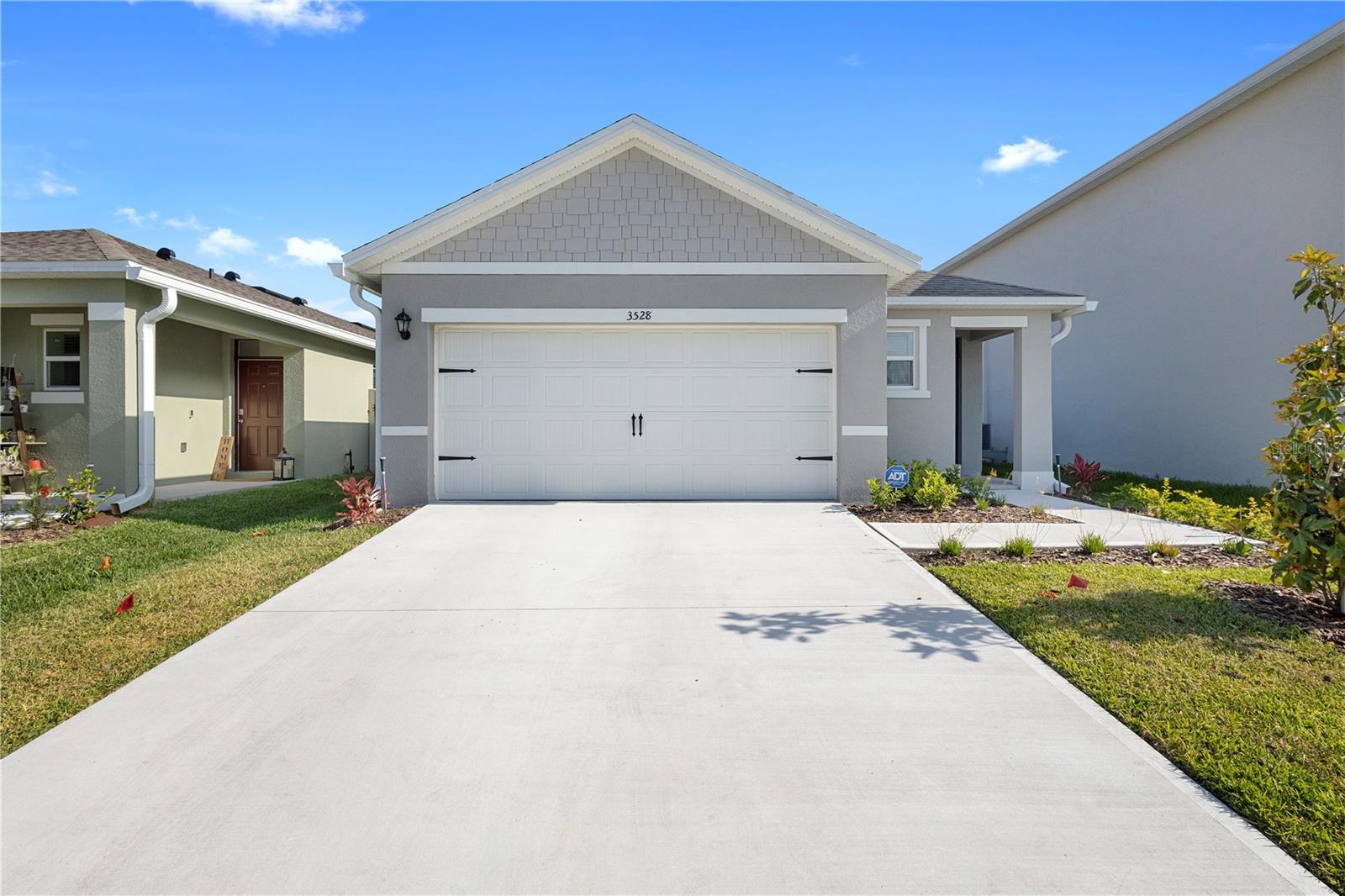 Don’t miss out on this must-see home at 3528 Sungrove Circle! Discover this beautiful 2023 split-plan concrete/block home in the gated Eastgrove community, featuring access to a community pool and playground, with HOA fees covering their maintenance. Upon entering, you’ll find a hallway to the left leading to the laundry room and a spacious 2-car garage. Straight ahead, the dining area provides a welcoming space for meals and gatherings. Off the dining area, a hallway leads to two secondary bedrooms and a full bathroom. The open-concept kitchen, the heart of the home, features elegant marble countertops, stainless steel appliances, and a breakfast bar that overlooks the living room. Sliding glass doors flood the living area with natural light and lead directly to the backyard. Outdoor space is ready for your personal touch, with room for landscaping or a garden. The primary suite, located off the living room, features a large walk-in closet and an ensuite bathroom with a double vanity and shower. The home has no carpet, making maintenance easy, and includes several upgrades not found in the builder models, such as a kitchen backsplash, marble window sills, shower rods, and towel racks. This home offers convenient access to historic downtown, where you can explore charming brick-lined streets and the Sanford Museum. Enjoy scenic outings along the St. Johns River, visit the Central Florida Zoo & Botanical Gardens, or relax at various local parks, including the scenic Riverwalk and Fort Mellon Park. Additionally, Sanford's thriving dining scene features a range of restaurants and cafes that food enthusiasts will love to explore. Schedule your private tour today and see all that this exceptional home has to offer!