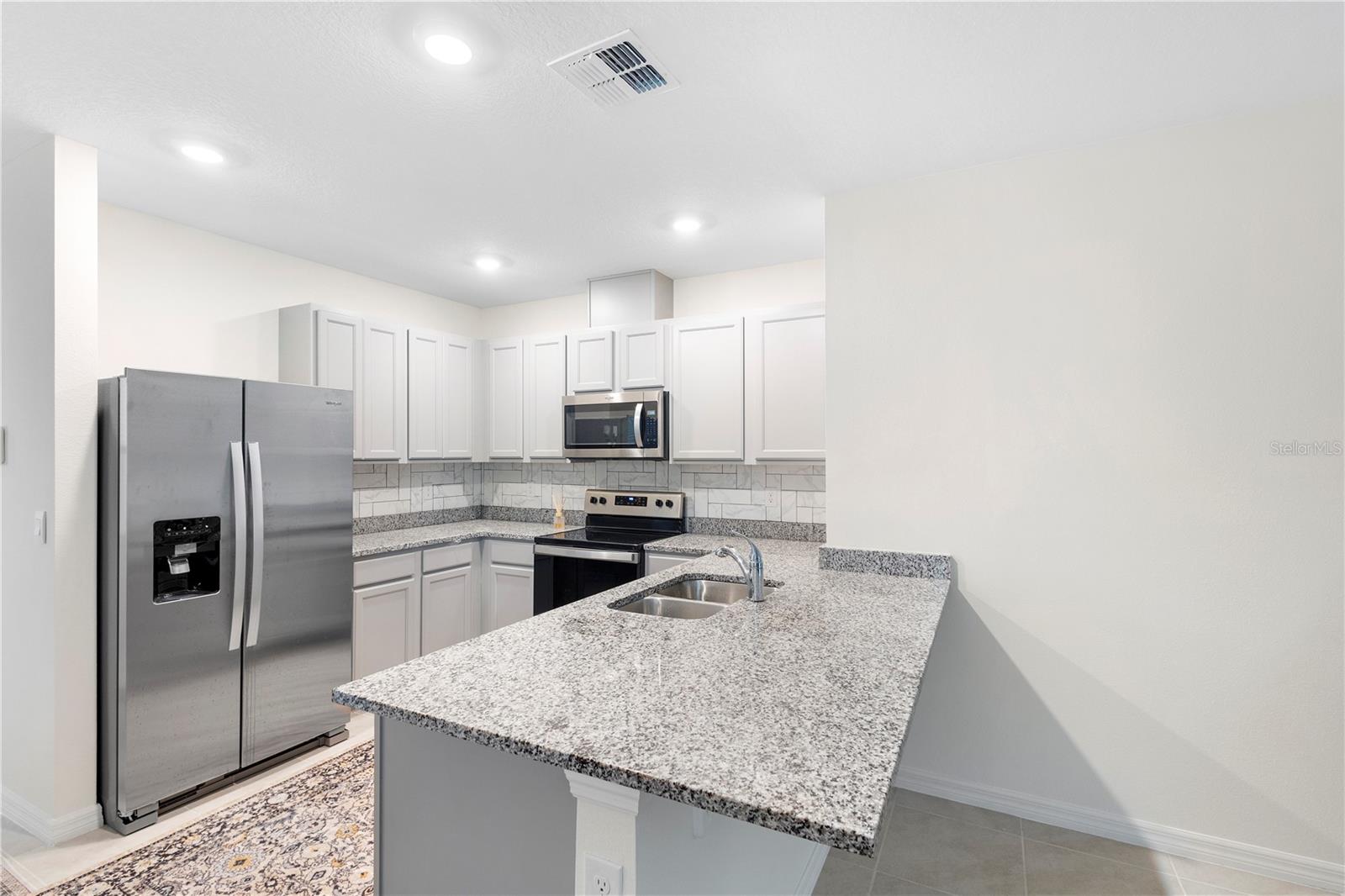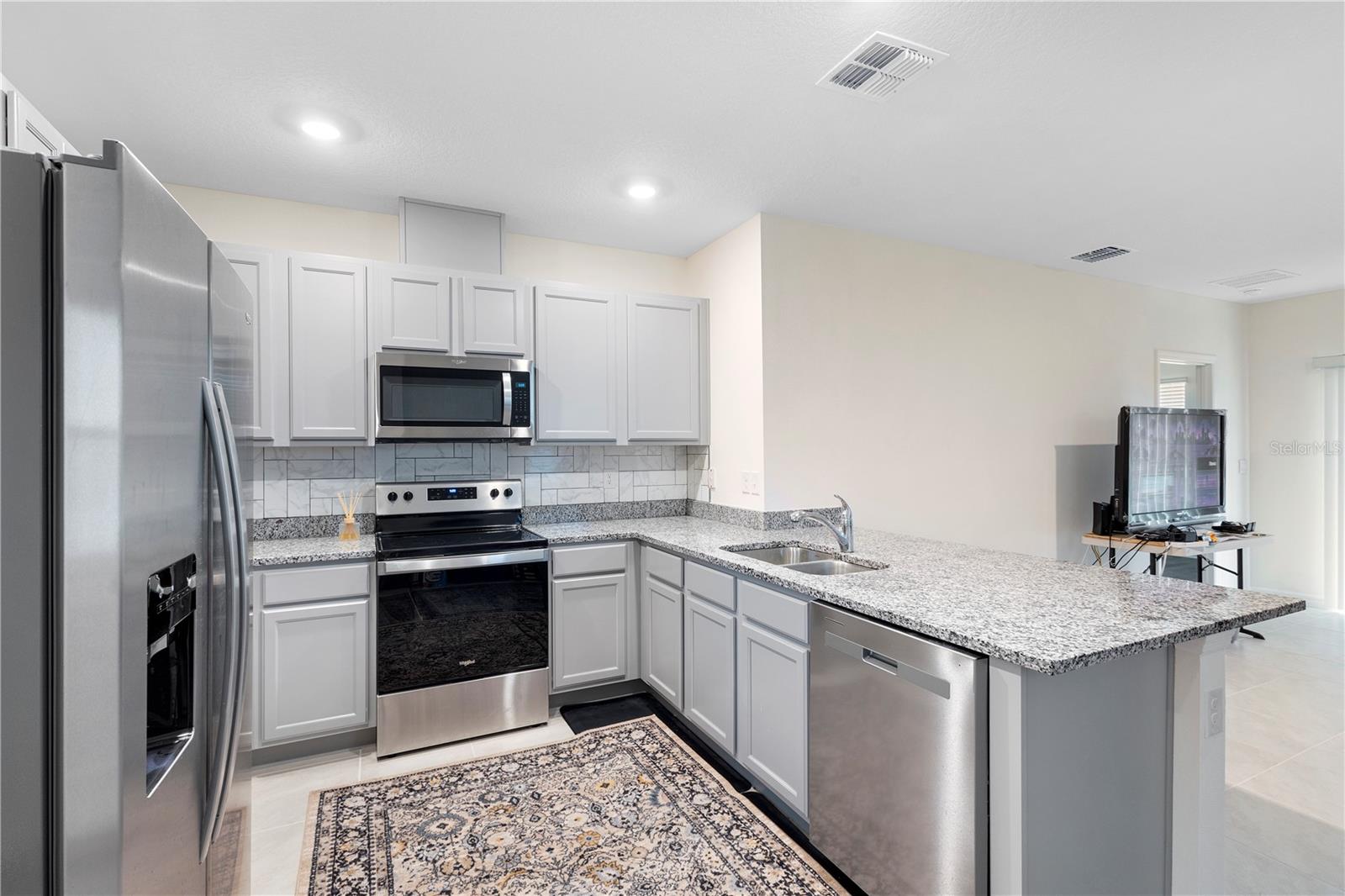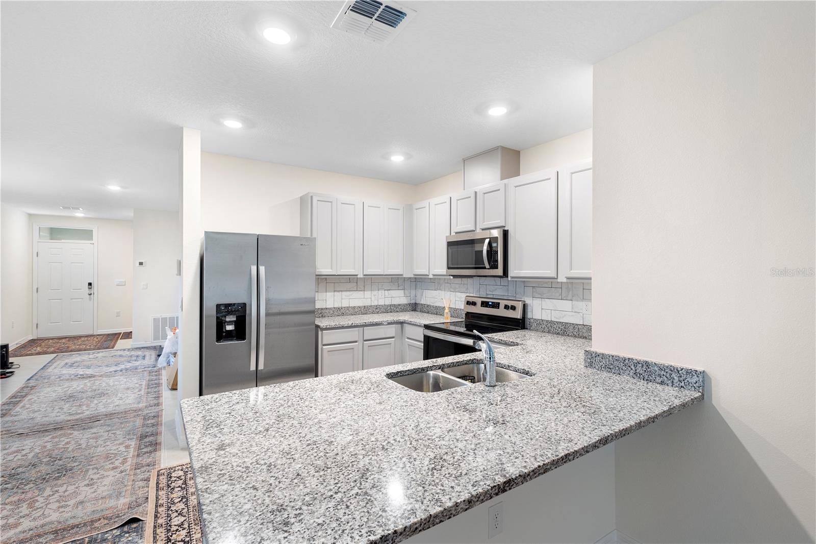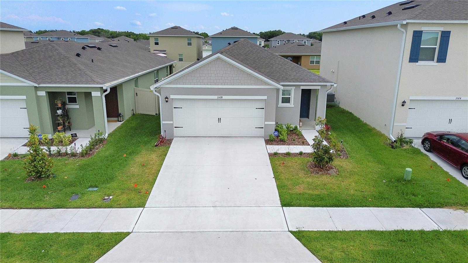 Don’t miss out on this must-see home at 3528 Sungrove Circle! Discover this beautiful 2023 split-plan concrete/block home in the gated Eastgrove community, featuring access to a community pool and playground, with HOA fees covering their maintenance. Upon entering, you’ll find a hallway to the left leading to the laundry room and a spacious 2-car garage. Straight ahead, the dining area provides a welcoming space for meals and gatherings. Off the dining area, a hallway leads to two secondary bedrooms and a full bathroom. The open-concept kitchen, the heart of the home, features elegant marble countertops, stainless steel appliances, and a breakfast bar that overlooks the living room. Sliding glass doors flood the living area with natural light and lead directly to the backyard. Outdoor space is ready for your personal touch, with room for landscaping or a garden. The primary suite, located off the living room, features a large walk-in closet and an ensuite bathroom with a double vanity and shower. The home has no carpet, making maintenance easy, and includes several upgrades not found in the builder models, such as a kitchen backsplash, marble window sills, shower rods, and towel racks. This home offers convenient access to historic downtown, where you can explore charming brick-lined streets and the Sanford Museum. Enjoy scenic outings along the St. Johns River, visit the Central Florida Zoo & Botanical Gardens, or relax at various local parks, including the scenic Riverwalk and Fort Mellon Park. Additionally, Sanford's thriving dining scene features a range of restaurants and cafes that food enthusiasts will love to explore. Schedule your private tour today and see all that this exceptional home has to offer!