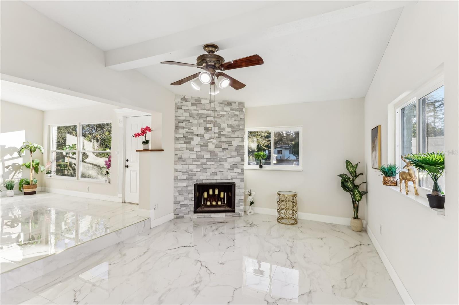 **SUNLAND PARK** UPDATED AND MOVE IN READY! NO HOA DUES. BRAND NEW AC UNIT, BRAND NEW WINDOWS, NEWER HOT WATER HEATER AND 2019 ROOF. BRING ALL OFFERS! Stop by this completely renovated 3-bedroom, 2-bathroom with a LIVING ROOM, FAMILY ROOM AND A FLORIDA ROOM gem nestled in the heart of Sanford. Perfect for a large family or growing family to live or purchase to rent. Satori 24x48 tiles throughout not only bring beauty and joy, but also keep the air cool and reduce electricity bills. elight and protect you from dampness and dirt, as they are completely tiled! Every inch of this home has been meticulously updated, boasting modern finishes and high-quality materials from the brand-new tile flooring to the state-of-the-art kitchen plus QUARTZ COUNTERTOPS. Step inside to an inviting open concept living space that seamlessly blends comfort and style. The sleek, contemporary kitchen is a chef's dream, featuring NEW WHIRLPOOL appliances, NEW countertops, and NEW WHITE SHAKER The large family room with a fireplace could be used as a quiet spot to read or for a nice-sized kids' play with plenty of storage. There is plenty of space and storage inside the laundry room and room area. The oversized VINYL fenced backyard offers ample space for gardening, play, or relaxation. This home is also conveniently close to shopping, restaurants, and more. Don't miss your chance to own this move-in ready home in a prime location! All information deemed accurate but cannot be guaranteed.