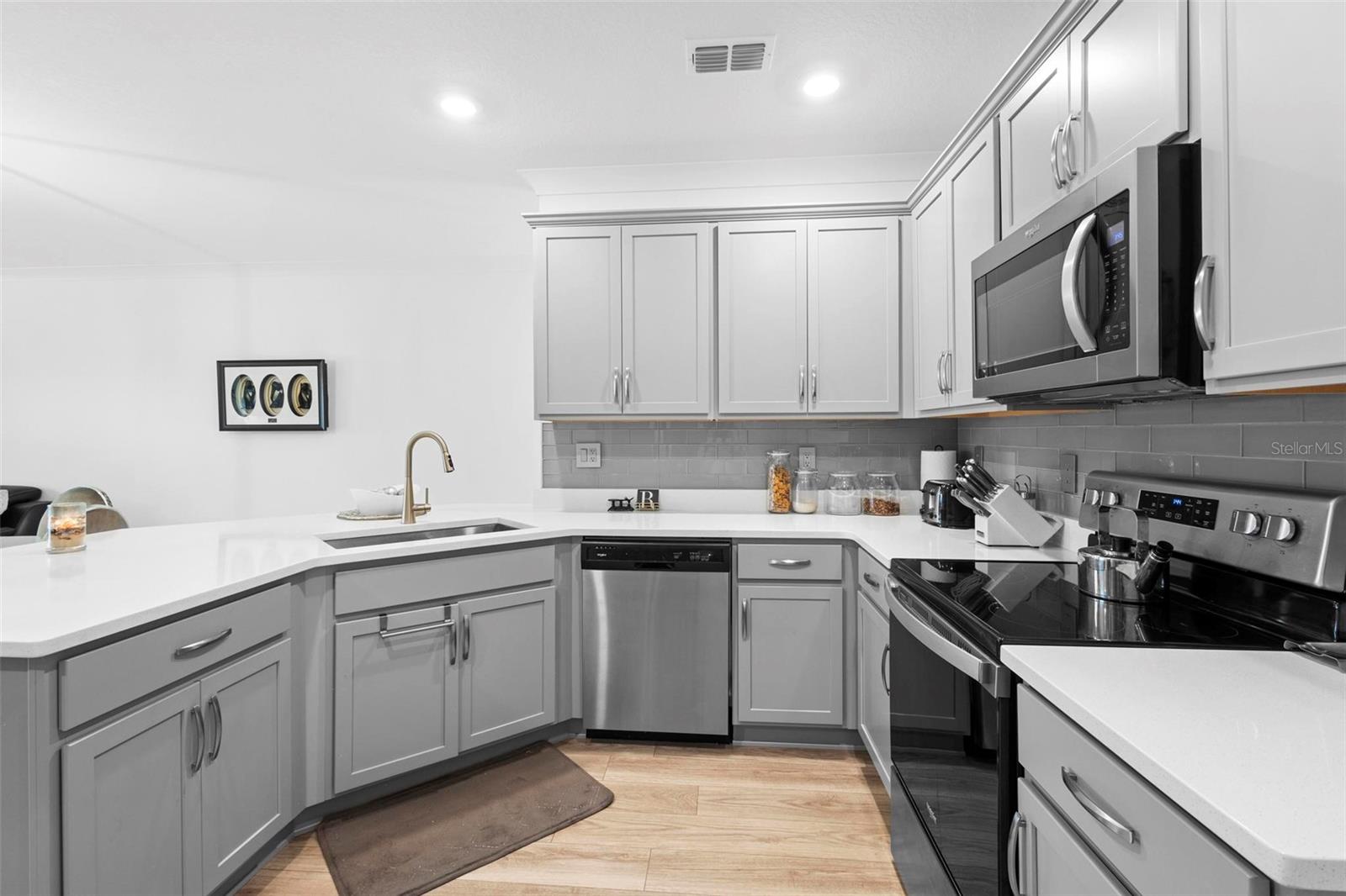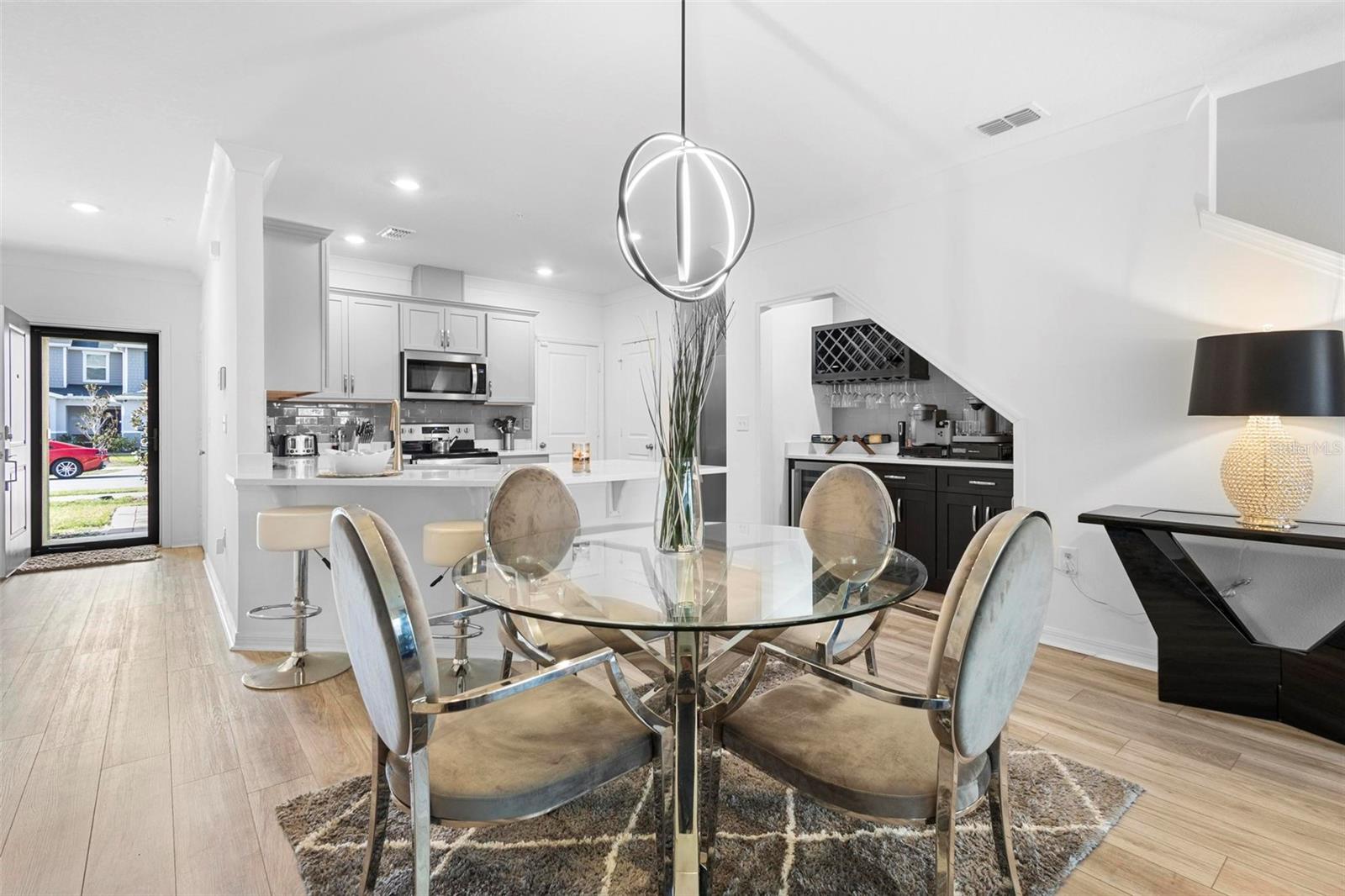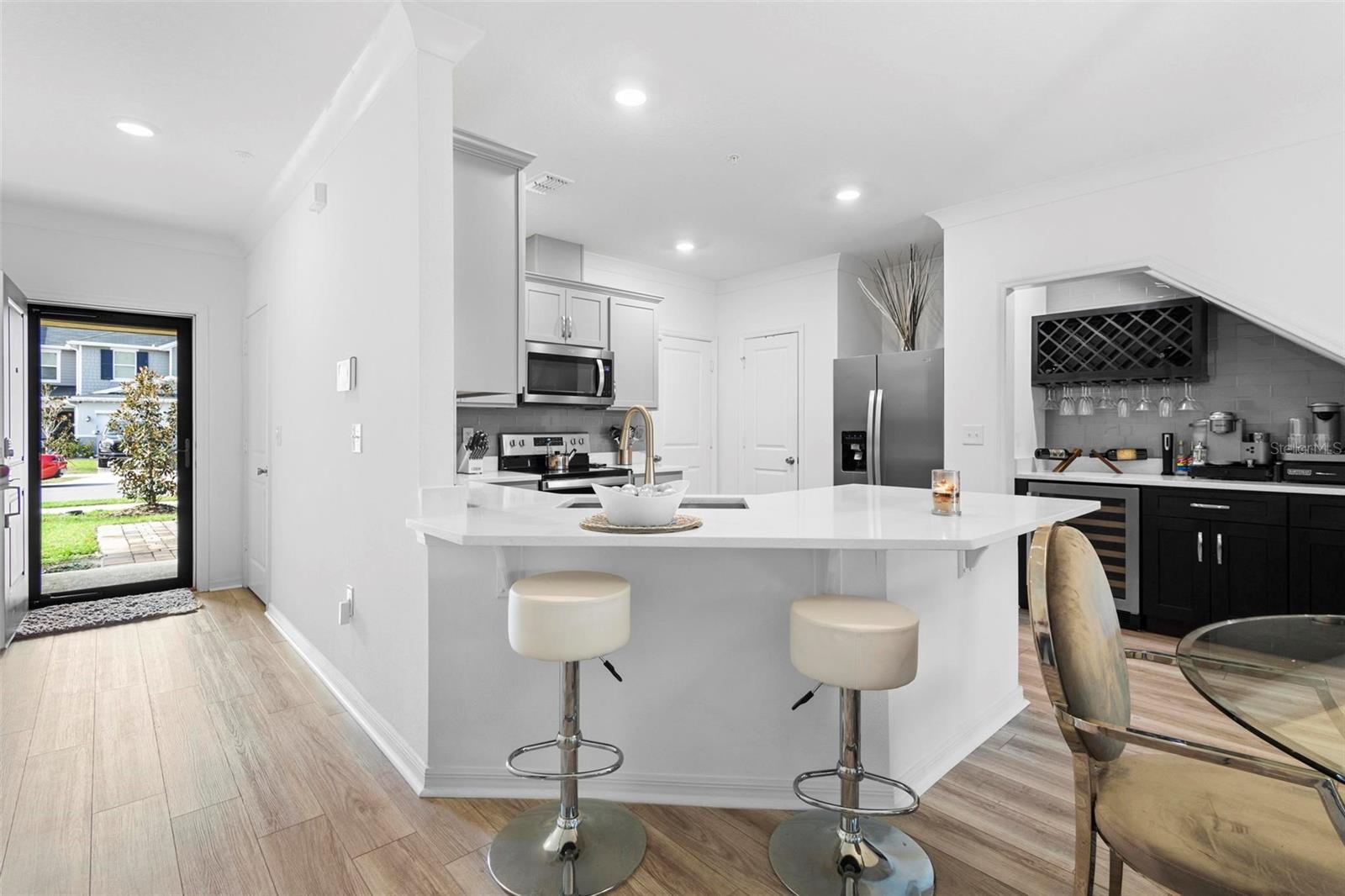 NEW PRICE!!! MOTIVATED SELLER for the Best on the block! Check out this like new KB Homes townhome in the Landings at Riverbend. Built in 2022, with many upgraded features, this bright and open 3 bedroom, 2.5 bath home is the most spacious layout produced by KB (1575 sq. feet) and has a fabulous, built-in, custom wine and coffee bar added. From the crown molding and backsplash to the remote lighting and fans, click down window shades, fixtures and hardware, this home has been elegantly enhanced. Lots of storage, large rooms, inside-upstairs laundry, security system, fire alarm and sprinklers, washer and dryer...this one has it all. This one-of-a-kind home has been meticulously kept and is in a safe, clean, community-oriented association. In addition to an oversized 1 car garage and beautiful brick driveway/walkway, this unit has a more private back porch positioned at the corner and the tree line in the rear (no other homes). Close to so many amenities like the HCA Hospital, Sanford Airport and a brand-new Publix, but also historic, downtown Sanford and the expansive lakefront of Lake Monroe that offers a variety for all with the vast options of restaurants, shopping, outdoor activities among gorgeous scenery, car shows, festivals and more. That is within just minutes! Less than an hour to major amusement parks, world famous beaches and natural springs and the Space Coast. Enjoy low maintenance living in an immaculate property full of luxury and style where it doesn't snow. Contact me for your showing now!!!