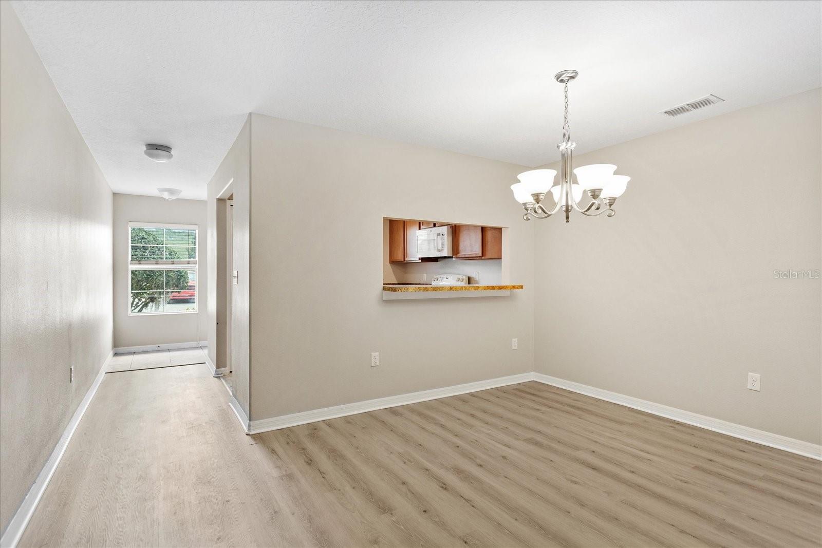 This charming townhome is ideally located near Sanford Airport, Lake Mary, and Historic Downtown Sanford, offering both convenience and a peaceful setting. Situated in a small, tranquil community with a refreshing community pool, the townhome features all bedrooms upstairs. Brand new luxury vinyl plank flooring installed April 2025. The spacious master suite includes a private master bath, while the second bedroom and a full bath complete the upper level. A large bonus room offers versatile space, ideal for an office or additional living area. The main floor boasts a separate dining room with a pass-thru to the kitchen and a convenient half bath. Additional amenities include a full-size washer and dryer, a rear covered patio with a storage room, and the benefit of no rear neighbors, ensuring added privacy. The unit also comes with an assigned parking space for your convenience.