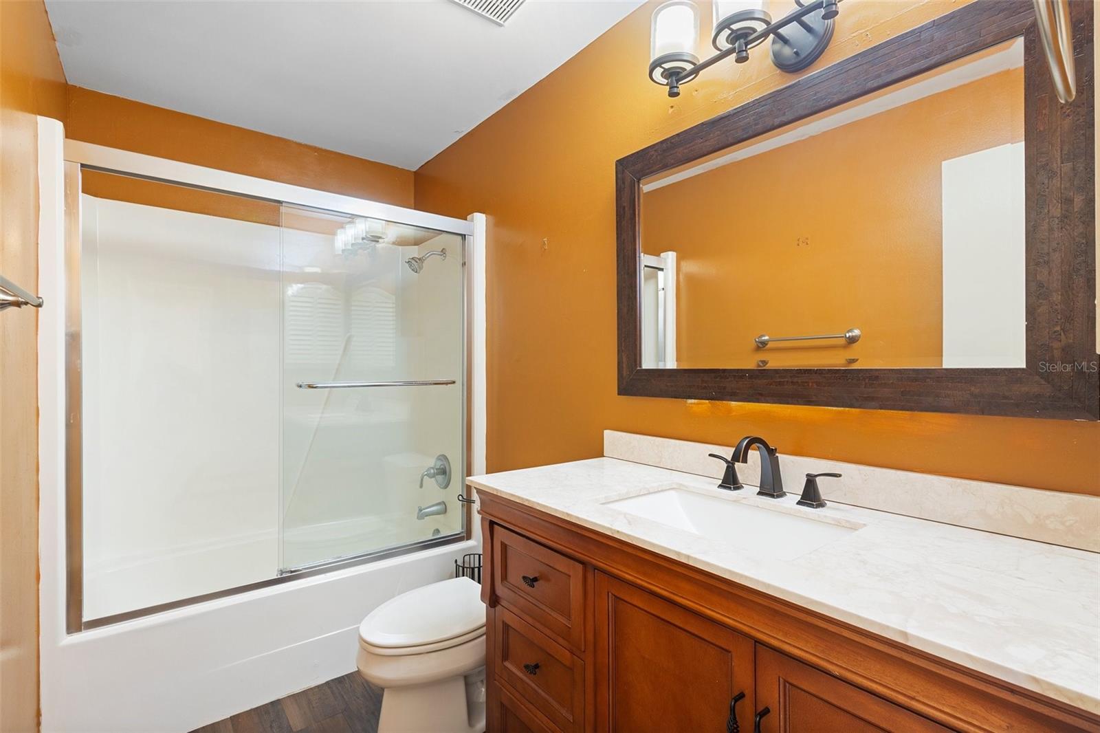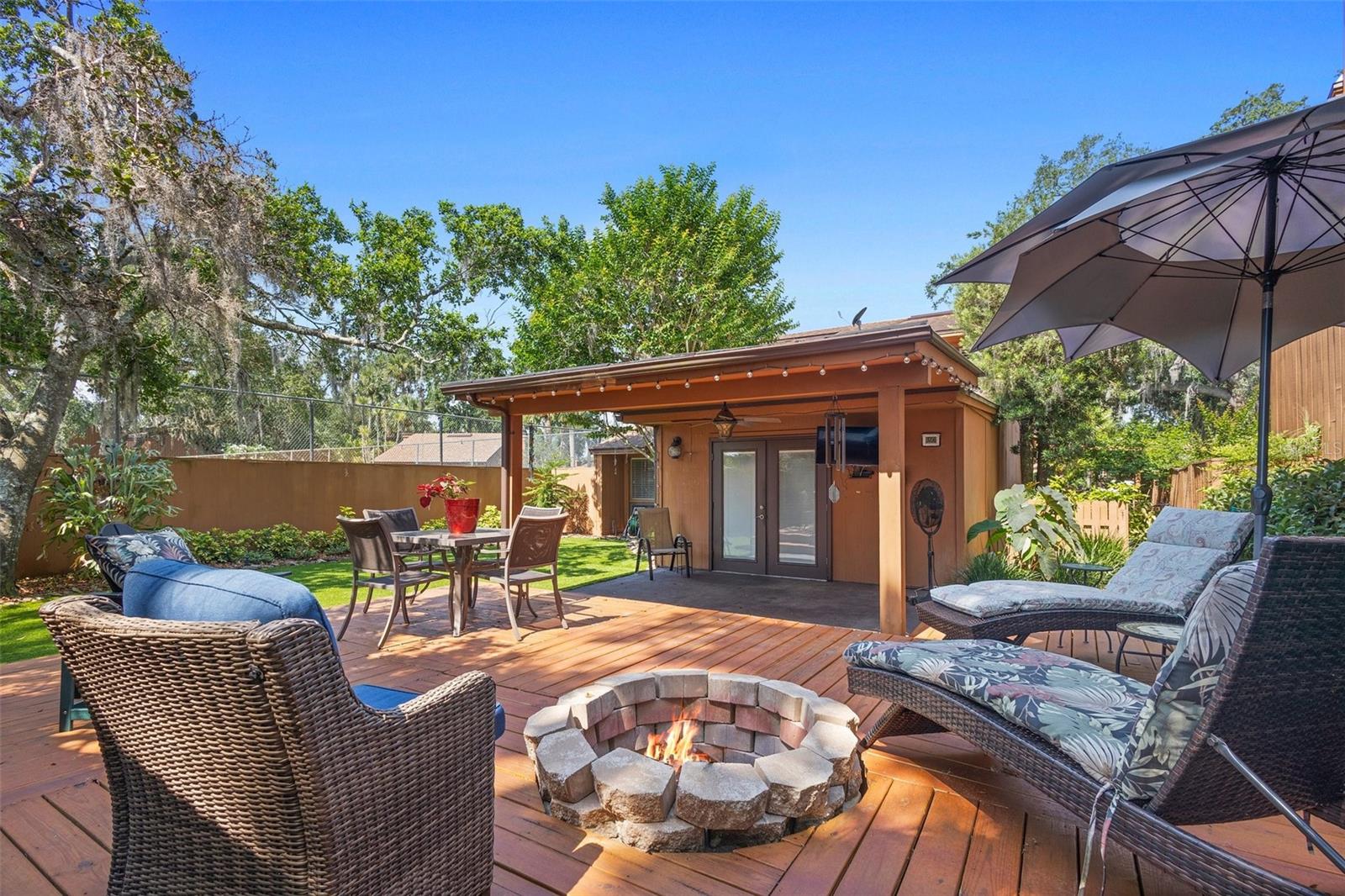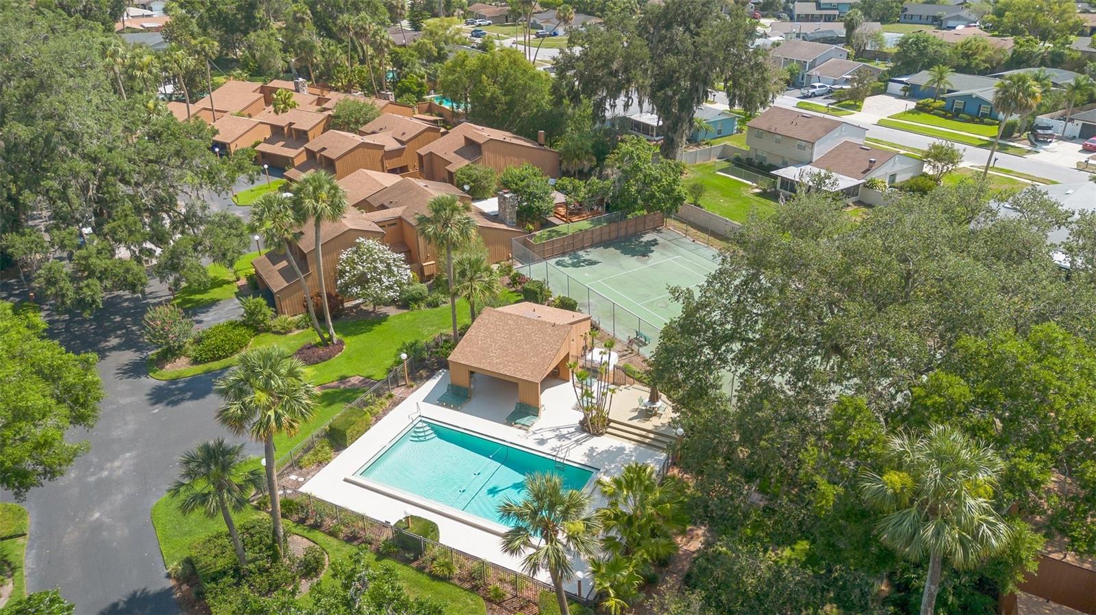 The Oaks of Sanford - This contemporary cottage end unit is a perfect blend of modern design and cozy charm, ideally situated right by the community pool. Upon entering, you are greeted by elegant wood flooring that flows seamlessly throughout the first floor, enhancing the open and airy feel of the space. The U-shaped kitchen boasts stunning granite countertops and wood cabinets that provide an ample workspace for culinary creations. The kitchen's layout promotes efficiency while allowing for easy interaction with guests in the adjoining living area. The living room features a striking stone wood fireplace, creating a warm focal point that invites relaxation and gatherings. The impressive cathedral ceilings add to the spaciousness, making this area feel even more inviting and bright. There is a small butler corner by the staircase going up to the bedrooms. This cottage offers three bedrooms, including a bonus room that can easily serve as an office, catering to both work-from-home needs and/or guest accommodation. The two full bathrooms and an additional half bath ensure convenience for residents and visitors alike. Step outside to discover your own private retreat: a mini oasis complete with a charming wood deck, a shed for storage, and a stylish pergola that provides shade for outdoor relaxation or entertainment. The backyard has been thoughtfully designed for low maintenance with its durable AstroTurf, allowing you to enjoy green space without the hassle of upkeep. The master suite is located on the second floor, providing privacy and tranquility. It features an en-suite bathroom designed for comfort and convenience. Completing this wonderful property is a spacious two-car garage, providing ample storage space or room for vehicles. The laundry facilities are conveniently located in the garage, making chores easier to manage. This property is nestled within a community of just 21 detached condos. This home offers both privacy and a sense of belonging. Located close to shopping centers, schools, and essential amenities, this contemporary cottage is not just a house; it's a lifestyle choice waiting for you to explore. Don't miss out - scheduling your showing today!