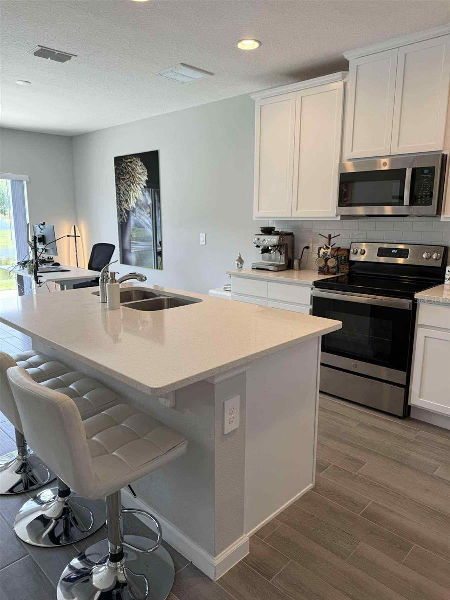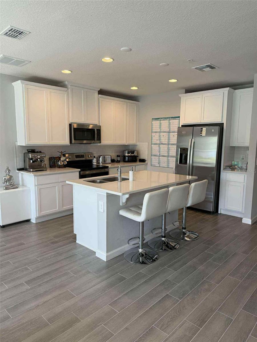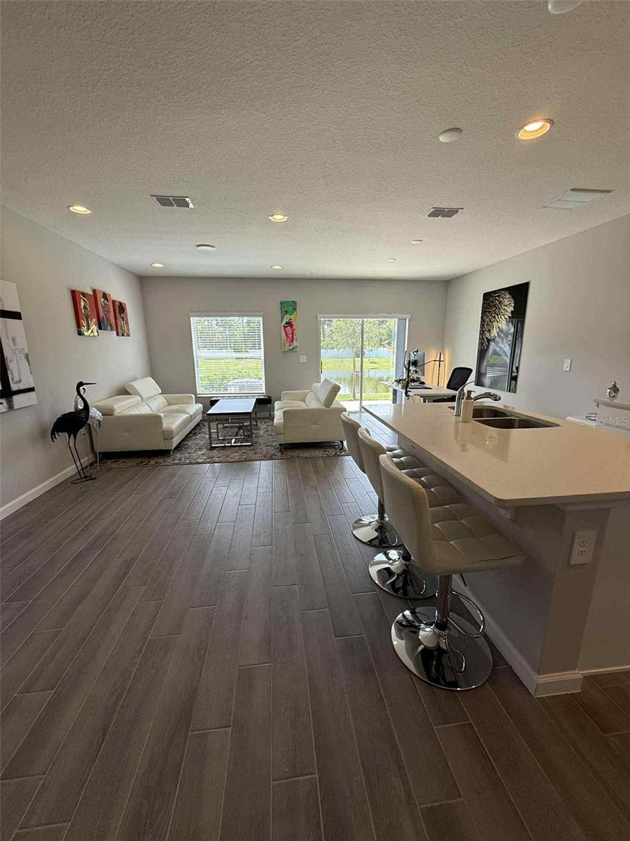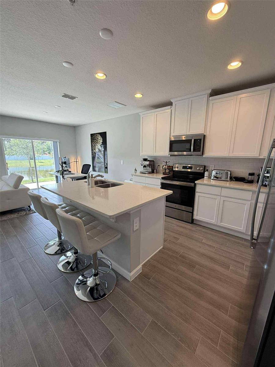 Pond Fountain view and one of the absolutely best located Townhomes – in pristine condition. Welcome to this 3-bedroom, 2.5-bath home with a spacious loft, nestled in the highly sought-after Towns at Lake Monroe Commons. This stunning residence offers a seamless blend of modern elegance, functionality, and comfort—perfect for homeowners seeking an upscale yet convenient lifestyle. Can you imagine starting every day with a 450-yard morning walk or jog, watching the sunrise over the beautiful Lake Monroe! You can also bike on secure Trails around the lake and all the way to New Smyrna Beach, Titusville & DeBary/Deland. This home features a 1-car garage with unique epoxy flooring, and 3-car driveway! Light and refreshing color scheme throughout white: cabinetry, countertops, backsplash, bathrooms, and light grey soft-tile flooring throughout the first floor and light grey carpet on the second floor. From the moment you step inside, you’ll be captivated by the inviting open floor plan that seamlessly connects the kitchen, dining, and family room areas. The beautiful kitchen features sleek cabinetry, stainless steel appliances, and a spacious island with quartz countertops. Large windows fill the home with abundant natural light, highlighting the stylish finishes and well-maintained interiors. Upstairs, you’ll find a versatile loft area, ideal for a home office, playroom, or secondary living space. The generously sized primary suite offers an ensuite bathroom with a large shower and a large walk-in closet. Two additional bedrooms provide ample space for family members, guests, or even a private gym or creative space. Residents enjoy access to a resort-style swimming pool and a dedicated dog park. The community is designed for active lifestyles, with direct access to the Lake Monroe Trail and Sanford Riverwalk. Prime Sanford Location! Built by the reputable M/I Homes, this home’s prime location ensures convenience at every turn. Within minutes, you’ll find: Sanford International Airport – Perfect for travelers and commuters, SunRail Station – Easy access to Orlando and surrounding areas, Historic Downtown Sanford – Offering a vibrant mix of boutique shops, art galleries, local breweries, and top-rated restaurants, Shopping & Dining.