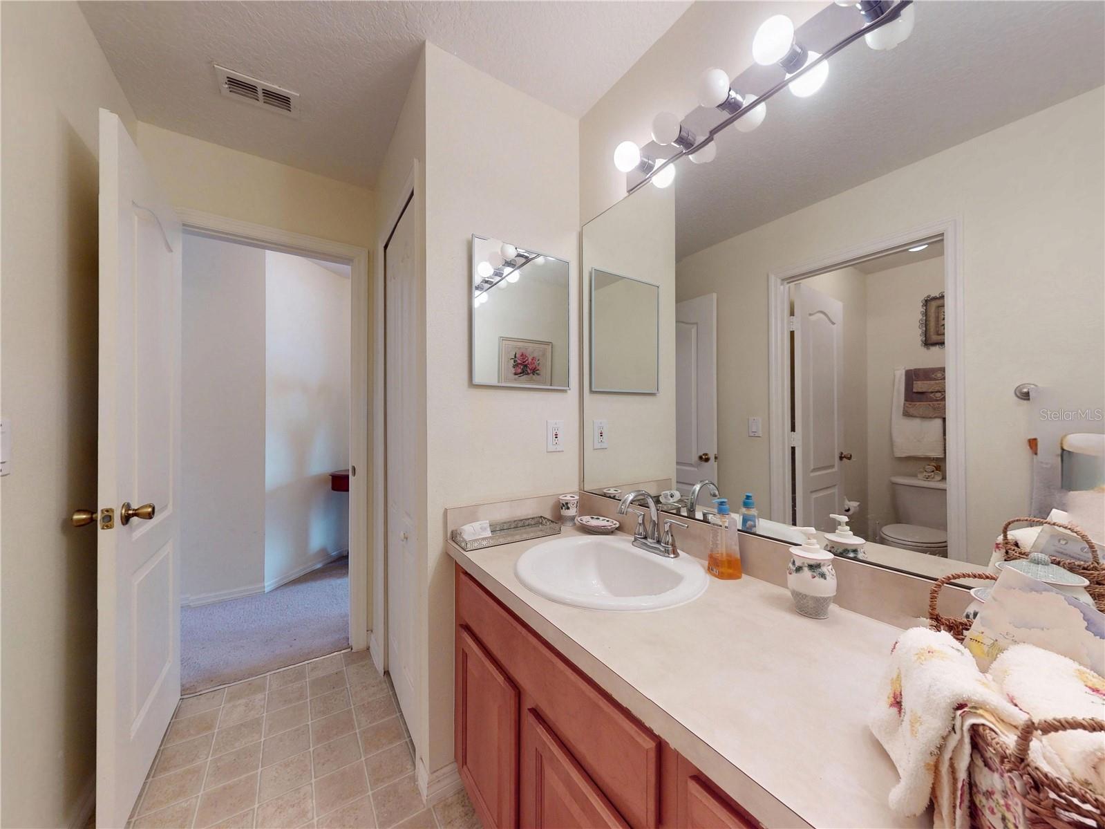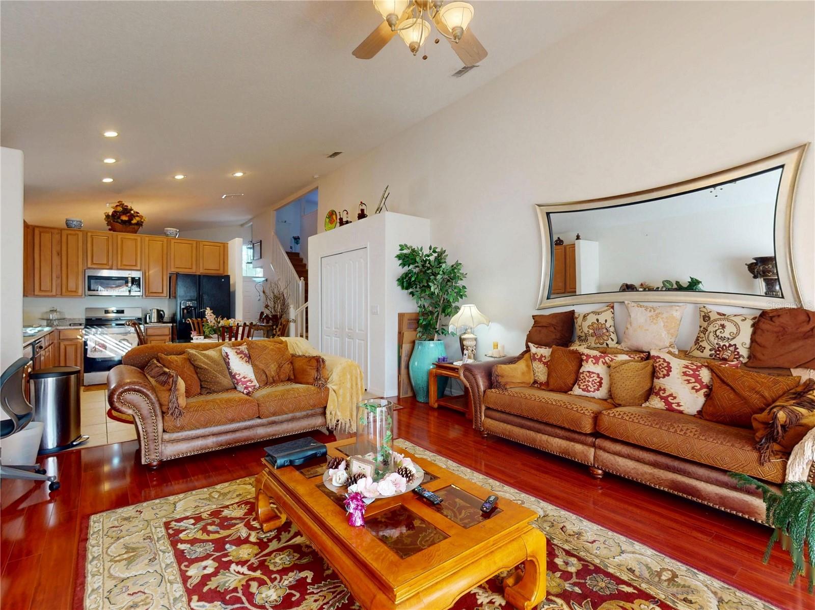 Huge 4-bedroom home located in a secure gated community in a highly convenient location near historic downtown Sanford, the Orlando metro area, and the beaches. This two-story contemporary home features an open, split-bedroom floor plan with the spacious primary suite and large in-suite bath conveniently located downstairs. Upstairs you’ll find three generously sized guest bedrooms, an additional full bathroom, and a massive 22x19 bonus/flex room—ideal for a media room, home office, or playroom. The eat-in kitchen offers tile flooring, granite countertops, ample cabinetry, generous counter space, and a breakfast bar overlooking the family room with real wood floors. Downstairs also includes formal living and dining rooms, also with wood flooring, a tiled interior laundry/utility room, a convenient half bathroom, and numerous decorator touches throughout, creating an inviting and functional layout. Outside, enjoy lush tropical landscaping and a private backyard with a patio area perfect for BBQs and entertaining. Ideally located close to shopping, the airport, and top-rated schools. And no insurance issues here—both the roof and AC were replaced in 2017 and the house is in great condition. This home shows beautifully and is priced right!