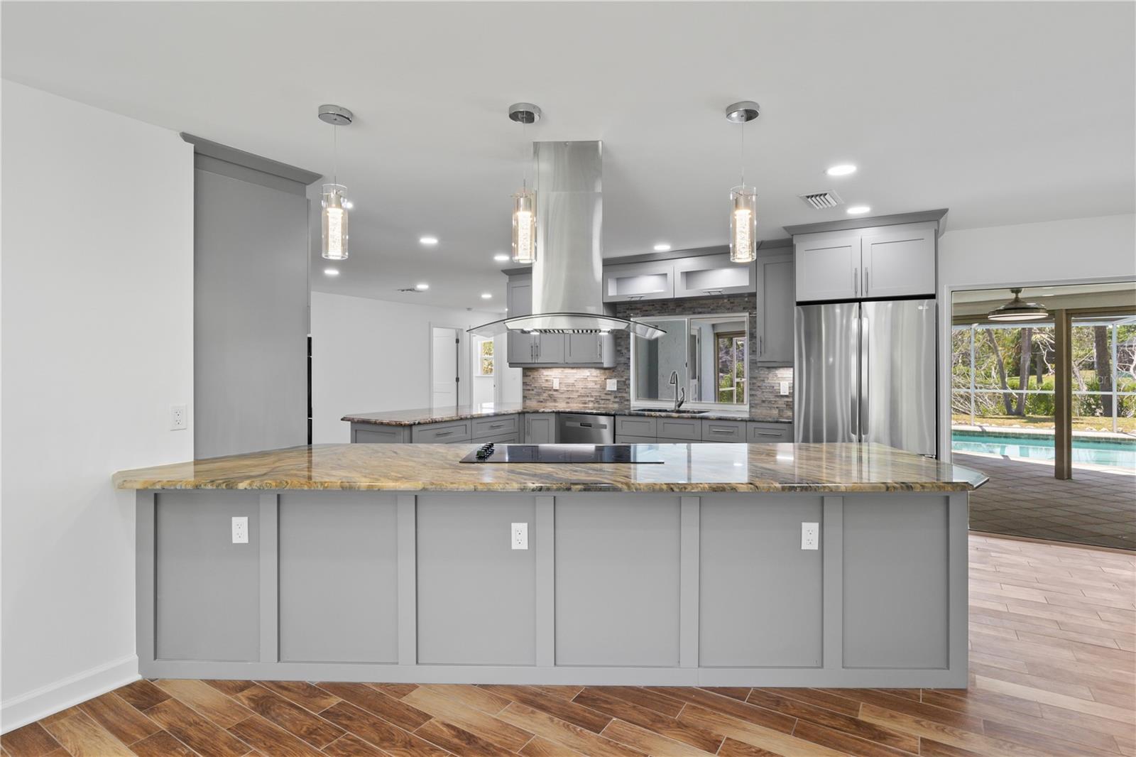 NO FLOODING from Hurricane! Fabulous executive home in the much sought after Gumbo Limbo subdivision in the heart of Sanibel Island! A sprawling home and premium lot that has been fully renovated with high end luxury finishes - nothing cookie cutter here! Three spacious bedrooms with a split master bedroom retreat and a spa like master bath. A gourmet chef's kitchen is the heart of the home and features an extra large kitchen island - perfect for social gatherings! The floor plan is very fun and flexible - a large living room, dining area and tv room and a 21 x 21 recreation room with fireplace is perfect for a movie theater or game room. Custom cabinetry, ceramic tile flooring, recessed lighting - everything has been upgraded with only the best finishes! Guest bedrooms are spacious and located in their own wing. The outdoor area is a true oasis - disappearing slider doors blend the interior and exterior for an even larger living space. Pass thru kitchen window to an outdoor wet bar is another thoughtful feature. Pool Lanai has access to bathroom and there is a very large covered patio with Kevlar hurricane shutters for additional privacy and protection and a large sunning area. Sparkling pool for added enjoyment throughout the year and a large side yard with plenty of space to add an additional outdoor living space or small sports court. The property is fully irrigated and the gardens are simply beautiful - a front courtyard patio , a paved circular drive and lush landscape are in the front of the home while the backyard is private but also offers beautiful views and sunsets from the lake - this is paradise at its best! Sanibel Island is world famous for miles of beautiful white sandy beaches, some of the best shelling in the country and incredible offshore fishing! Enjoy easy access to Sanibel's bike path, shopping and restaurants - also easy access to Fort Myers! Live your best life on the island!