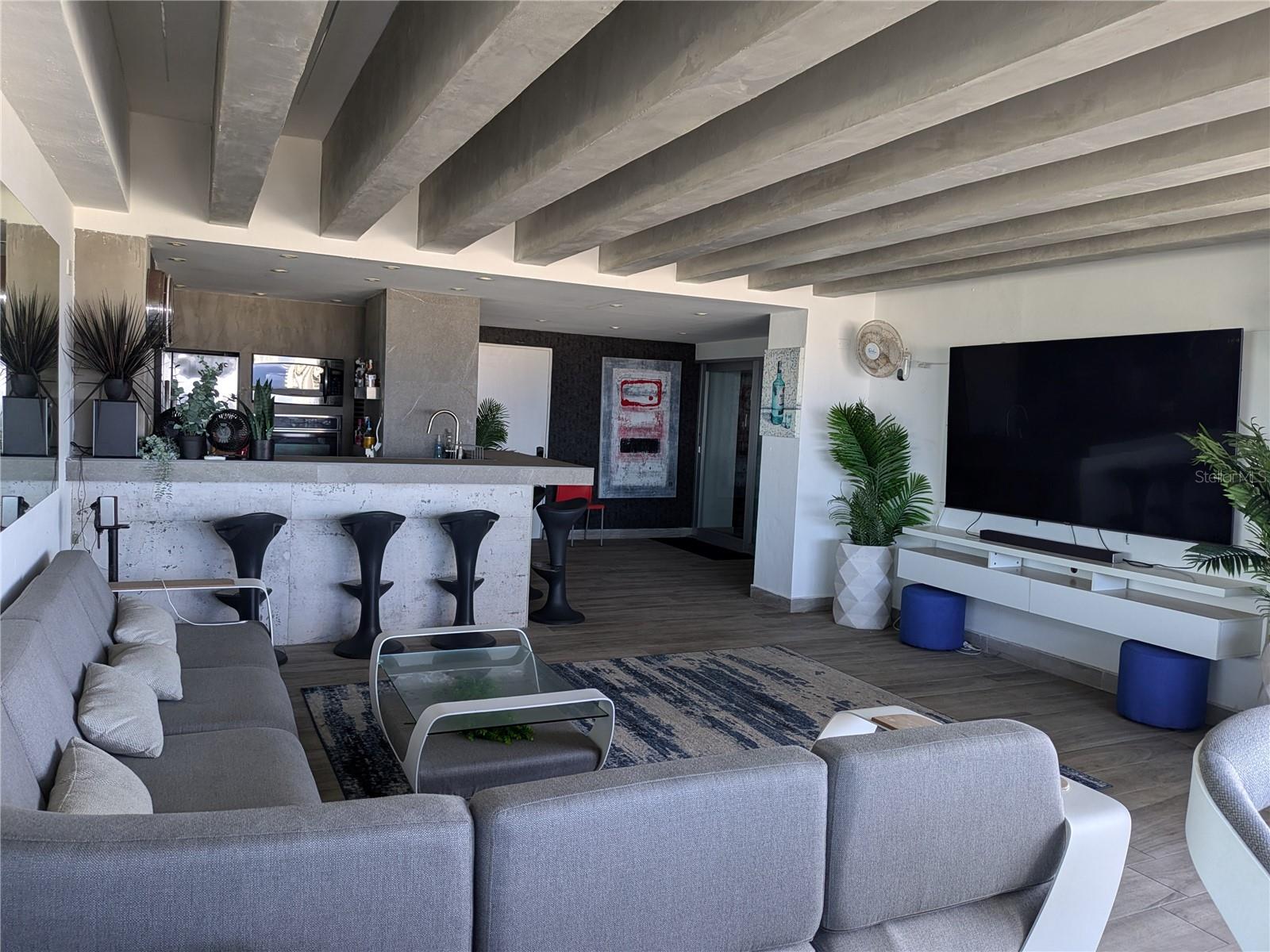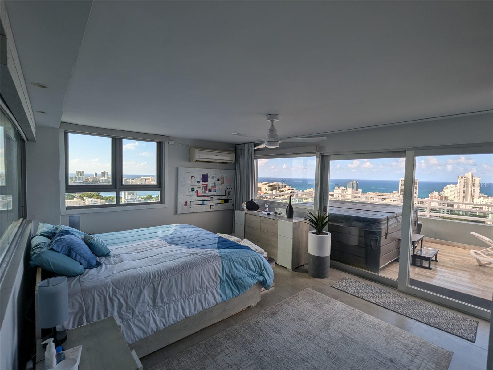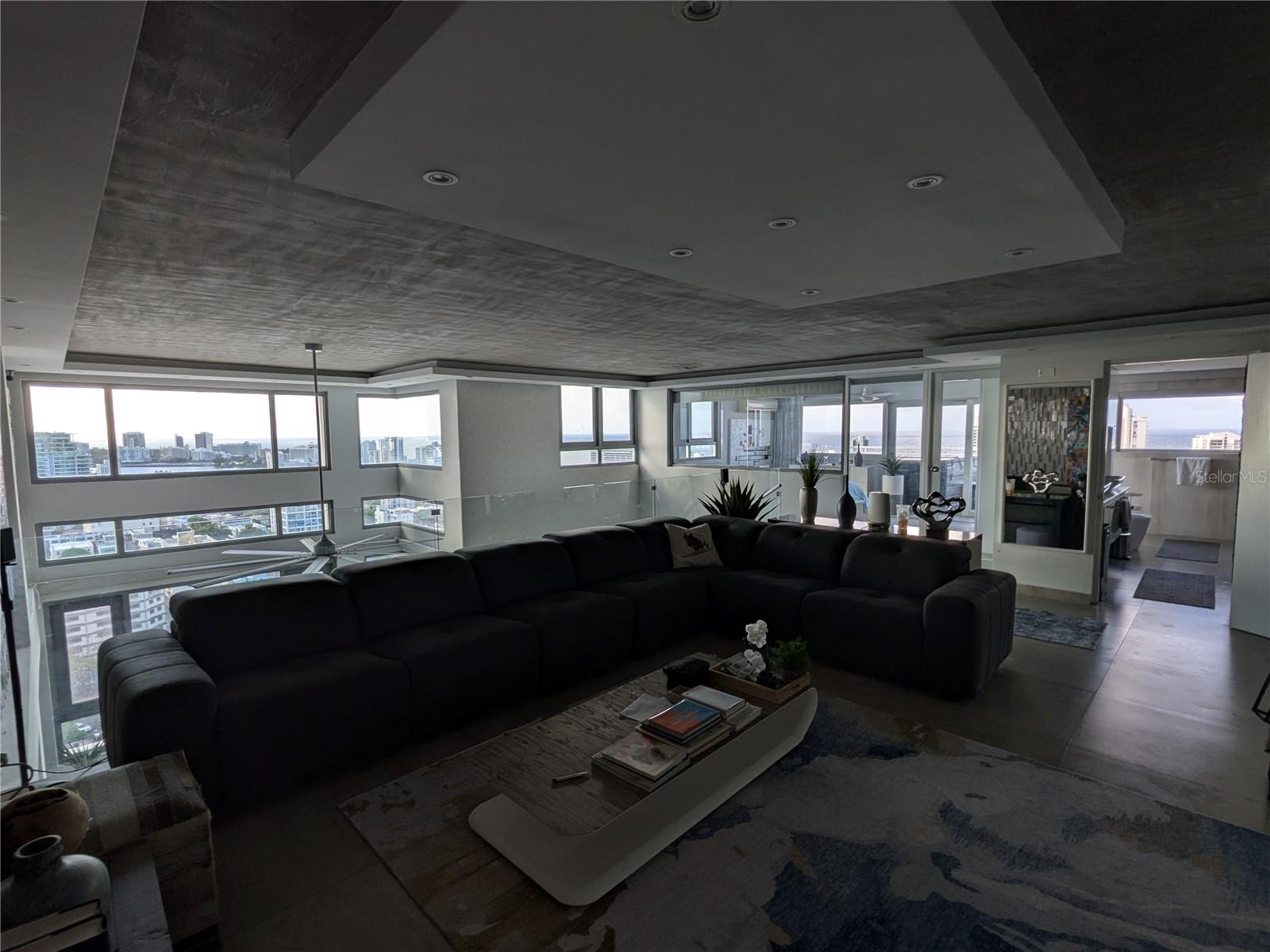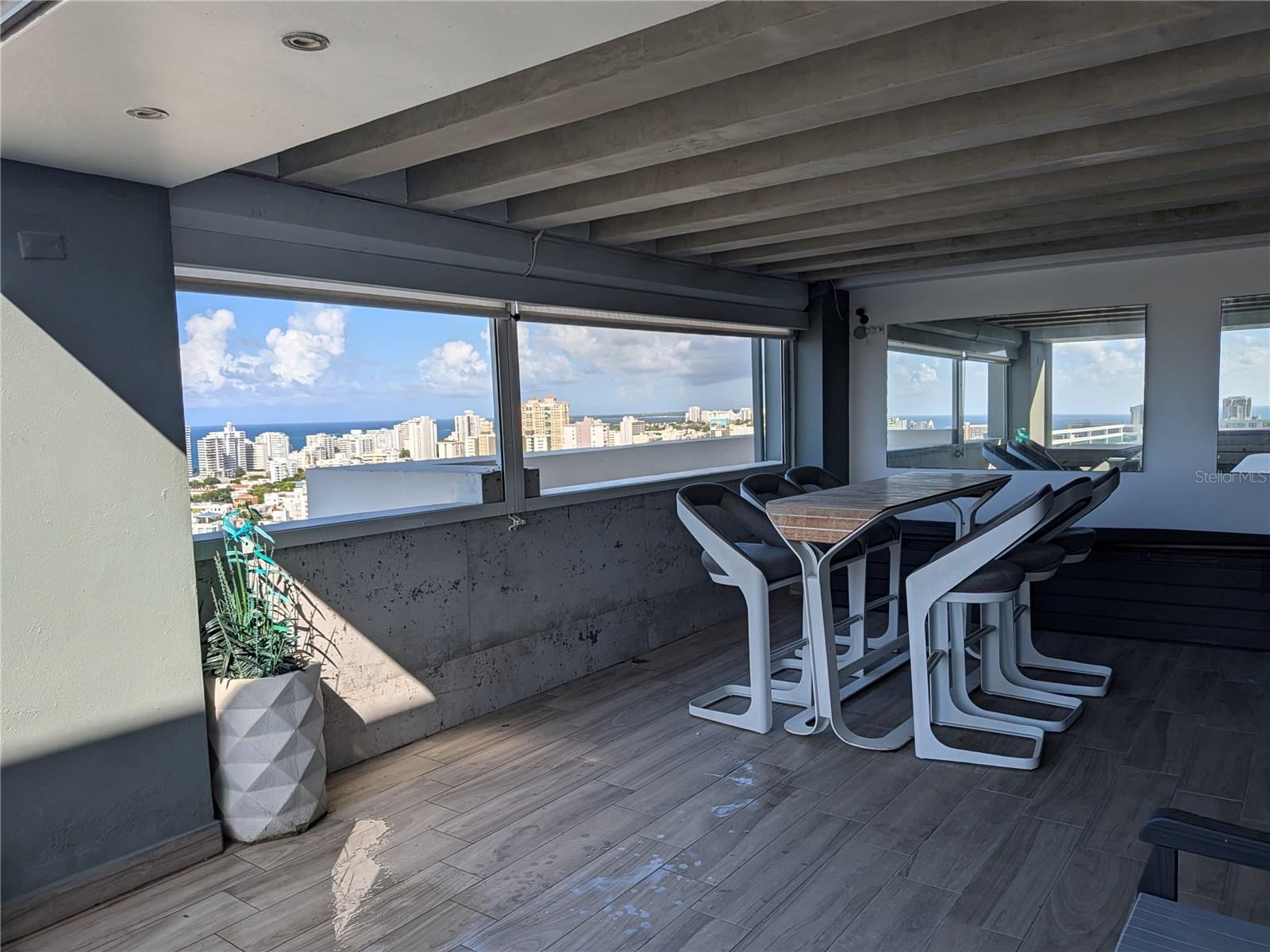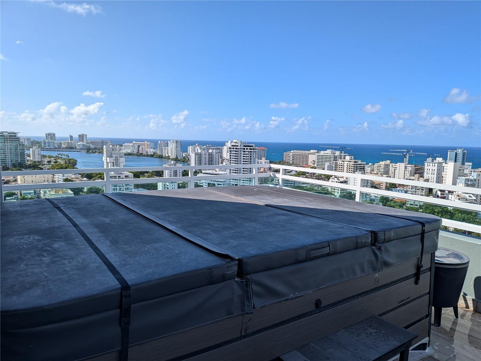 Discover the epitome high rise living in this breathtaking 2-level rooftop Penthouse, located in the heart of Santurce's vibrant arts district. With 2,400 sq. ft. of updated interiors, this fully furnished home features 3 spacious bedrooms and 3 full baths, including 2 rooms with ensuite bathrooms and walk in closets. Recently updated throughout, high-end Samsung appliances and elegant finishes. Integrated Smart Home with Samsung Smarthings and full Google/Apple compatability, lights, electric blinds and exterior storm shutters can all be controlled remotely . The 1,100 sq. ft. private terrace is an entertainer's paradise, featuring a full outdoor kitchen with stainless steel appliances, an ice maker, and a wrap around bar/dining area. Unwind in the private Jacuzzi or relax in the covered TV and entertainment area, all while enjoying panoramic ocean, lagoon and Condado city views. The open 2-story loft-style interior is flooded with natural light, creating a warm and inviting atmosphere. This unit comes with a private EV charger installed in the two designated covered parking garage spaces, making it ideal for electric vehicle owners. Nestled in the Metro Plaza building, residents benefit from 24/7 security, concierge services, a full backup generator and cistern, 2 gyms, residents only garage, a guest parking garage, and a dog park. 2 Restaurants and a full service salon in building. The location is exceptionally walkable, nestled in the desirable Santurce arts district and just steps away from the beautiful Condado Beach. Live in one of San Juan's most sought-after buildings and enjoy the perfect blend of indoor and outdoor luxury. Don't miss this rare opportunity!