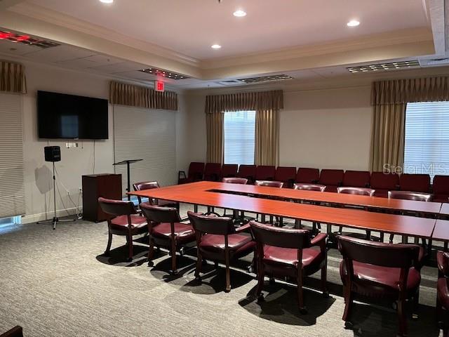 Step into this exceptional executive office condo, boasting 3,982 SF of premium space close to downtown Sarasota with ample parking on high-traffic North Tamiami Trail. With owner financing, this office is a prime opportunity for businesses looking to elevate their presence in a vibrant, accessible location. The thoughtfully designed layout features a spacious reception and business center, a modern kitchen, a dedicated executive conference room, and 13 private offices all accessible from the central reception area. Parking is ample, ensuring convenience for both employees and clients. The building includes centrally located bathrooms and elevators on each floor. Additionally, tenants have access to a shared conference room on the ground floor, equipped with a full kitchen for catering needs. Discover a workspace that combines functionality, convenience, and style. Contact us today to schedule a showing and take the first step toward securing this prime office space.