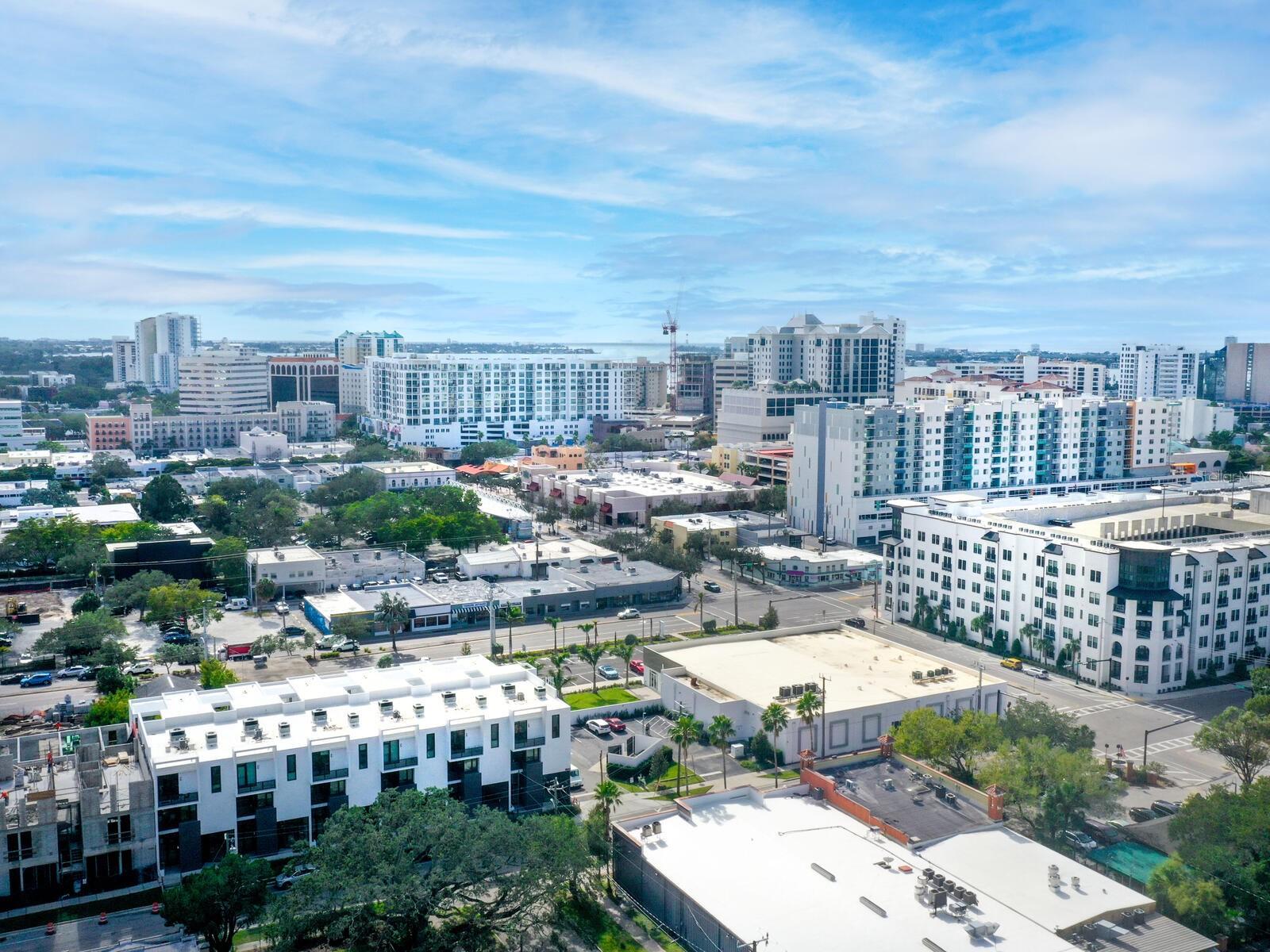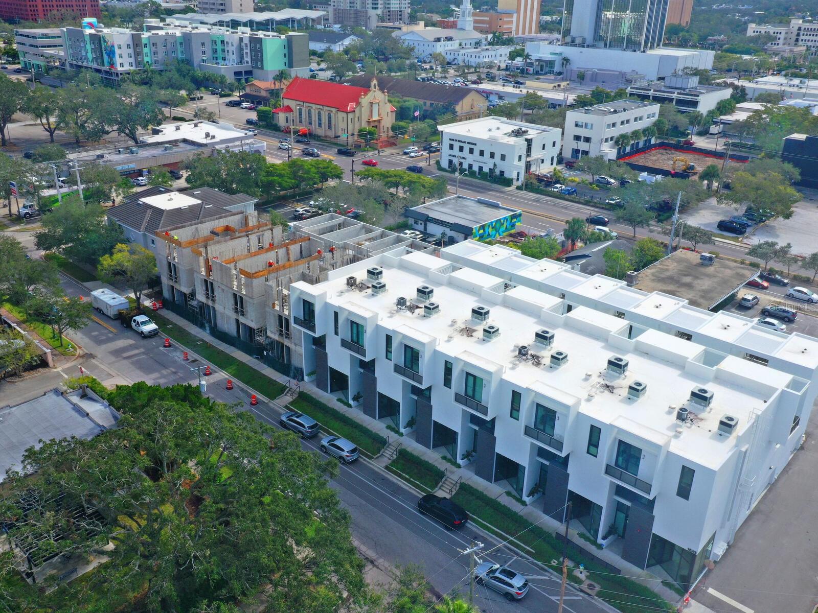 Retail/commercial office condominium suite in a prime location in downtown Sarasota with street-side access, and this is the last one available. Please note that the interior photos of this space are setup as a temporary construction office and not a finished space. The half bath is finished, the electrical service panel is in place and operational, the ceilings and walls have been painted. A completed heating and A/C system are also in place and operational.This is Zahrada, the Czech word for garden, and is an urban yet secluded tropical enclave in Sarasota’s historic, eclectic downtown Rosemary District. This modern-designed, mixed-use condominium project comprises six professional retail spaces below the six residences. Created by local, award-winning Rosemary District architects, Halflants + Pichette, these rarely available new construction retail/office spaces offer incredible contemporary styling and masonry walls between suites. Ready to be customized to the buyer’s needs. New concrete floors are ready to receive the buyer’s desired finish. Monthly fees are low at $593/month. Abundant street parking is available on 4th Street, Lemon, Orange Avenue and Kumquat Avenue. You are right around the corner from Orange Avenue, Lemon Avenue and Fruitville Road, other retail and commercial enterprises, as well as traffic to Whole Foods, the farmers market, restaurants and shopping, and arts and cultural theater districts. With recently completed apartment living, there are 1,800 new residents in Rosemary District alone, just waiting to visit your new place of business, art gallery or retail business. Contact the agent to receive a full info package and to see retail/commercial space.