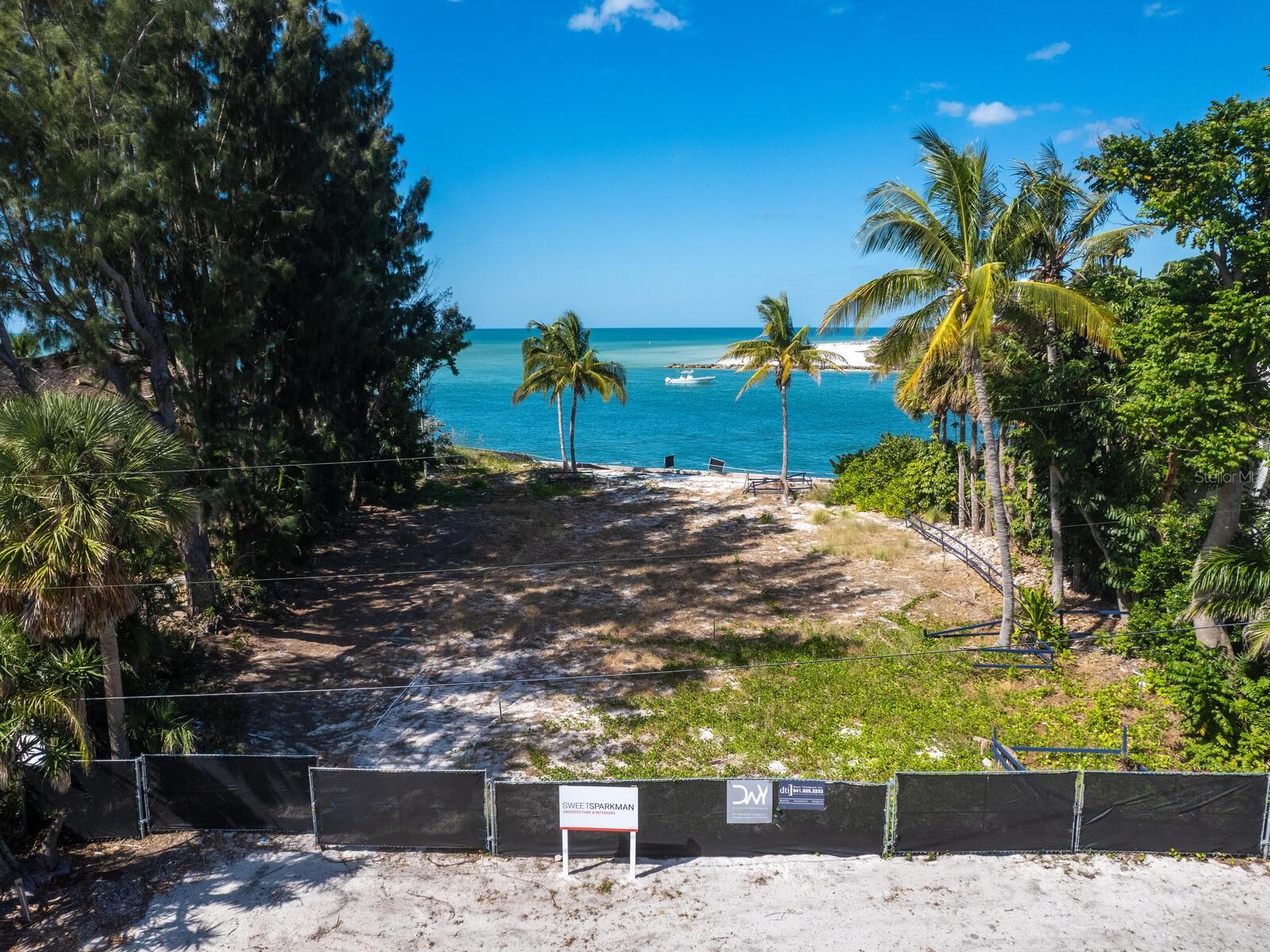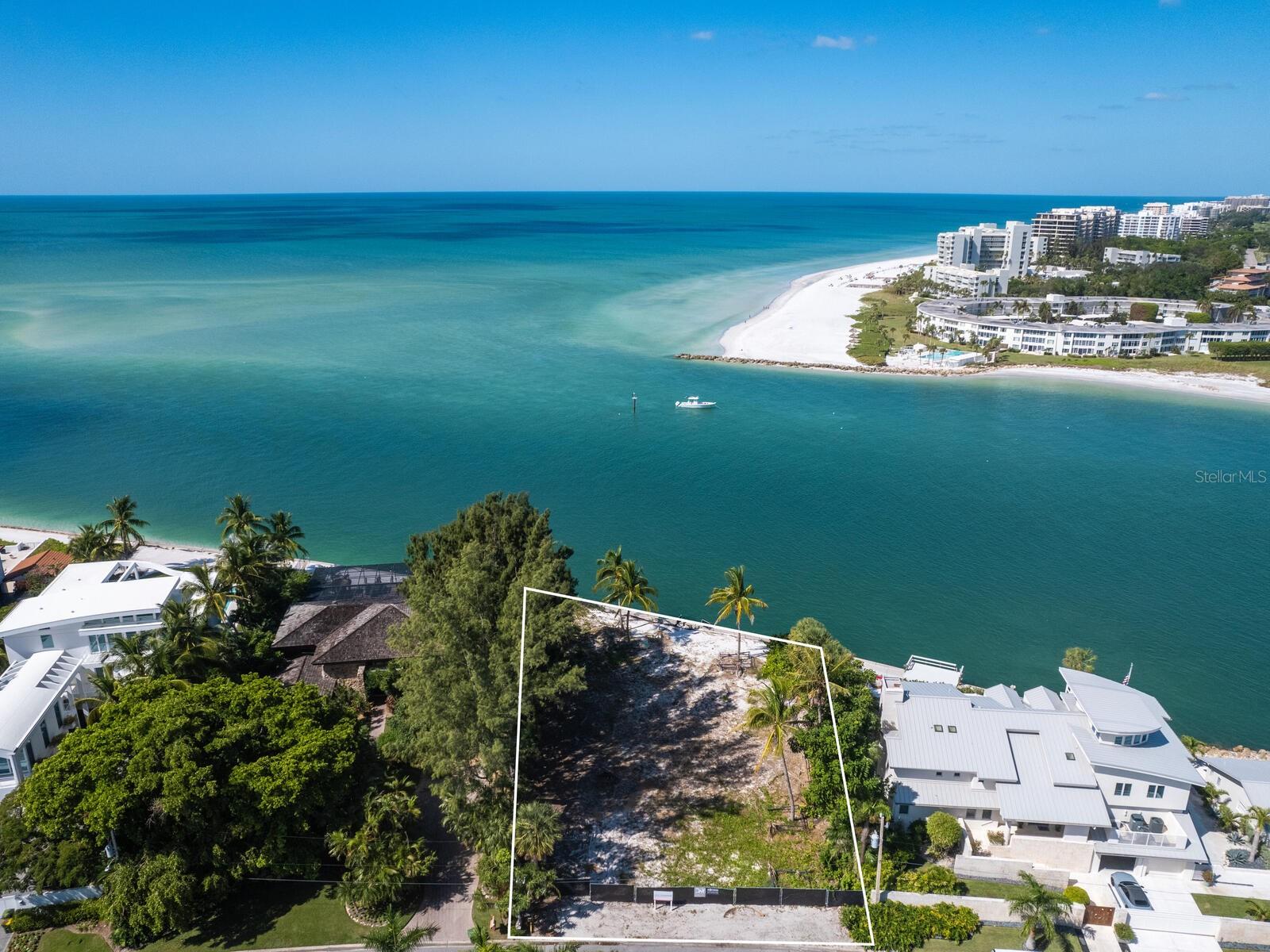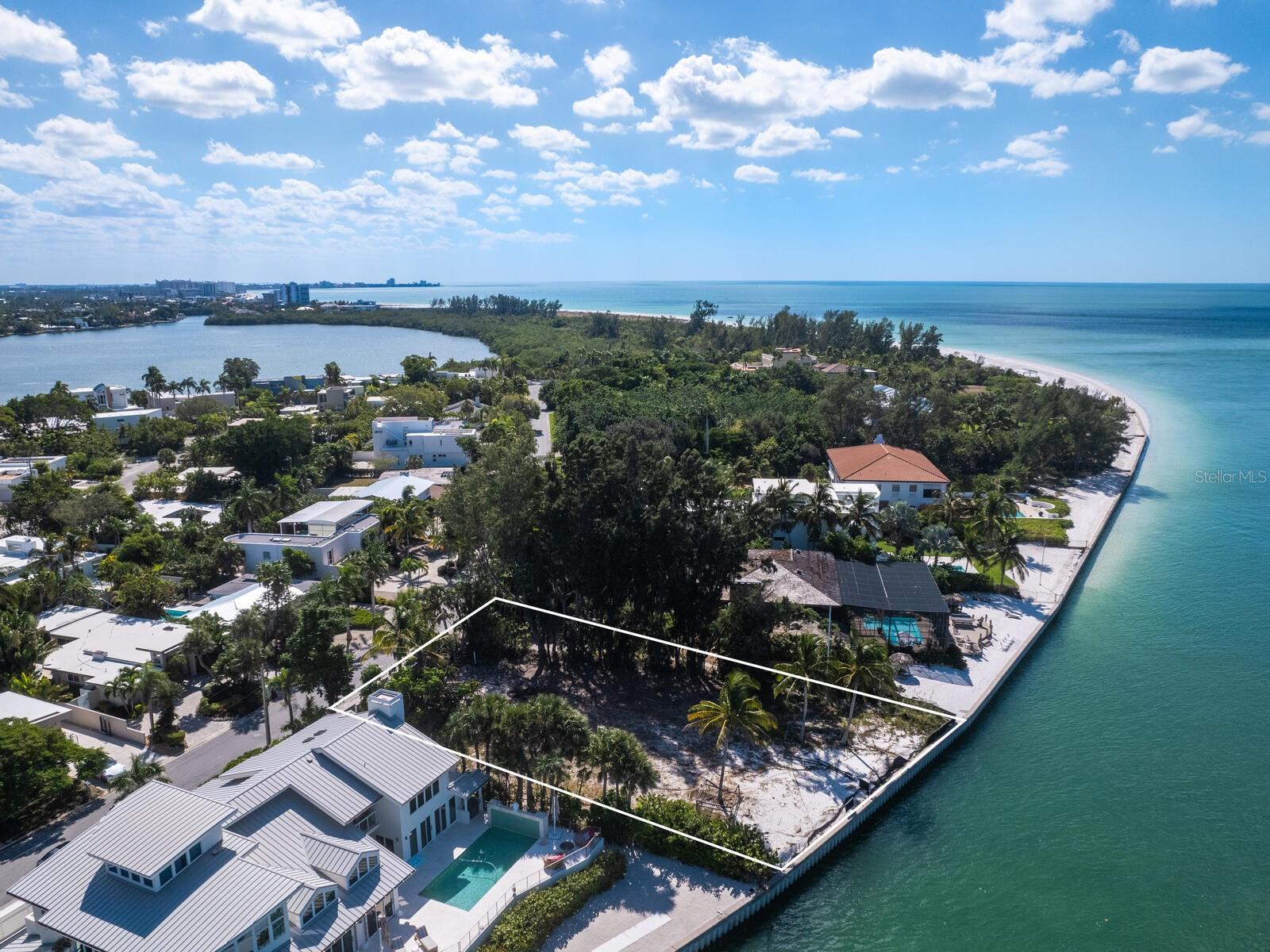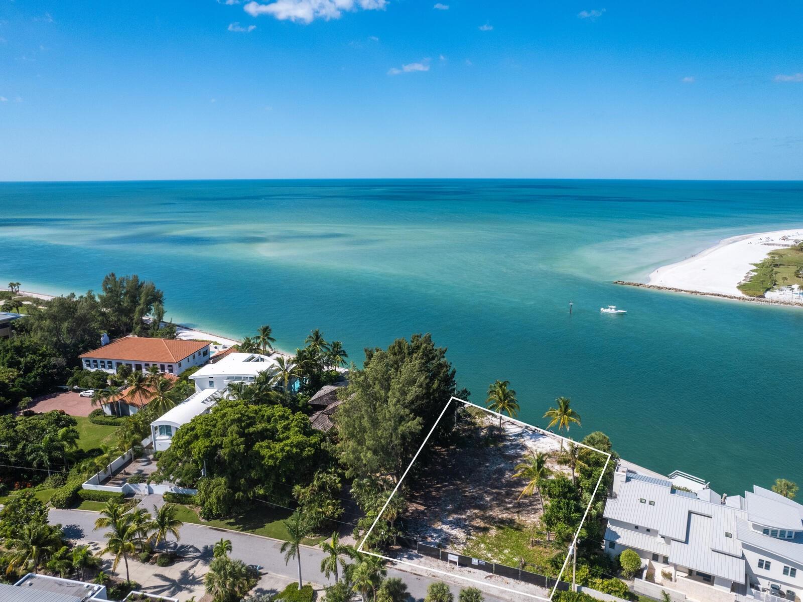 Spectacular once-in-a-lifetime opportunity to establish a personal estate on one of the most impressive waterfront lots of the Gulf Coast. This exceptional Gulf-front parcel offers a Lido Key address on Westway Drive, renowned for its globally recognized icons of midcentury modern design in the style of the Sarasota School of Architecture. The specific contour of this expansive .41-acre lot makes it the first Lido Shores address suitable for a deep-water dock and direct private boat access to the Gulf of Mexico. More than 120 feet of direct waterfront on the Gulf offers the opportunity for both private dock access and manicured landscaping or beach surface above the seawall, all with magnificent west-facing views of the water and the southern end of Longboat Key. Adding incalculable value, this lot is already cleared and permitted for immediate build potential of a large-scale estate. Architectural plans drawn by Jerry Sparkman of the famed design firm Sweet Sparkman are available with the land purchase. These plans honor the style of the Sarasota School of Architecture with dramatic angles, cantilevered living spaces, and the maximum elevation allowed in this enclave of Lido Key, showcasing the most spectacular views of any residence in Lido Shores at a height of 52 feet. With potential for worldwide recognition in modern design, these bespoke drawings encompass 6,885 square feet of living space under air across a magnificent primary home and separate pool house, with additional specifications including pool and spa, hardscaping, landscaping, and multi-story water features. Located in the most coveted position of the notable Lido Shores community, this Westway Drive parcel is uniquely poised for immediate groundbreaking. The address boasts acclaim not only for architectural distinction but for rare amenities that include private deeded beach access exclusive to Lido Shores residents, walking distance to the luxury boutiques and eateries of St. Armands Circle, and enviable proximity to the cosmopolitan core of Downtown Sarasota. With endless views and limitless potential, this is an incomparable and immediate opportunity to personalize ultra-luxury living on the Gulf Coast.