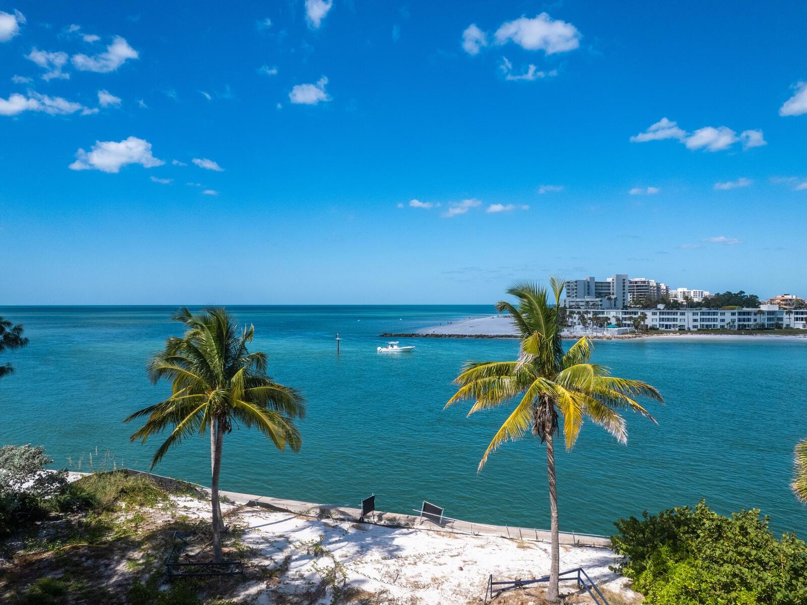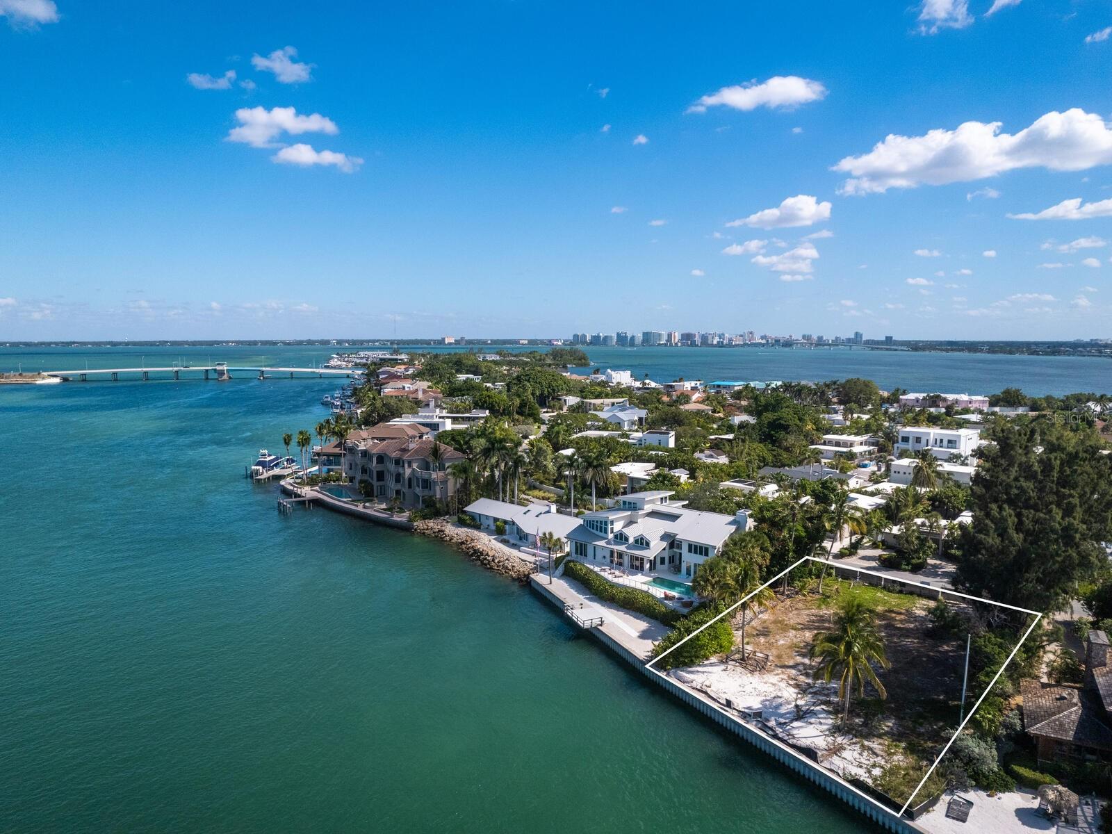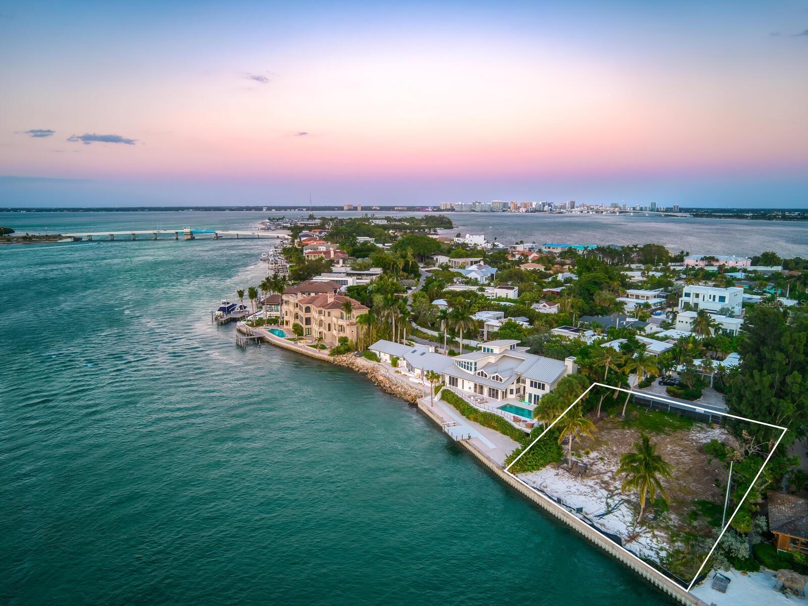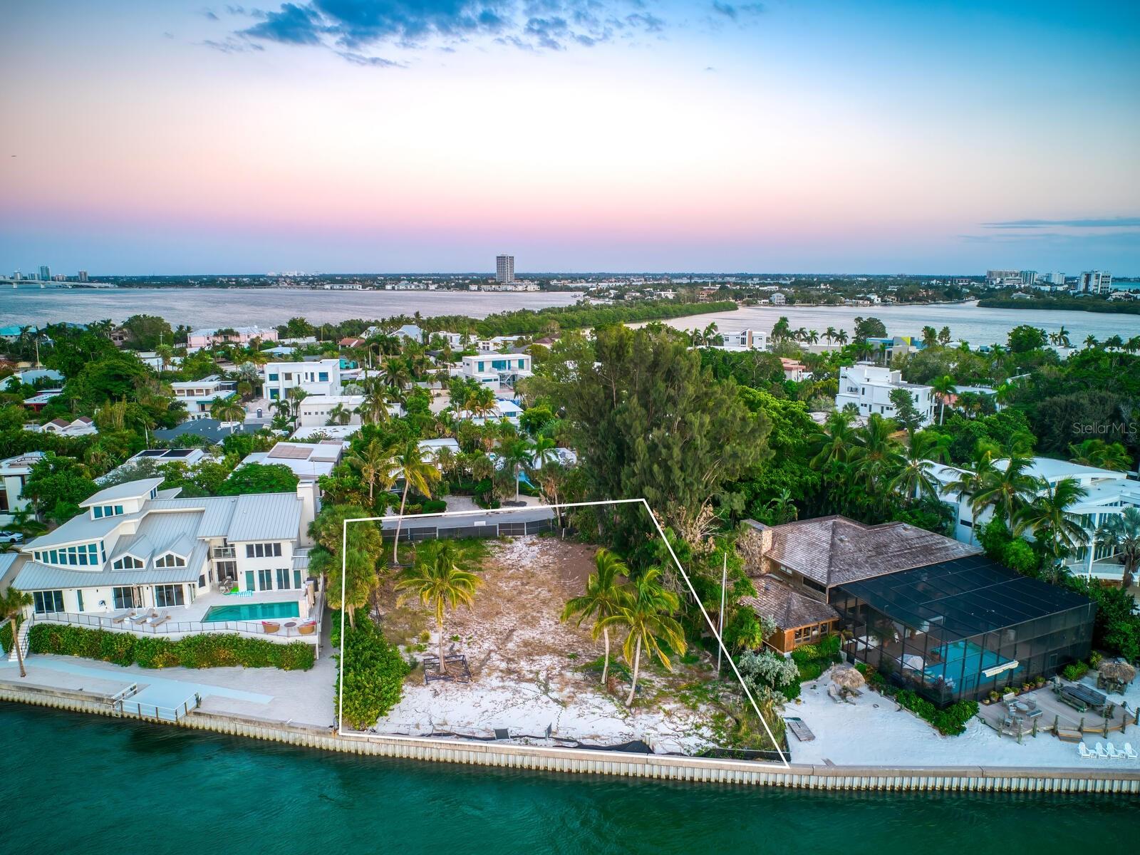 Spectacular once-in-a-lifetime opportunity to establish a personal estate on one of the most impressive waterfront lots of the Gulf Coast. This exceptional Gulf-front parcel offers a Lido Key address on Westway Drive, renowned for its globally recognized icons of midcentury modern design in the style of the Sarasota School of Architecture. The specific contour of this expansive .41-acre lot makes it the first Lido Shores address suitable for a deep-water dock and direct private boat access to the Gulf of Mexico. More than 120 feet of direct waterfront on the Gulf offers the opportunity for both private dock access and manicured landscaping or beach surface above the seawall, all with magnificent west-facing views of the water and the southern end of Longboat Key. Adding incalculable value, this lot is already cleared and permitted for immediate build potential of a large-scale estate. Architectural plans drawn by Jerry Sparkman of the famed design firm Sweet Sparkman are available with the land purchase. These plans honor the style of the Sarasota School of Architecture with dramatic angles, cantilevered living spaces, and the maximum elevation allowed in this enclave of Lido Key, showcasing the most spectacular views of any residence in Lido Shores at a height of 52 feet. With potential for worldwide recognition in modern design, these bespoke drawings encompass 6,885 square feet of living space under air across a magnificent primary home and separate pool house, with additional specifications including pool and spa, hardscaping, landscaping, and multi-story water features. Located in the most coveted position of the notable Lido Shores community, this Westway Drive parcel is uniquely poised for immediate groundbreaking. The address boasts acclaim not only for architectural distinction but for rare amenities that include private deeded beach access exclusive to Lido Shores residents, walking distance to the luxury boutiques and eateries of St. Armands Circle, and enviable proximity to the cosmopolitan core of Downtown Sarasota. With endless views and limitless potential, this is an incomparable and immediate opportunity to personalize ultra-luxury living on the Gulf Coast.