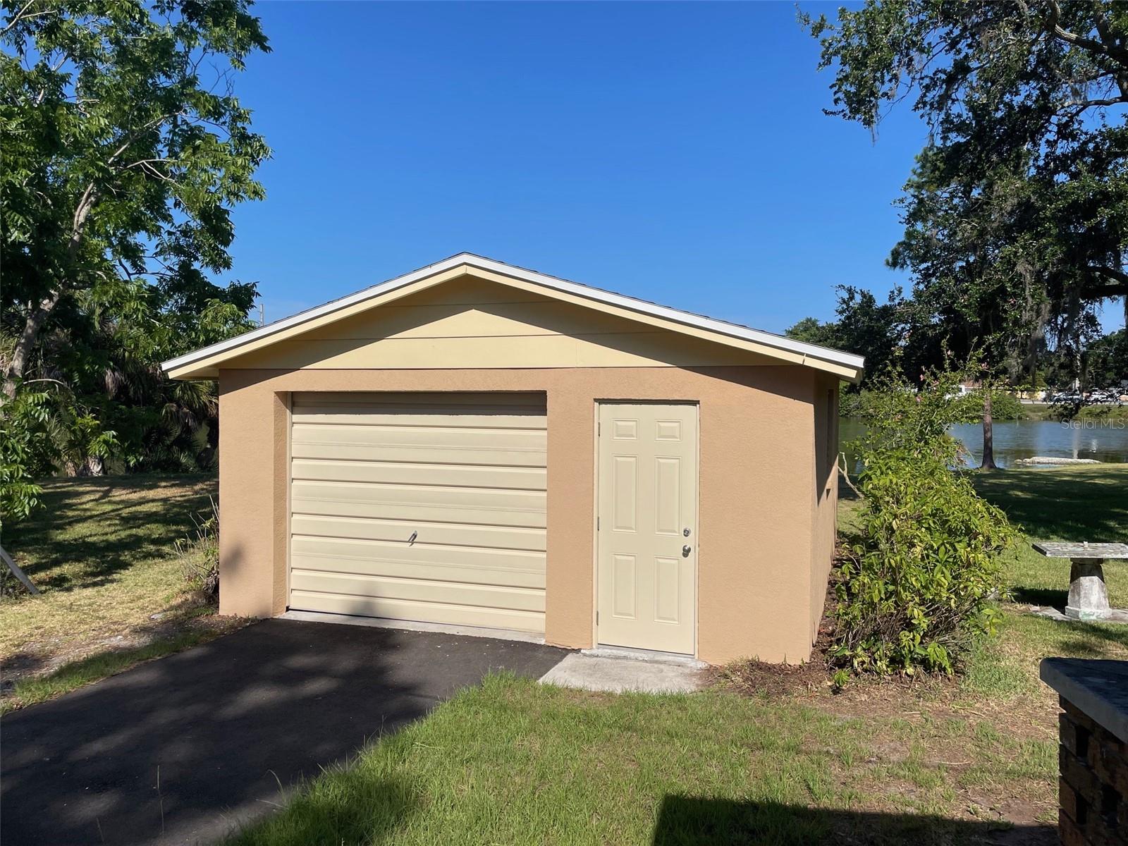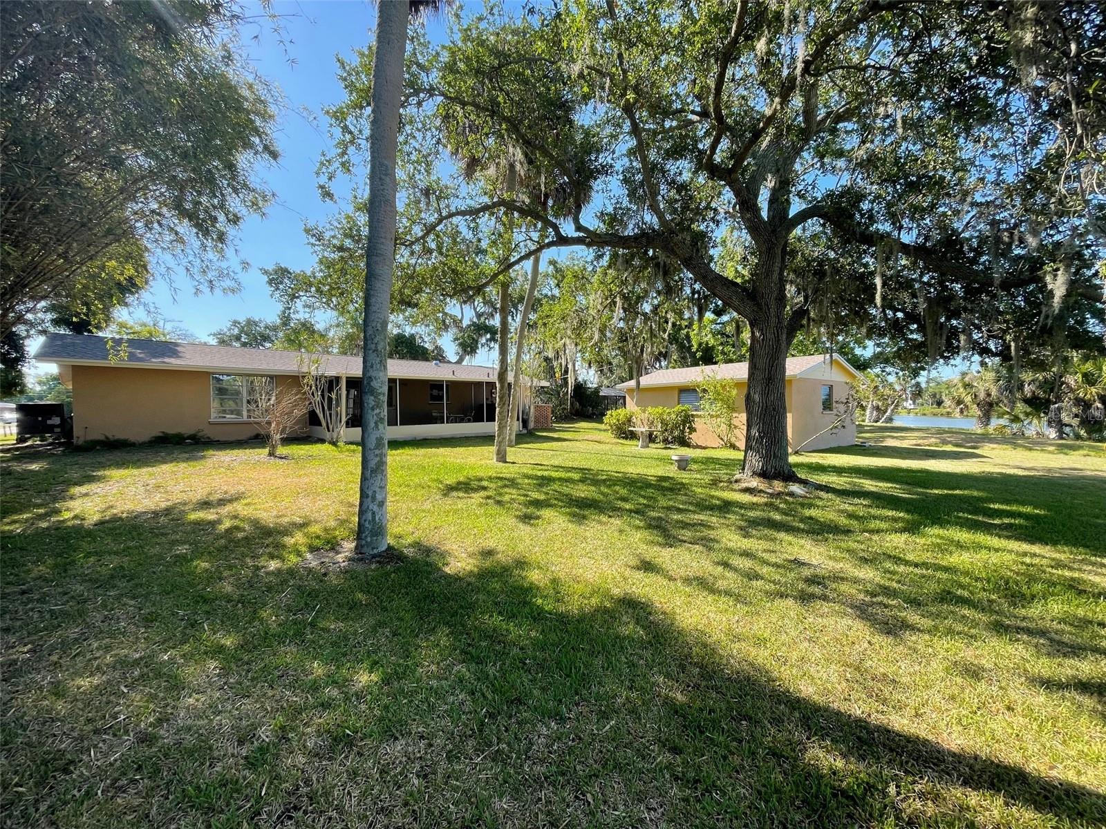 RARE FIND! ALMOST 1.2 ACRES OF LAKEFRONT SPLENDOR IN THE URBAN AREA! Non-deed restricted Clark Lakes allows accessory structures and this lot may be split into 2 half+ acre lots. The classic home and workshop/ extra garage has been well maintained with a new roof and HW heater and garage door opener. The land features mature shady oak trees and fruit trees with the long drive is set up for future easement/ lot split. This is ideal for a large self-sufficient garden and family compound with accessory structures and amenities. Builder opportunity includes renovating existing home and building a new home on front lot.