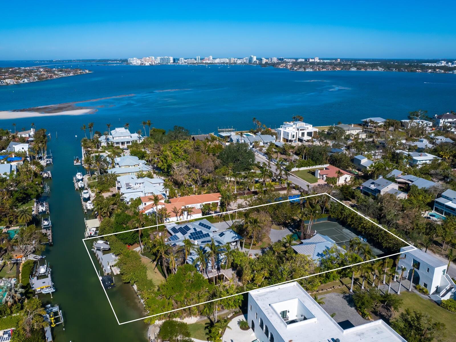 New price! Exclusive waterfront opportunity on Siesta Key to build your waterfront estate. Discover the pinnacle of waterfront living with this gated, estate-sized 1.27-acre property on wonderful Bay Island at the desirable north end of Siesta Key. This exceptional property is a boater's paradise, offering 178 feet of sailboat with no bridges waterfront with oversized dockage and unparalleled access to the Gulf of Mexico via deep boating waters through Big Pass. The main residence, storm-damaged and slated for demolition, presents a rare opportunity to design and build your dream coastal retreat on this expansive lot. Architectural plans are available for a stunning 5,000-square-foot coastal-contemporary residence, providing a seamless vision for this premier property. A newly constructed, elevated guest house offers immediate accommodations, blending modern luxury with breathtaking views of the serene surroundings. This estate also boasts a professional-grade tennis court for the sports enthusiast, an oversized dock and boat lift capable of accommodating larger vessels, and a separate kayak dock and jet ski dock, ensuring seamless enjoyment of the water. Just minutes from world-famous Siesta Beach and the mainland’s vibrant Sarasota lifestyle, this prime location offers the best of both worlds such as the tranquility of island living and the convenience of world-class dining, shopping and cultural amenities. This is more than a property, it’s a canvas to create a legacy estate in one of Florida’s sought-after waterfront enclaves.