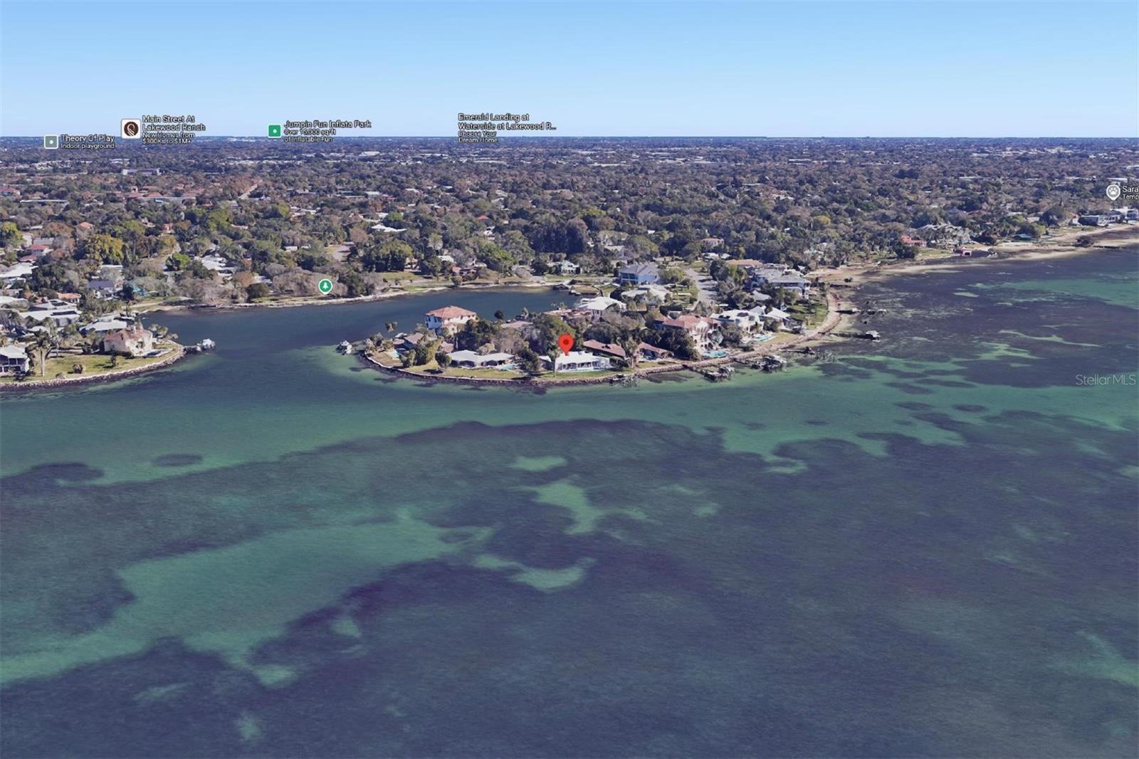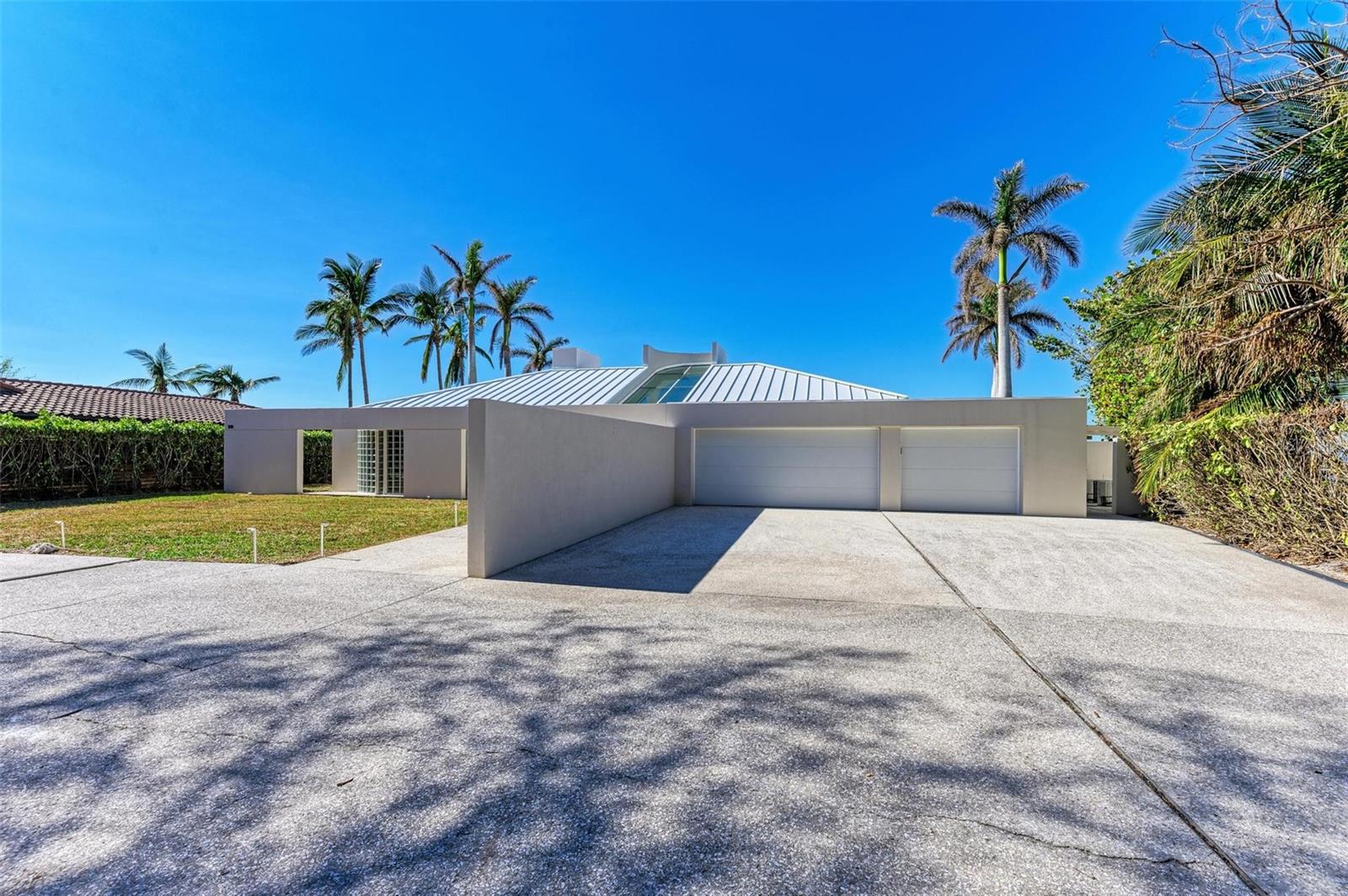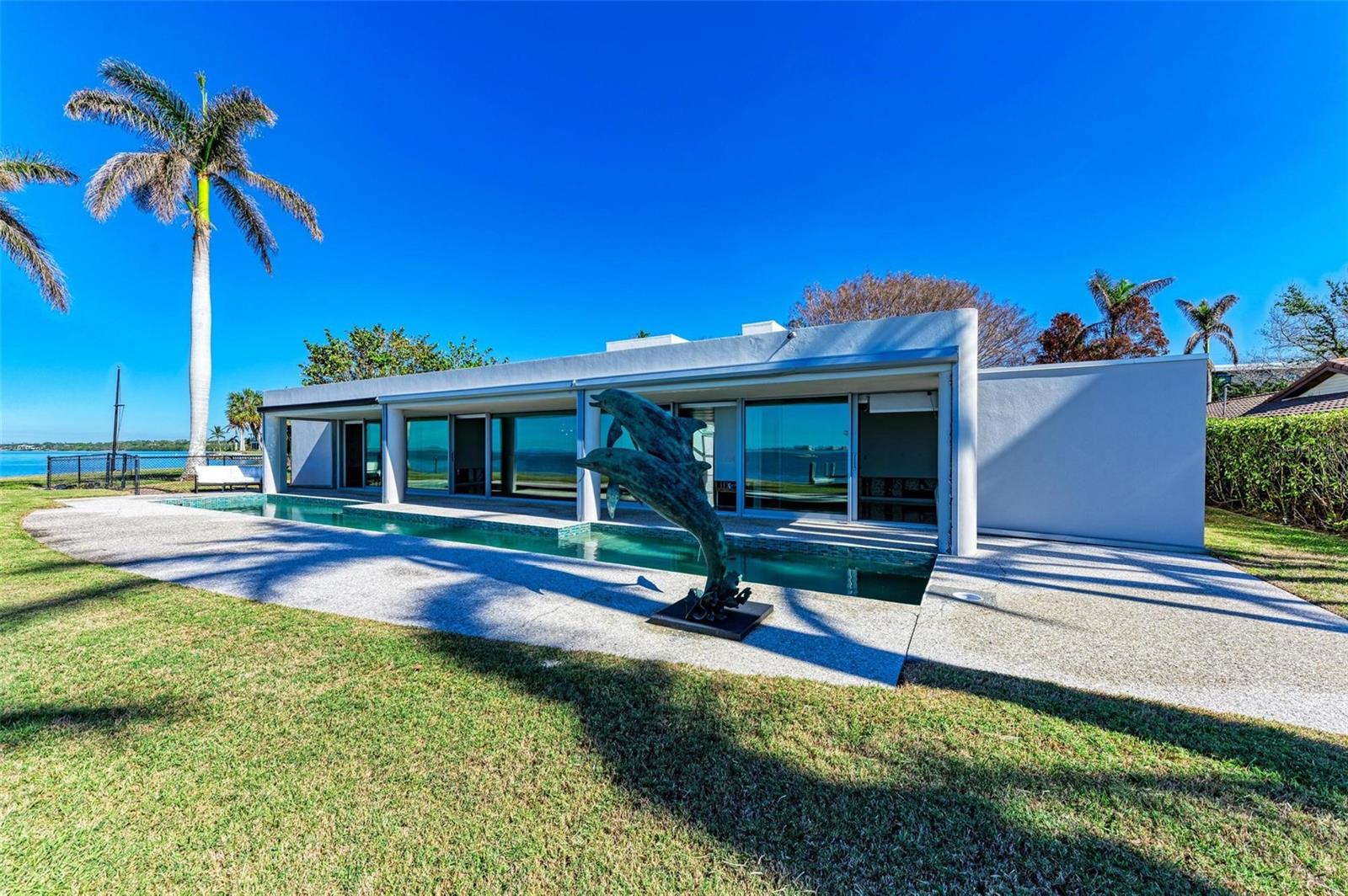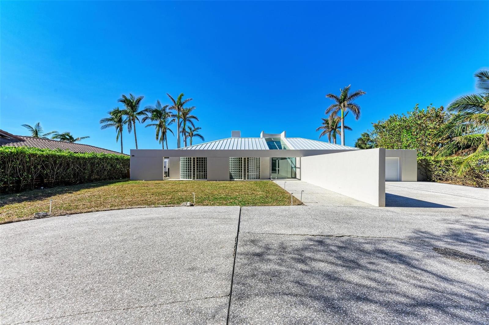 Exquisite Sarasota bayfront estate. Iconic modern design with unmatched views. At the apex of Stephens Point, this exceptional property offers one of the desirable locations in Sarasota, with panoramic, 180-degree views of North Sarasota Bay, the sparkling downtown lights and architectural beauty of the Ringling Bridge. Whether you're captivated by the vibrant sunset skies or the tranquil waters below, this home delivers a living experience that is simply unparalleled. Recognized as one of the most architecturally significant homes in the area, the former Baker Residence stands as a beacon of modern design. Designed by the award-winning architect Michael Shepherd and reimagined in 1992, the home embraces an open-concept floor plan that harmoniously connects the indoors with the stunning natural surroundings. Floor-to-ceiling windows flood the space with natural light, offering breathtaking vistas from almost every room. From the moment you step into the all-glass foyer and pass the sleek privacy wall, you’ll be captivated by the incredible water views that stretch as far as the eye can see. Set on nearly half an acre of gated and fenced land, this legacy estate boasts an impressive 120 feet of direct waterfront on North Sarasota Bay. A dream come true for boating enthusiasts, water sports aficionados and fishing lovers, the private dock provides effortless access to the bay for all your aquatic adventures. Nature enthusiasts will be equally delighted, with dolphins, marine life and a variety of bird species gracing the waters just outside your door. This stunning residence has undergone extensive updates in the last four years, ensuring a blend of modern comforts and timeless design. Recent improvements include a new metal roof, impact-resistant glass windows and sliding doors, retractable Kevlar storm panels and a completely refinished pool with contemporary glass tile. Inside, the gourmet kitchen is a chef's dream, featuring granite countertops, mahogany paneling and unobstructed views of the bay, making it an ideal space for cooking and entertaining. The spacious owner's suite is a serene retreat, with an indoor/outdoor spa, ideal for unwinding while taking in the waterfront vistas. The property also offers the ultimate in convenience and privacy, with a fully fenced perimeter, a Wi-Fi-enabled gate and a three-car garage with an epoxied floor. The lush front landscape is anchored by a stately banyan tree, adding a touch of grandeur to the estate. At the rear, the designer pool and expansive pool deck invite relaxation and entertaining, offering ample space for gatherings, while you enjoy the full sweep of Sarasota Bay views, second to none. Whether you're seeking a peaceful sanctuary to call home or an entertainer's paradise with incomparable vistas, this iconic Sarasota estate checks every box. Experience the beauty, serenity and exclusivity of one of the finest waterfront homes in the area. Minor flooding affected this home. It is being sold as-is.