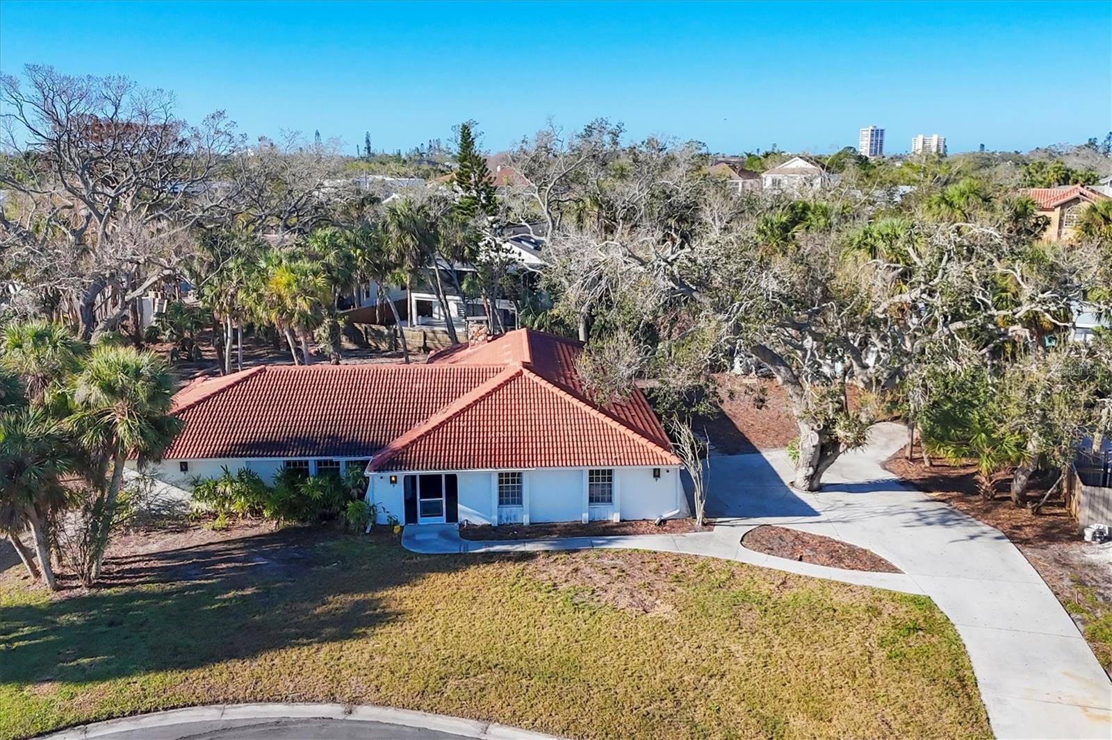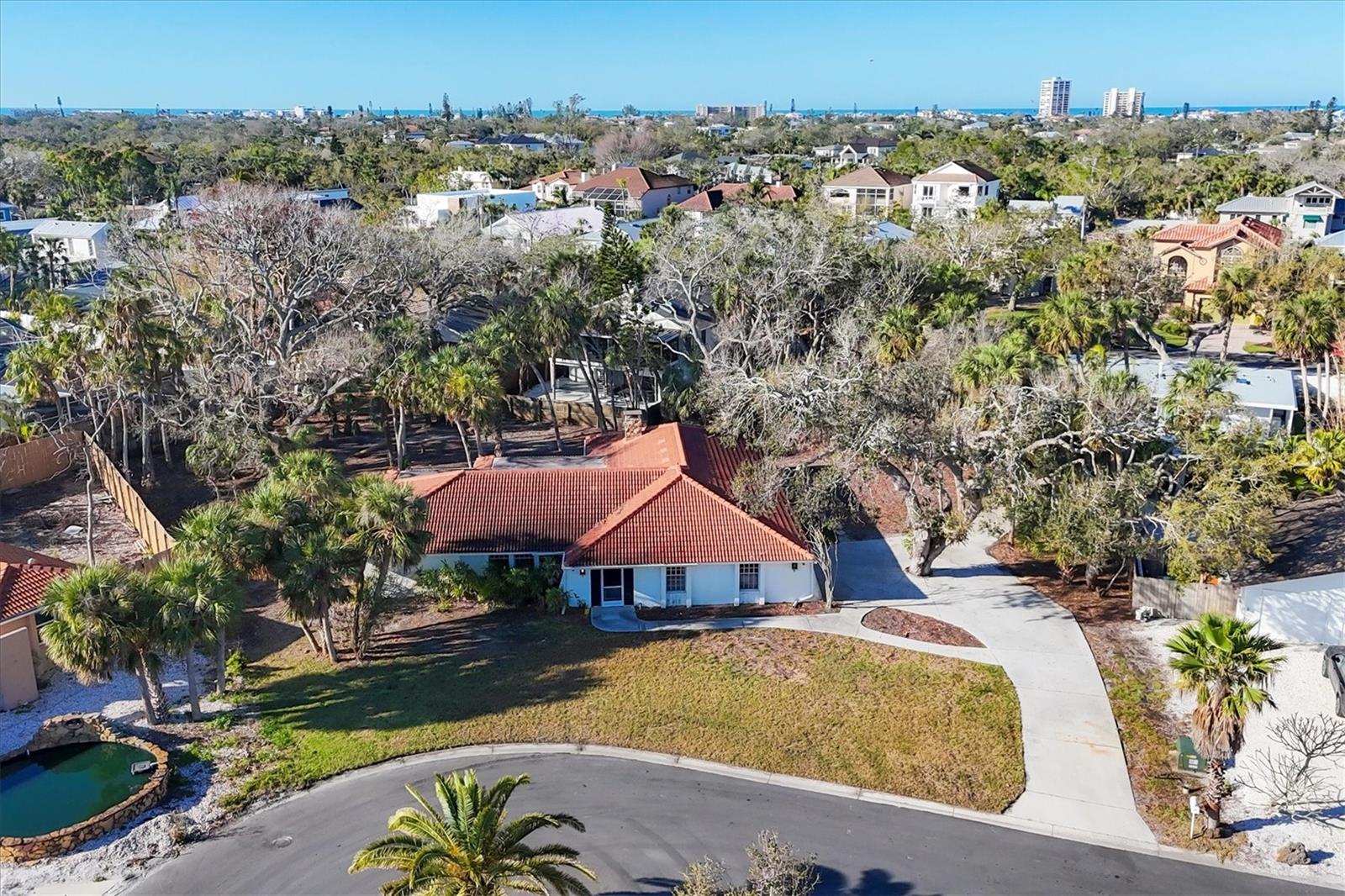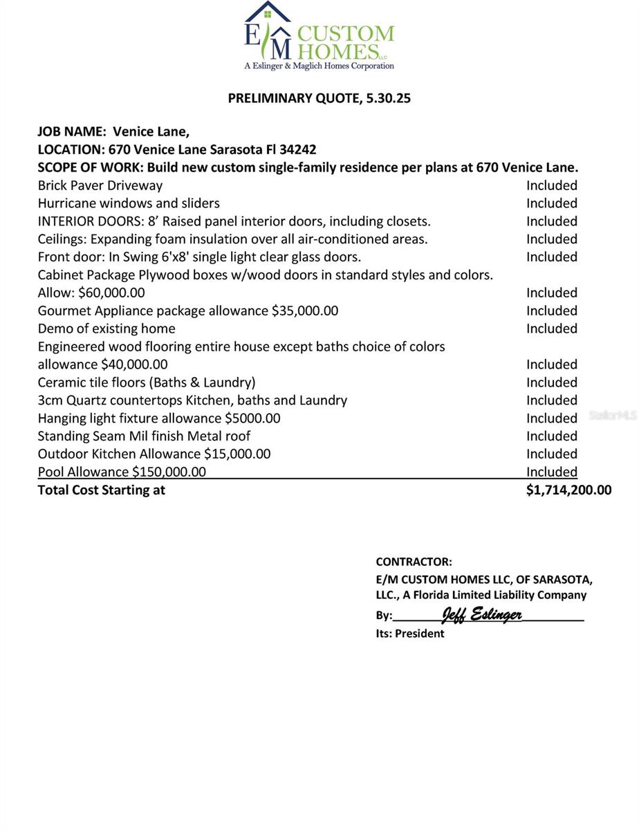 Imagine living in your dream home on world renowned Siesta Key…. THIS PROPERTY IS BEING SOLD FOR LAND VALUE ONLY!!! The cul-de-sac location offers privacy with no homes across the street. Live the local’s lifestyle in Waterside East, an established community with very little rental traffic. Easy access to the north and south bridges. The current home on the property has a footprint of 3,173 square feet. The tile roof 2018 and A/C 2021, condition unknown since the recent hurricanes. 2 feet of drywall was removed immediately after Helene. Windows were scheduled to be installed prior to the storms, they are in the garage if a buyer wants to renovate the home, no sliders. Property is being offered as-is. You can bring your own builder but E/M Custom Homes is the sellers preferred builder. Or…..This is your chance to collaborate with E/M Custom Homes, renowned for their impeccable craftsmanship and modern coastal design, to create a one-of-a-kind residence tailored to your lifestyle. A thoughtfully designed Coastal Contemporary home plan has been situated on the lot offering 2,750 sq. ft. of luxurious indoor living space, with a total of 3,467 sq. ft. of indoor/outdoor space perfect for enjoying Florida’s year-round sunshine. Features of this stunning home include, Gourmet Kitchen with custom cabinetry, luxury appliances, and a walk-in pantry—ideal for both casual meals and gourmet entertaining. An open-concept floor plan filled with natural light, seamlessly connecting the kitchen, dining area, and great room. 4 spacious bedrooms and 3.5 bathrooms, providing plenty of room for family and guests. A first-floor Master Suite with a spa-inspired en suite bath and a large walk-in closet—your private retreat. A second-floor balcony for enjoying views and relaxing in the breeze. An outdoor kitchen on the expansive covered lanai, perfect for alfresco dining. A beautiful custom designed private pool to enhance your outdoor living experience. An oversized 2-car garage and a convenient Laundry/Mudroom for everyday functionality and convenience. Don’t miss this rare opportunity to design a home that reflects your vision in a tropical paradise. Build your coastal dream home today!