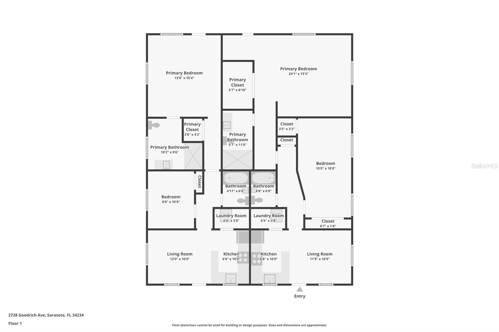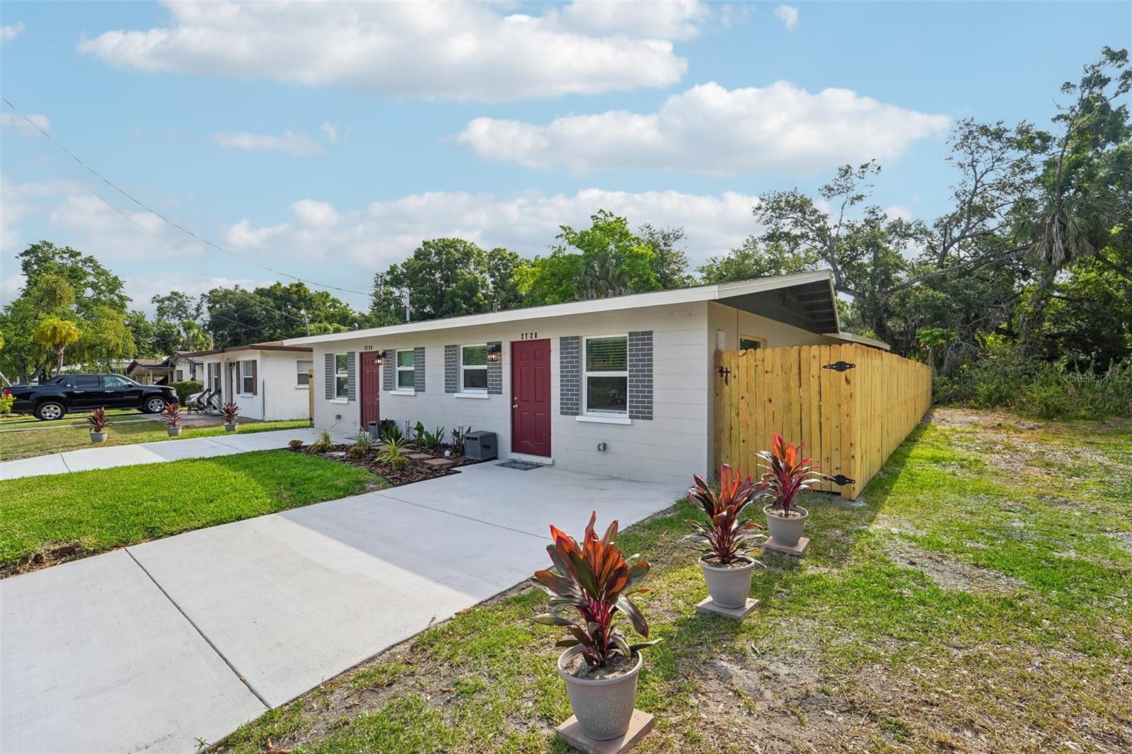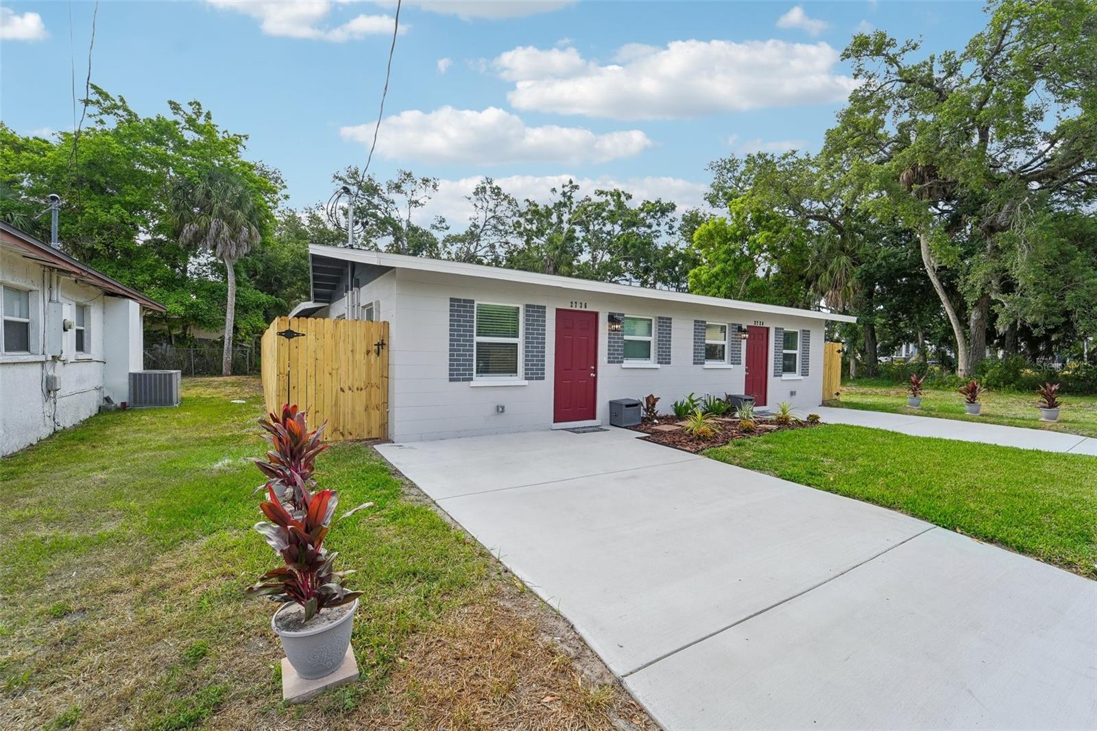 One or more photo(s) has been virtually staged. This property is ready for an investor that just wants to purchase and lease the next day. Nothing needs to be done. This ground up renovation has left no stone unturned. New plumbing, electrical service, roof, AC, windows, appliances including washer and dryer, fencing, sod and window coverings means close escrow and put out the For Rent sign. The quality of this renovation is seen at every turn. Step into the larger unit, 2728 and find a cute and conveniently designed kitchen/living area combination. Notice the extensive light from the hurricane rated windows and the strategic use of LED lighting. The functional kitchen features granite countertops, stainless steel appliances and access to a stackable washer dryer combination. The guest bath is tastefully designed and convenient to the large guest bedroom across the hall. This bedroom features more natural light from the windows and two closets. This room is larger than some primary bedrooms. The actual primary bedroom is located in the rear of the home and is an amazing 15 x 21 feet. There is a well-designed en-suite bath and a private entrance to the backyard. This bedroom area can be closed from the rest of the house. The smaller unit, 2736, offers the same design with slightly smaller bedrooms. Both residences feature brand new split AC systems in each room for energy efficiency, wonderful fenced backyards with new sod, wood-like blinds covering all windows, and electrical service capable of expanding with the times. Property shows as flood zone. House is located in Zone X. The rest of the property is located in AE. There should be no flood insurance requirement from a mortgage company. This duplex is minutes from Ringling School of Art and Design, a short hop to downtown Sarasota and minutes from SRQ airport. Booker High School and Robert L. Taylor Community Complex are a few blocks away.