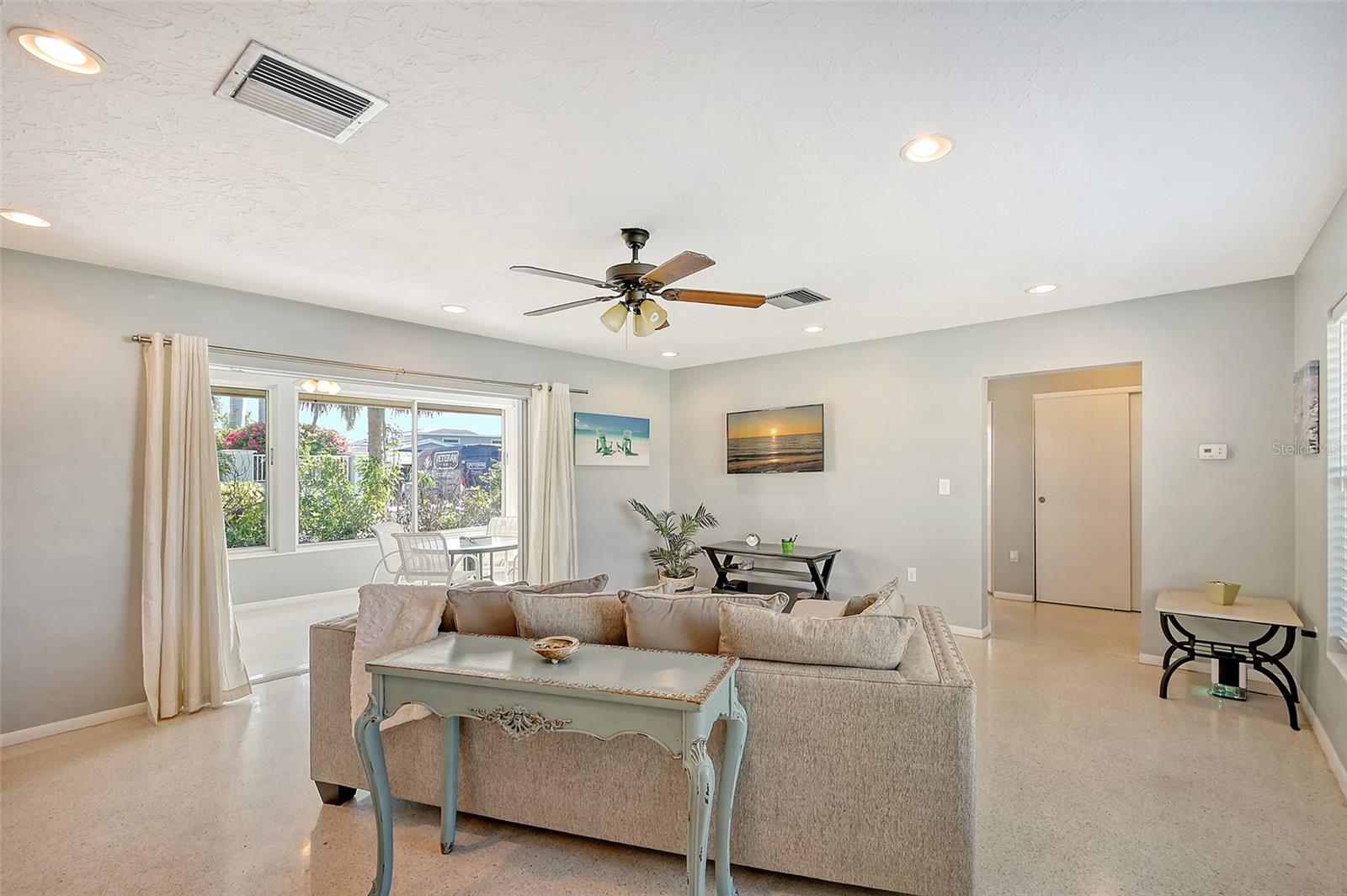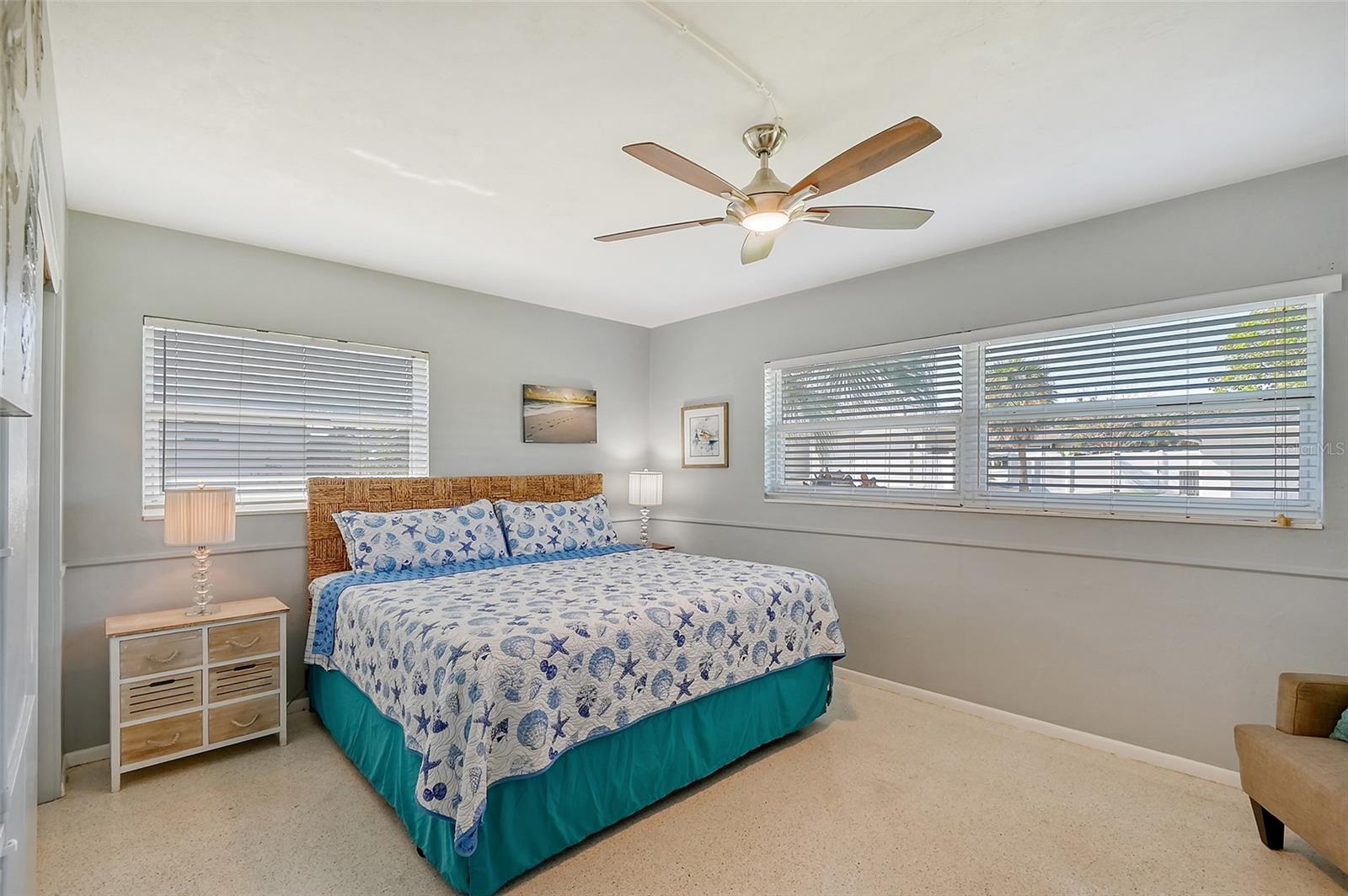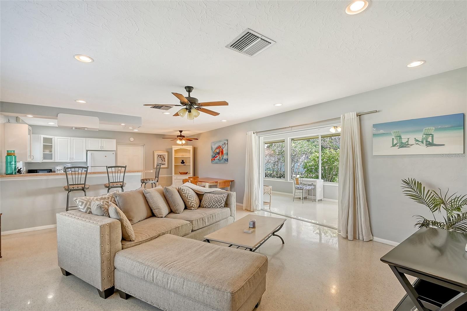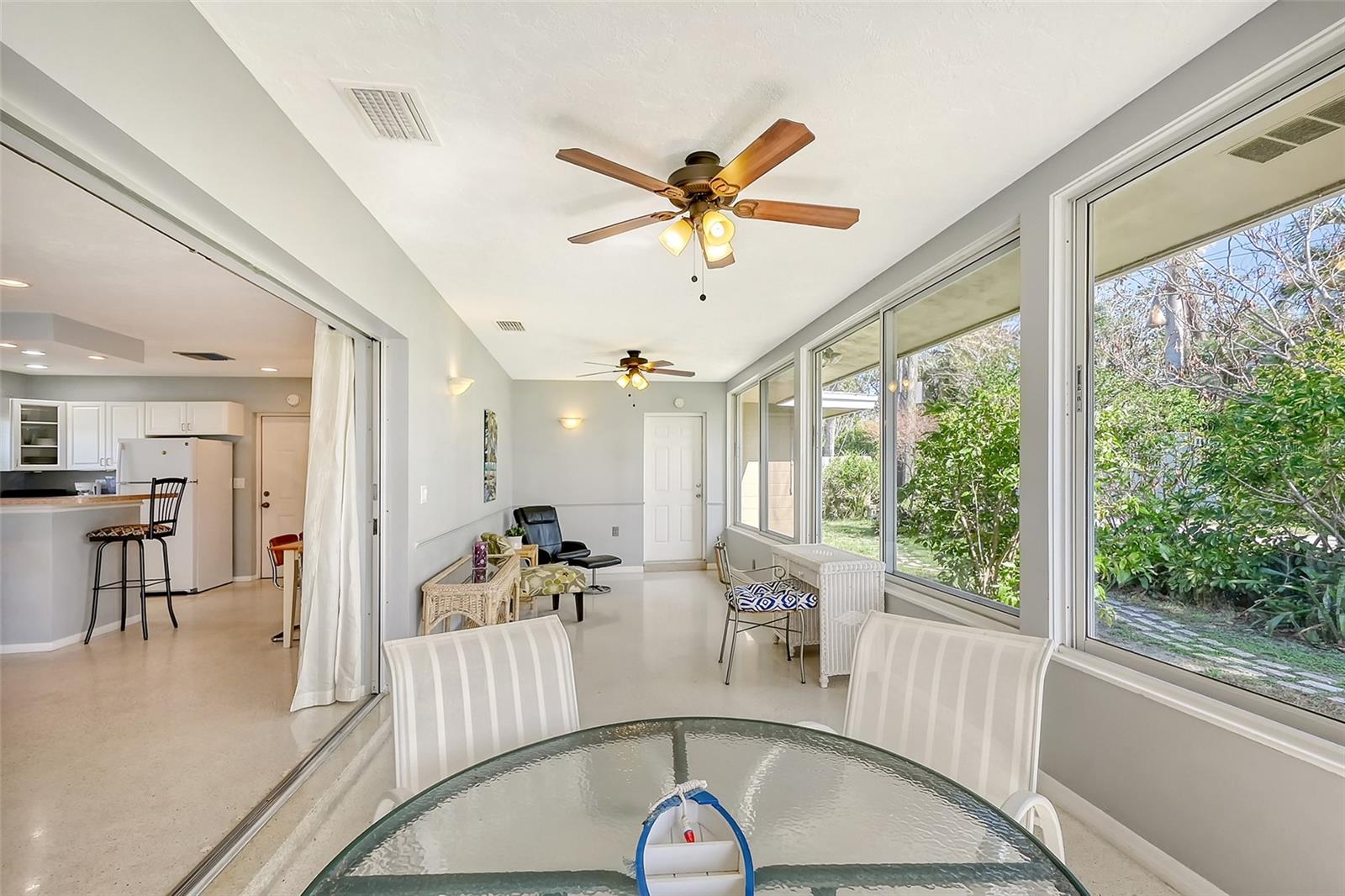 Ideally tucked away in a quiet, private neighborhood on the mainland in walking distance to #1 Siesta Key beach is this wonderful light & bright home. This well-maintained 2-bedroom 2-bath open-plan residence with large sunroom and 1-car garage is sold turnkey furnished ready for you as a primary home, vacation home or investment property. Rented continuously for the past 20 years as a successful Airbnb and annual rental with great rate of return. Approximately 1400 sq ft of air-conditioned space with an additional 232 sq ft laundry/utility room. The very spacious sunroom/Florida room is glass-enclosed & air conditioned with large picture windows bringing in the light and overlooking a serene landscaped garden. The roof was replaced in 2023, newer windows, newer septic tank & lift station, electric service upgrade, polished terrazzo floors throughout, paver brick driveway. Effective year built is 1997. Come see this special home surrounded by multi-million dollar homes and less than a mile from shopping and restaurants in eclectic Gulf Gate Mall, watersports & the beach.