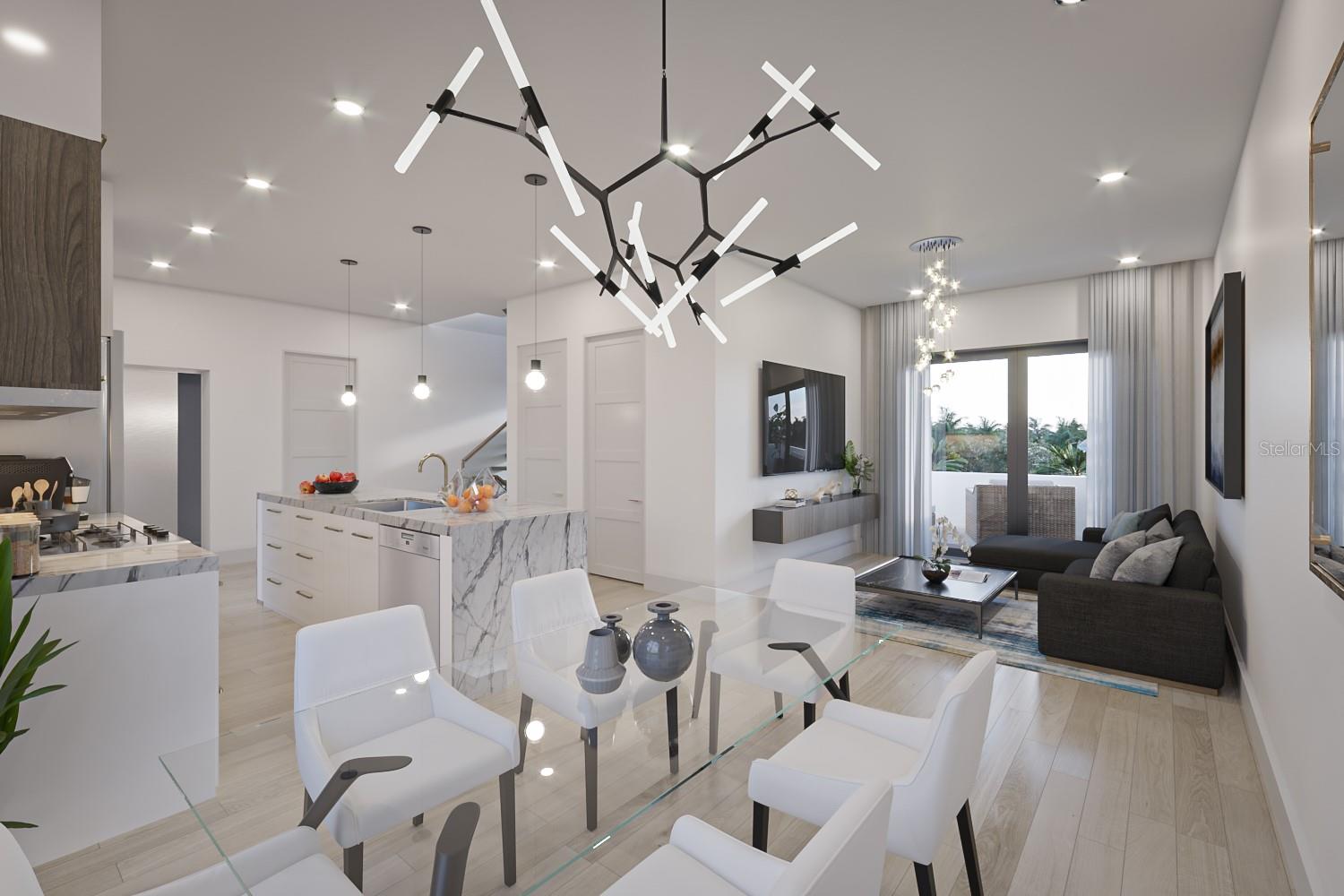 Under Construction. ***VISIT new FURNISHED MODEL NEXT DOOR at 2170 Fruitville Road. Open 12-3 pm weekends or by appointment.*** Are you dreaming of the perfect Uptown location close to everything Sarasota, with its amazing arts and cultural district, culinary delights, proximity to the farmers market, the John Ringling Bridge and the new 53-acre public park right on Sarasota’s bayfront? Well, this is it! In the hot PARK DISTRICT, you will find Premier on Main, a redesigned, stunning contemporary boutique neighborhood offering just six unique townhomes in this building. This spacious, newly constructed END UNIT residence offers 2,721 square feet of under-roof space at the east end of Main Street with 2,145 AC space. On the garage level, you have a two-car garage, staircase, elevator and den or ideal man cave! The staircase or elevator lead you upstairs to the main level of the three-level structure, where there is a spacious living room with expansive sliding doors which lead you onto a small terrace. Featuring contemporary designer finishes, high ceilings, plus a full bath and chef’s kitchen with a stainless steel appliance package and huge entertaining island, along with a spacious dining room and laundry closet. The third level, or bedroom floor, offers two en-suite bedrooms and walk-in closet and welcoming patio to enjoy Florida's ideal weather. This stunning contemporary design features designer-selected hard surface flooring, energy-efficient systems such as hurricane-rated ES impact windows and patio doors, recessed lighting, custom-contemporary European cabinetry with solid surface quartz countertops and under-cabinet lighting, high-efficiency zoned HVAC system, plus all fire alarm and sprinkler systems. Contracts are being accepted today. ***Homeowners association is already in place, with low fees of just $453/month, and includes common area landscape maintenance, water for landscape maintenance, private road maintenance, manager, liability insurance for the association. Don’t waste any time and contact the agent for your own private showing today!