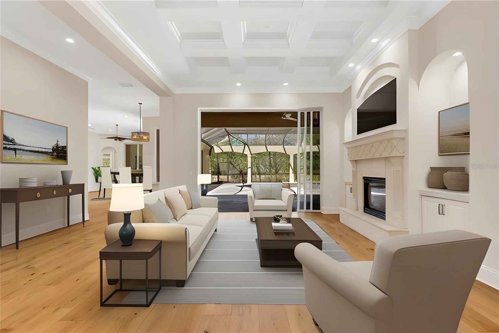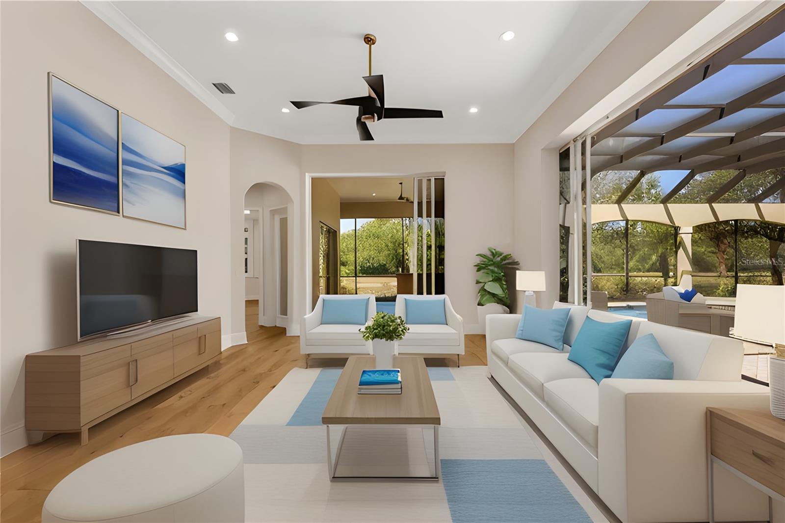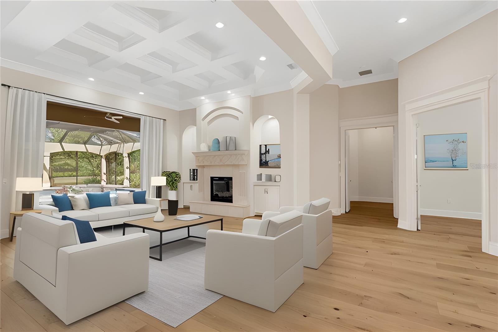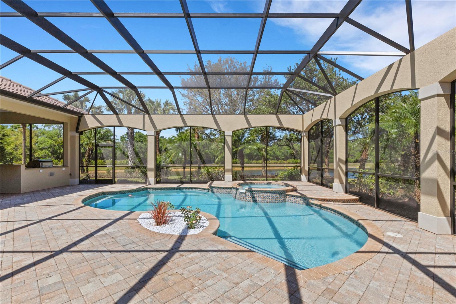 Beautifully updated home in the coveted Founders Club! Featuring 3 Bedrooms, 4 Baths, Den and a flexible Bonus Room which could function as a 4th Bedroom, Game Room, Media Room, or additional Office Space. Major renovation to this home includes: Gorgeous Wood Flooring throughout, New Paint inside and out, New Light Fixtures, New Wine Room, New Baths, and a Spectacular New Kitchen, creating an Updated, Contemporary Atmosphere with a Open, Light and Bright Feel! The Kitchen is a Chef's Dream with Calcutta Gold Quartz Countertops with a Stunning Waterfall Edge, Large Island with Cooktop, Custom Cabinetry, New Kitchen Aide Appliances including Built In Wall Oven and Microwave, New Light Fixtures, Breakfast Nook, Butler's Pantry with Wet Bar, and a New Wine Closet with extra Cabinets for Storage, Wine Cooler and Beverage Cooler. Owner's Suite is nicely appointed with tranquil views of the Lake and Expansive Lanai, as well as two large Walk In Closets with Closet Organizers, and an updated Bath with Dual Vanities, Soaking Tub, Separate Shower, and Water Closet. This Impressive Home is perfect for Relaxing or Entertaining as it features a Family Gathering Room adjacent to the Kitchen, Separate Formal Living Room with Gas Fireplace, Formal Dining Room, Open Floor Plan, Split Bedroom Plan, and Pocket Sliding Glass Doors that open to the Stunning Lanai with Heated Pool and Spa, Covered Outdoor Living Area, and Outdoor Kitchen, all overlooking Lush Landscaping and Lake View. Other High End touches include Crown Molding, Tray and Coffered Ceilings, a beautifully updated Laundry Room, and a Large Side Entry 3 Car Garage with extra storage. Enjoy the Florida Lifestyle in the gated community of The Founders Club, with it's exclusive Robert Trent Jones Jr 18-hole Championship Golf Course, Tennis/Pickle Ball Courts, Basketball Court, Fitness Center and an option to join as a Social Member which would include the Active, 24,000 sf Clubhouse with Restaurant, Bar, and Dining Patio overlooking the Gorgeous 18th Green. Prime Sarasota location with close proximity to Downtown Sarasota, St Armand's Circle, Lido and Siesta Key Beaches, University Town Center, I-75, Sarasota Airport, Medical Centers, and is also adjacent to the new Lakewood Ranch Waterside Main Street with restaurants, shopping, and Farmer's Market. This is truly an excellent opportunity to own a Move In Ready, Completely Updated Home in a Highly Desirable Area! Schedule an appointment today, this Spectacular Home will not disappoint!
