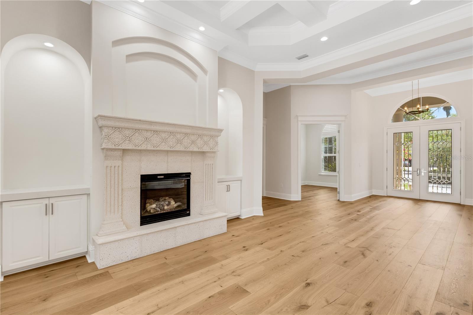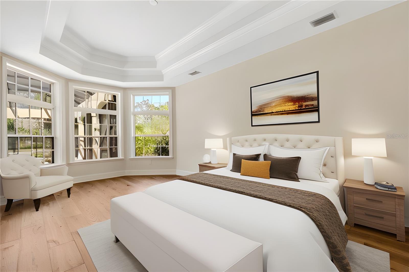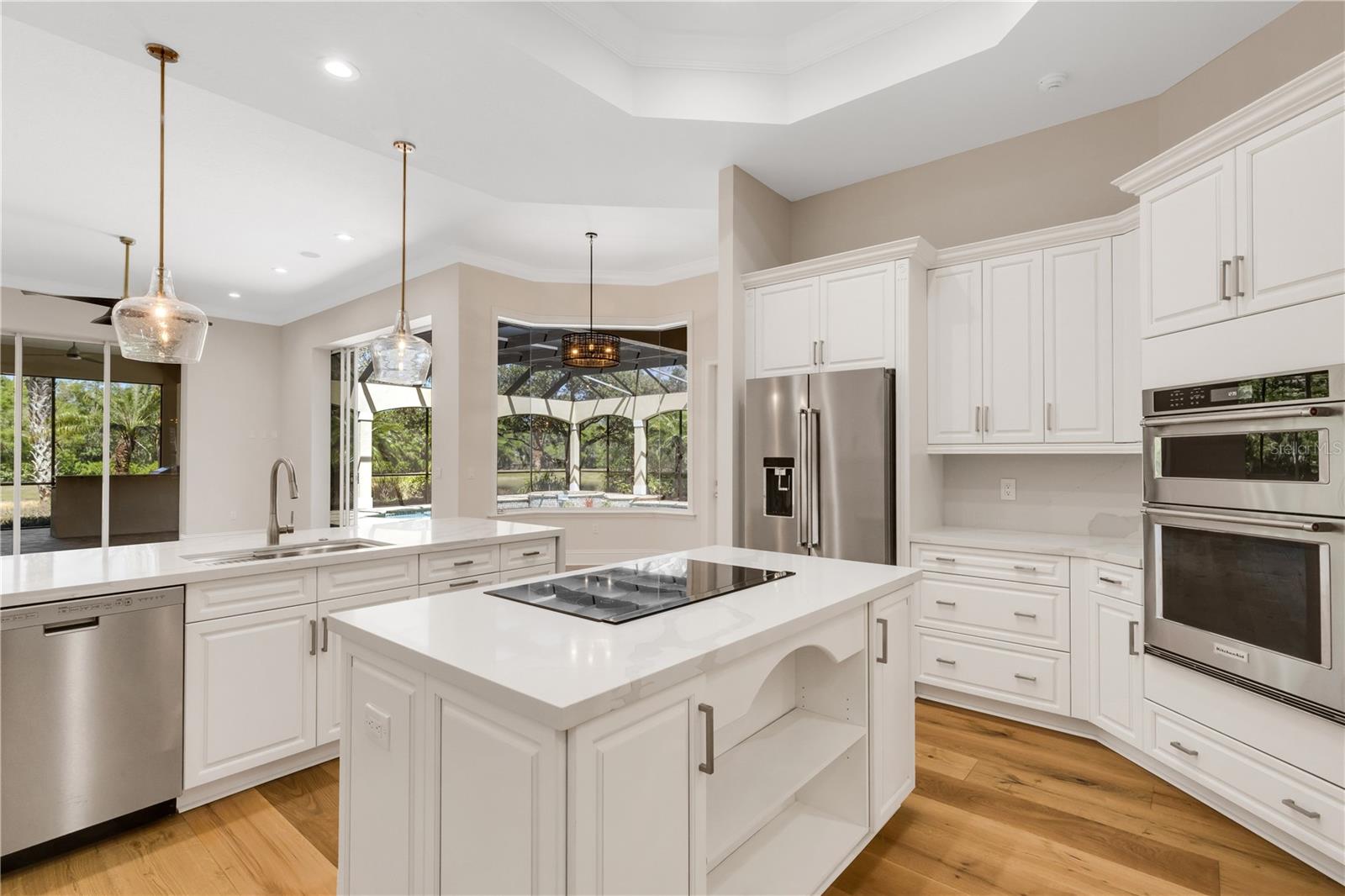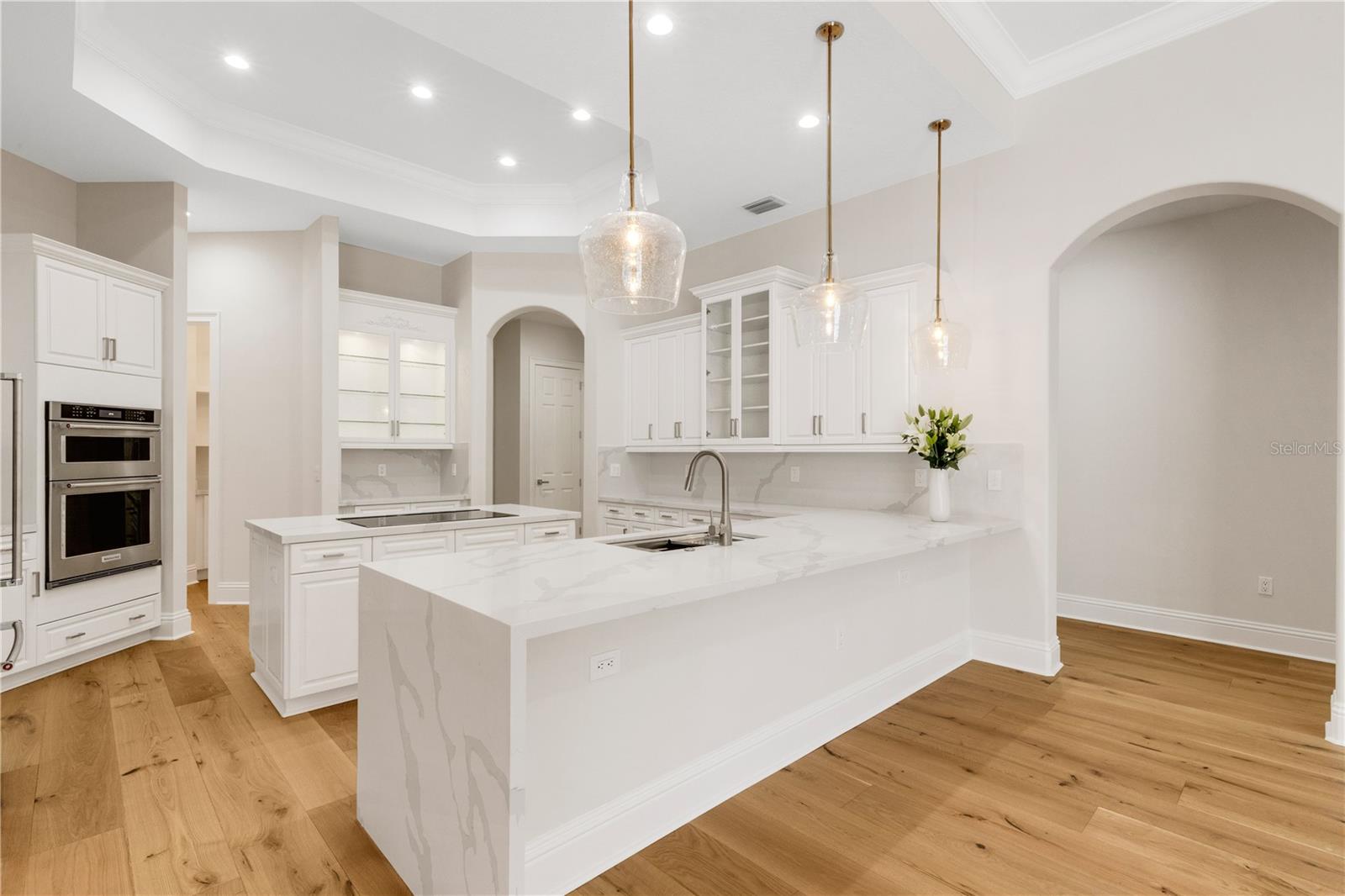 Beautifully updated home in the coveted Founders Club! Featuring 3 Bedrooms, 4 Baths, Den and a flexible Bonus Room which could function as a 4th Bedroom, Game Room, Media Room, or additional Office Space. Major renovation to this home includes: Gorgeous Wood Flooring throughout, New Paint inside and out, New Light Fixtures, New Wine Room, New Baths, and a Spectacular New Kitchen, creating an Updated, Contemporary Atmosphere with a Open, Light and Bright Feel! The Kitchen is a Chef's Dream with Calcutta Gold Quartz Countertops with a Stunning Waterfall Edge, Large Island with Cooktop, Custom Cabinetry, New Kitchen Aide Appliances including Built In Wall Oven and Microwave, New Light Fixtures, Breakfast Nook, Butler's Pantry with Wet Bar, and a New Wine Closet with extra Cabinets for Storage, Wine Cooler and Beverage Cooler. Owner's Suite is nicely appointed with tranquil views of the Lake and Expansive Lanai, as well as two large Walk In Closets with Closet Organizers, and an updated Bath with Dual Vanities, Soaking Tub, Separate Shower, and Water Closet. This Impressive Home is perfect for Relaxing or Entertaining as it features a Family Gathering Room adjacent to the Kitchen, Separate Formal Living Room with Gas Fireplace, Formal Dining Room, Open Floor Plan, Split Bedroom Plan, and Pocket Sliding Glass Doors that open to the Stunning Lanai with Heated Pool and Spa, Covered Outdoor Living Area, and Outdoor Kitchen, all overlooking Lush Landscaping and Lake View. Other High End touches include Crown Molding, Tray and Coffered Ceilings, a beautifully updated Laundry Room, and a Large Side Entry 3 Car Garage with extra storage. Enjoy the Florida Lifestyle in the gated community of The Founders Club, with it's exclusive Robert Trent Jones Jr 18-hole Championship Golf Course, Tennis/Pickle Ball Courts, Basketball Court, Fitness Center and an option to join as a Social Member which would include the Active, 24,000 sf Clubhouse with Restaurant, Bar, and Dining Patio overlooking the Gorgeous 18th Green. Prime Sarasota location with close proximity to Downtown Sarasota, St Armand's Circle, Lido and Siesta Key Beaches, University Town Center, I-75, Sarasota Airport, Medical Centers, and is also adjacent to the new Lakewood Ranch Waterside Main Street with restaurants, shopping, and Farmer's Market. This is truly an excellent opportunity to own a Move In Ready, Completely Updated Home in a Highly Desirable Area! Schedule an appointment today, this Spectacular Home will not disappoint!