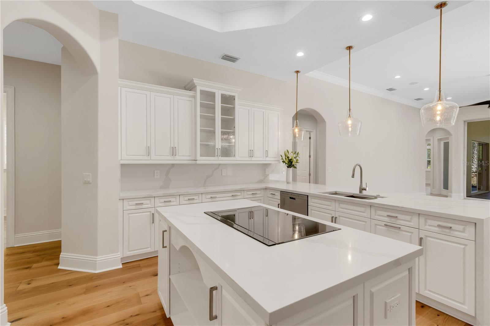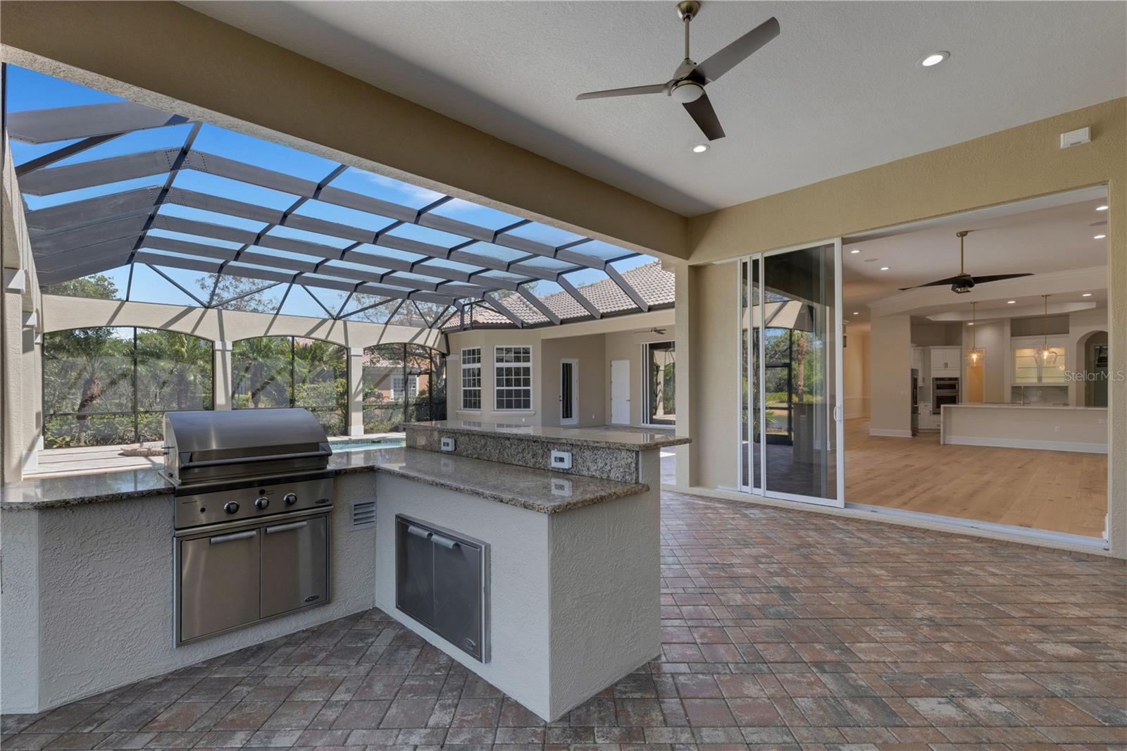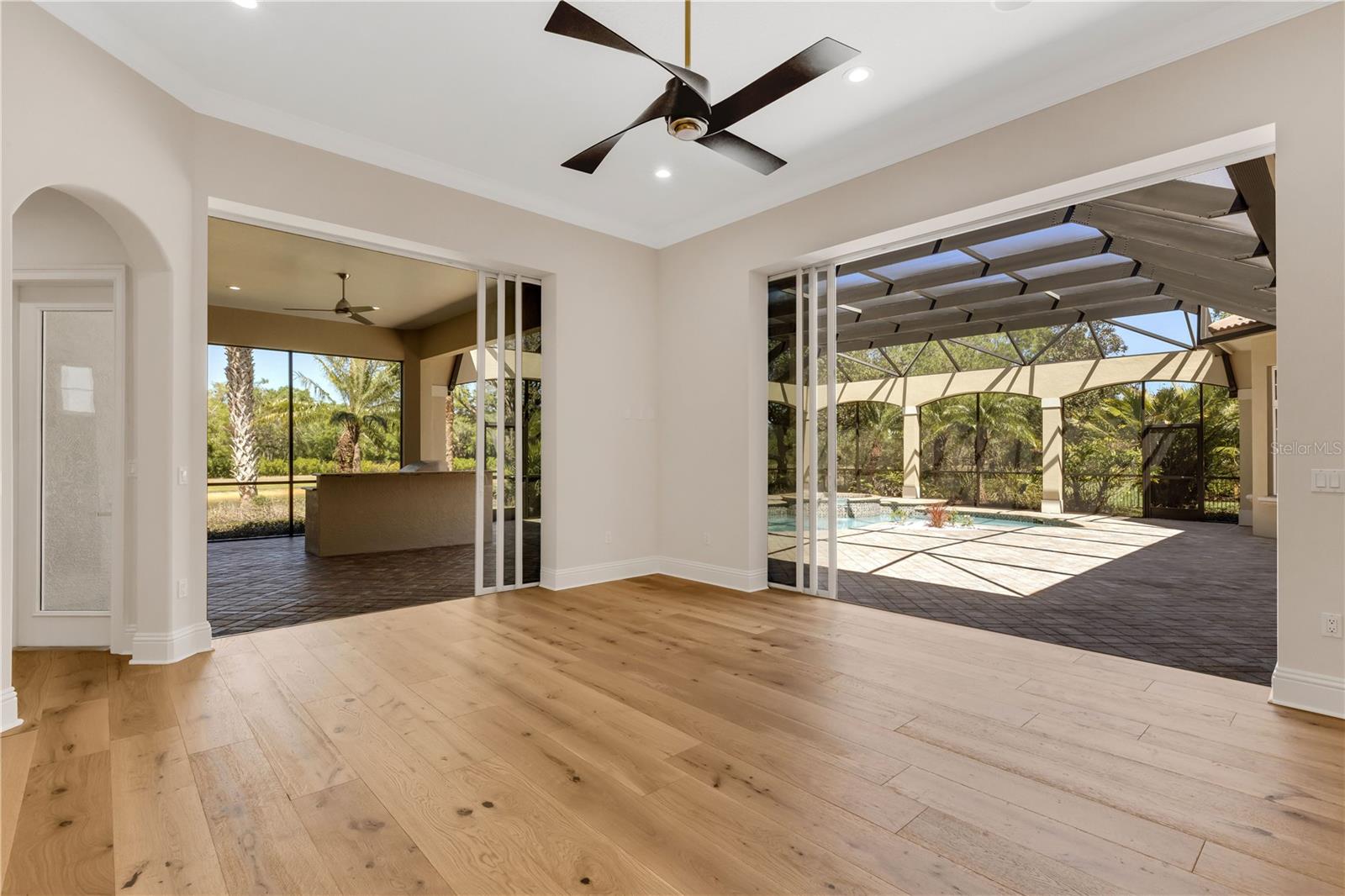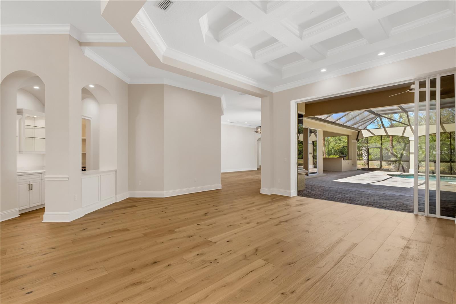 Beautifully updated home in the coveted Founders Club! Featuring 3 Bedrooms, 4 Baths, Den and a flexible Bonus Room which could function as a 4th Bedroom, Game Room, Media Room, or additional Office Space. Major renovation to this home includes: Gorgeous Wood Flooring throughout, New Paint inside and out, New Light Fixtures, New Wine Room, New Baths, and a Spectacular New Kitchen, creating an Updated, Contemporary Atmosphere with a Open, Light and Bright Feel! The Kitchen is a Chef's Dream with Calcutta Gold Quartz Countertops with a Stunning Waterfall Edge, Large Island with Cooktop, Custom Cabinetry, New Kitchen Aide Appliances including Built In Wall Oven and Microwave, New Light Fixtures, Breakfast Nook, Butler's Pantry with Wet Bar, and a New Wine Closet with extra Cabinets for Storage, Wine Cooler and Beverage Cooler. Owner's Suite is nicely appointed with tranquil views of the Lake and Expansive Lanai, as well as two large Walk In Closets with Closet Organizers, and an updated Bath with Dual Vanities, Soaking Tub, Separate Shower, and Water Closet. This Impressive Home is perfect for Relaxing or Entertaining as it features a Family Gathering Room adjacent to the Kitchen, Separate Formal Living Room with Gas Fireplace, Formal Dining Room, Open Floor Plan, Split Bedroom Plan, and Pocket Sliding Glass Doors that open to the Stunning Lanai with Heated Pool and Spa, Covered Outdoor Living Area, and Outdoor Kitchen, all overlooking Lush Landscaping and Lake View. Other High End touches include Crown Molding, Tray and Coffered Ceilings, a beautifully updated Laundry Room, and a Large Side Entry 3 Car Garage with extra storage. Enjoy the Florida Lifestyle in the gated community of The Founders Club, with it's exclusive Robert Trent Jones Jr 18-hole Championship Golf Course, Tennis/Pickle Ball Courts, Basketball Court, Fitness Center and an option to join as a Social Member which would include the Active, 24,000 sf Clubhouse with Restaurant, Bar, and Dining Patio overlooking the Gorgeous 18th Green. Prime Sarasota location with close proximity to Downtown Sarasota, St Armand's Circle, Lido and Siesta Key Beaches, University Town Center, I-75, Sarasota Airport, Medical Centers, and is also adjacent to the new Lakewood Ranch Waterside Main Street with restaurants, shopping, and Farmer's Market. This is truly an excellent opportunity to own a Move In Ready, Completely Updated Home in a Highly Desirable Area! Schedule an appointment today, this Spectacular Home will not disappoint!
