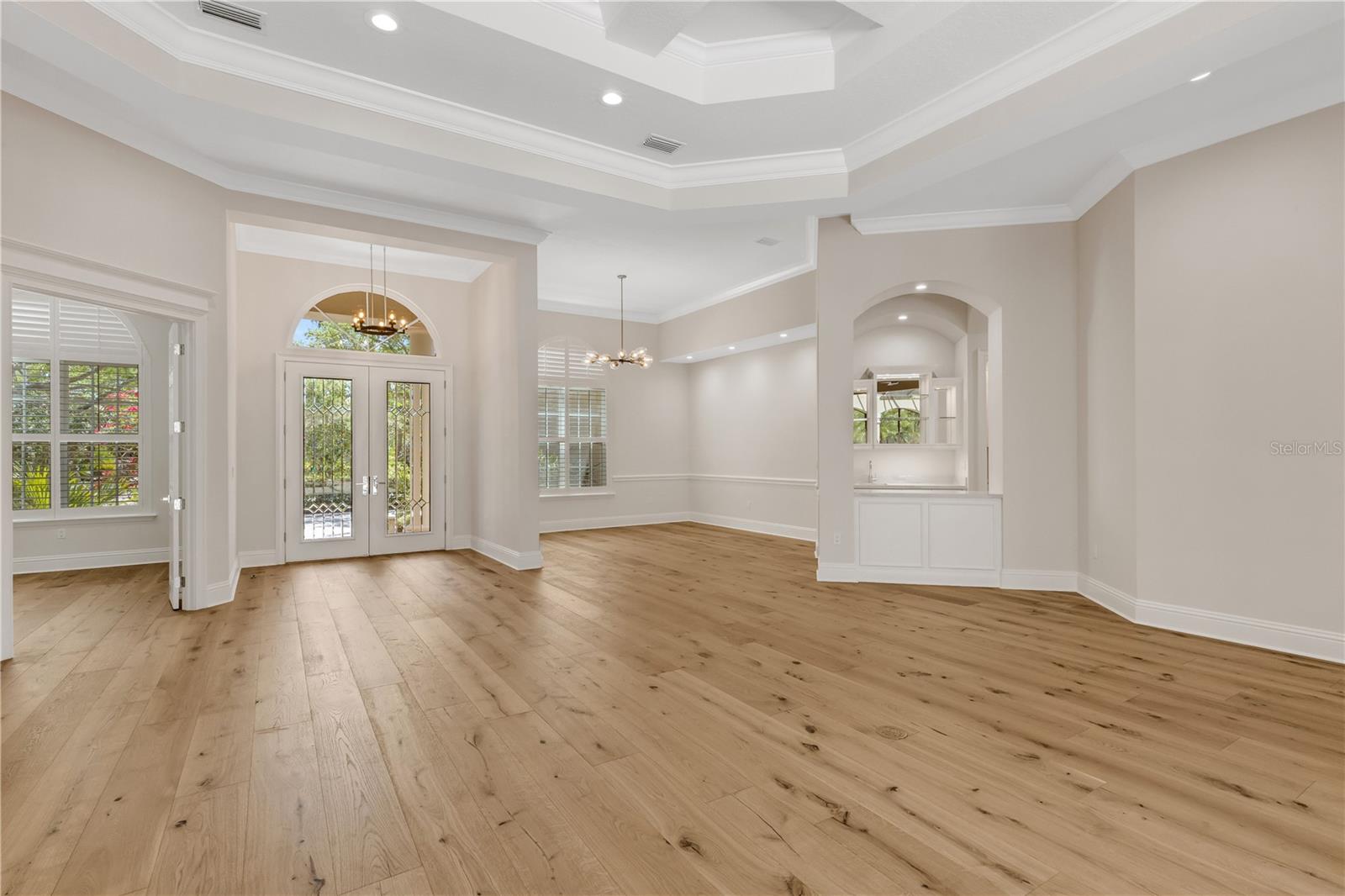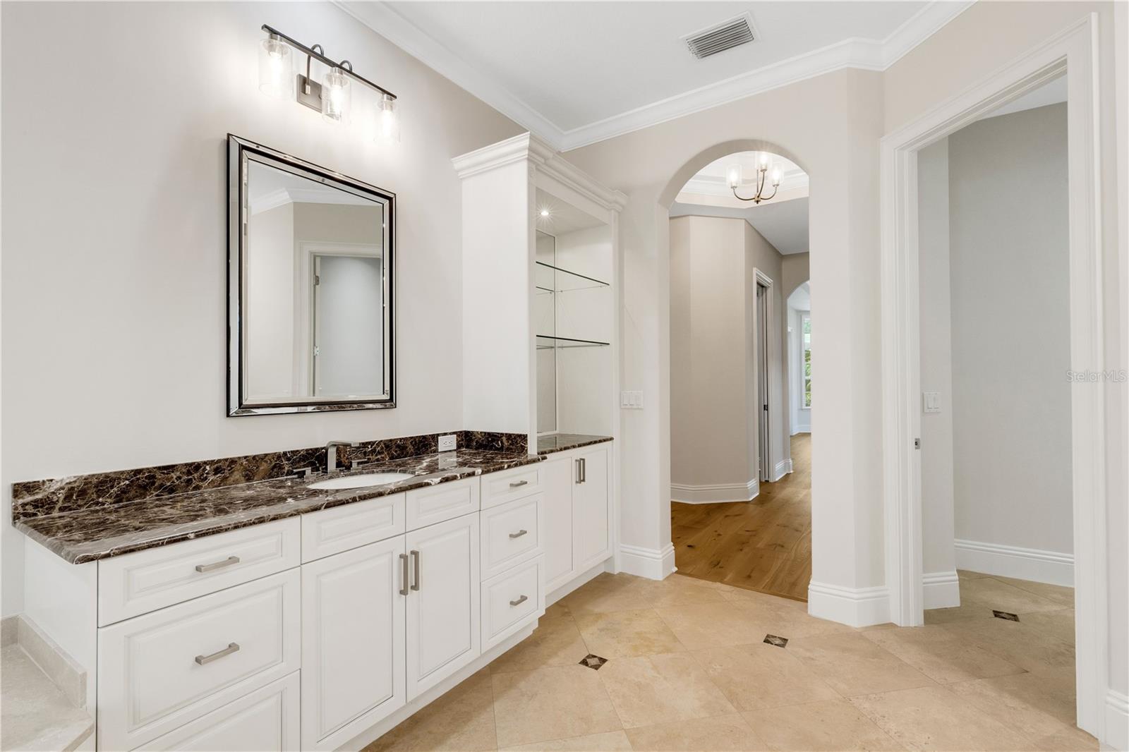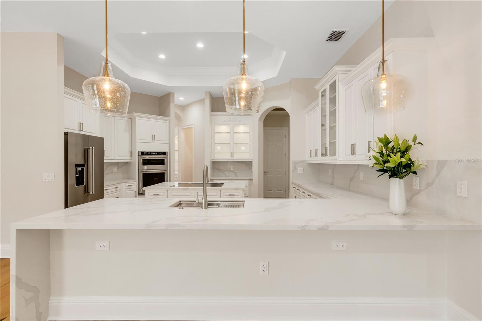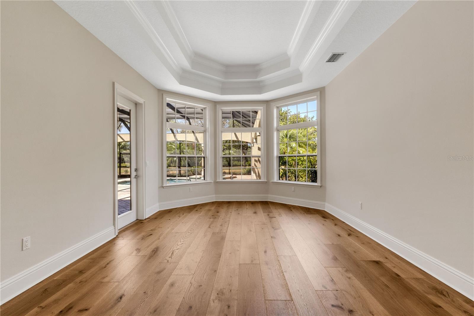 Beautifully updated home in the coveted Founders Club! Featuring 3 Bedrooms, 4 Baths, Den and a flexible Bonus Room which could function as a 4th Bedroom, Game Room, Media Room, or additional Office Space. Major renovation to this home includes: Gorgeous Wood Flooring throughout, New Paint inside and out, New Light Fixtures, New Wine Room, New Baths, and a Spectacular New Kitchen, creating an Updated, Contemporary Atmosphere with a Open, Light and Bright Feel! The Kitchen is a Chef's Dream with Calcutta Gold Quartz Countertops with a Stunning Waterfall Edge, Large Island with Cooktop, Custom Cabinetry, New Kitchen Aide Appliances including Built In Wall Oven and Microwave, New Light Fixtures, Breakfast Nook, Butler's Pantry with Wet Bar, and a New Wine Closet with extra Cabinets for Storage, Wine Cooler and Beverage Cooler. Owner's Suite is nicely appointed with tranquil views of the Lake and Expansive Lanai, as well as two large Walk In Closets with Closet Organizers, and an updated Bath with Dual Vanities, Soaking Tub, Separate Shower, and Water Closet. This Impressive Home is perfect for Relaxing or Entertaining as it features a Family Gathering Room adjacent to the Kitchen, Separate Formal Living Room with Gas Fireplace, Formal Dining Room, Open Floor Plan, Split Bedroom Plan, and Pocket Sliding Glass Doors that open to the Stunning Lanai with Heated Pool and Spa, Covered Outdoor Living Area, and Outdoor Kitchen, all overlooking Lush Landscaping and Lake View. Other High End touches include Crown Molding, Tray and Coffered Ceilings, a beautifully updated Laundry Room, and a Large Side Entry 3 Car Garage with extra storage. Enjoy the Florida Lifestyle in the gated community of The Founders Club, with it's exclusive Robert Trent Jones Jr 18-hole Championship Golf Course, Tennis/Pickle Ball Courts, Basketball Court, Fitness Center and an option to join as a Social Member which would include the Active, 24,000 sf Clubhouse with Restaurant, Bar, and Dining Patio overlooking the Gorgeous 18th Green. Prime Sarasota location with close proximity to Downtown Sarasota, St Armand's Circle, Lido and Siesta Key Beaches, University Town Center, I-75, Sarasota Airport, Medical Centers, and is also adjacent to the new Lakewood Ranch Waterside Main Street with restaurants, shopping, and Farmer's Market. This is truly an excellent opportunity to own a Move In Ready, Completely Updated Home in a Highly Desirable Area! Schedule an appointment today, this Spectacular Home will not disappoint!