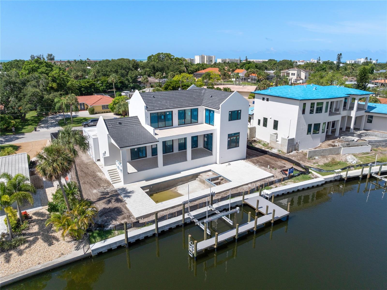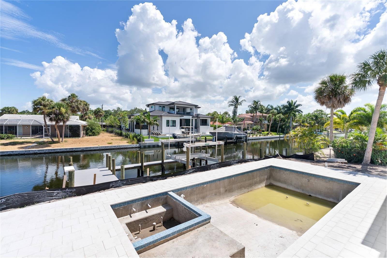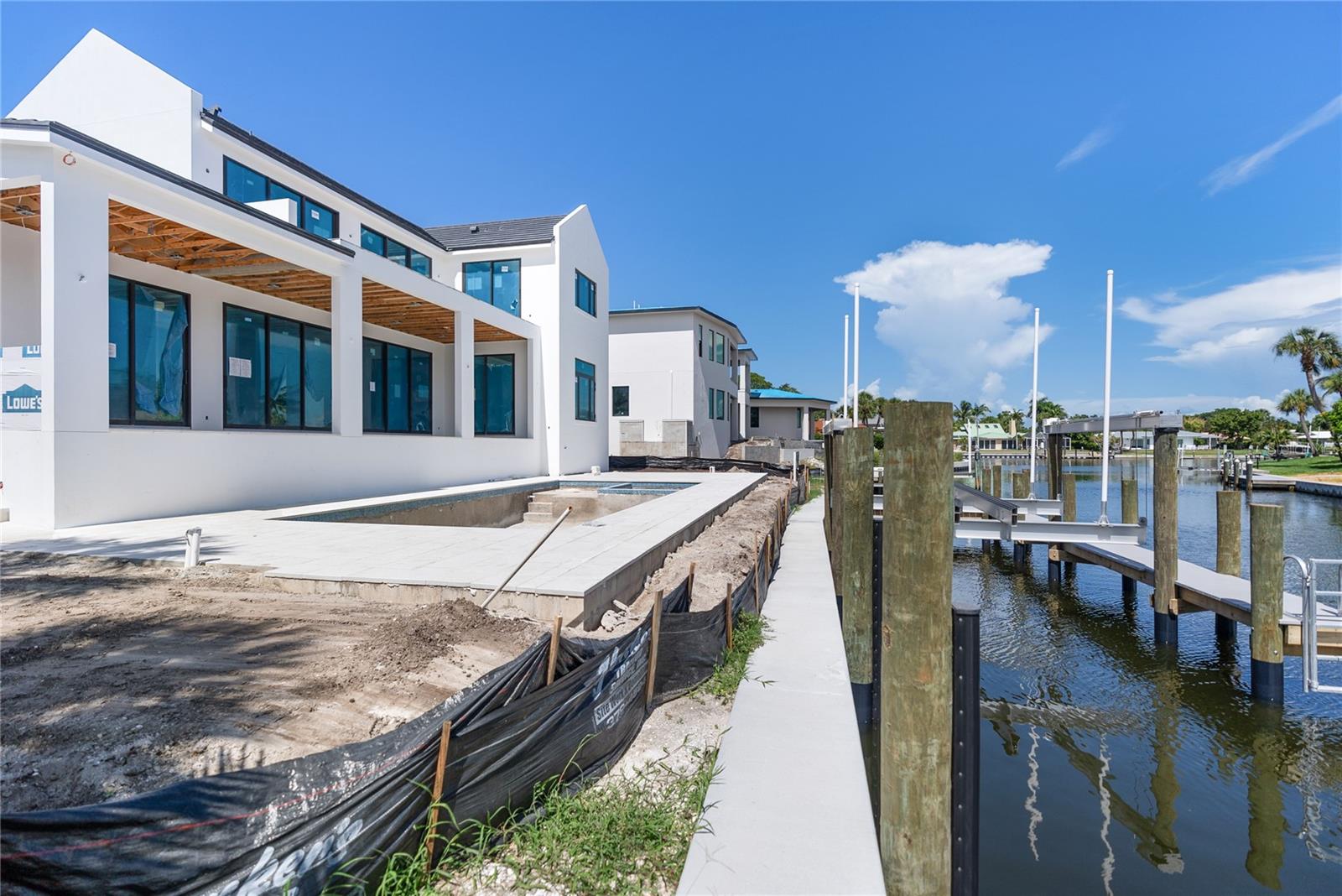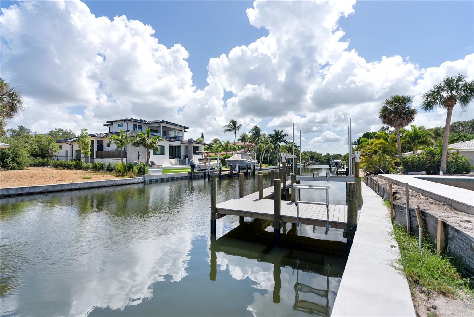 Under Construction. Tidewater Builders presents this custom, luxury waterfront property on Siesta Key's Grand Canal. With easy access to the Gulf of Mexico and just one bridge to the inter-coastal, this is a boater's dream. A new, raised seawall has been constructed along with a new boat dock and 12,000 lb boat lift. The home is ideally located in Siesta Isles, a community with 298 homes known for spacious lawns and lush, tropical landscape creating an atmosphere of a true paradise. Designed by highly respected DSDG Architects, every detail of the home has been carefully thought out. The home features a desirable layout with an open-floor plan and primary suite on the first floor. With 4 spacious bedrooms, 3 full & 2 half bathrooms, a private office, and 2 separate living areas, this 3,685 SqFt home has it all. The expansive covered lanai overlooking the salt-water pool & spa provide a seamless flow for Florida's coveted indoor-outdoor lifestyle. 927 Contento is a short walk or bike ride from Siesta Key's famous white sand beaches and local shopping & dining district, "The Village". Estimated completion time is Sept/Oct 2024. Photo renderings are for illustration purposes only and should not be used as representation of the home's precise or actual features. Call today for more information.