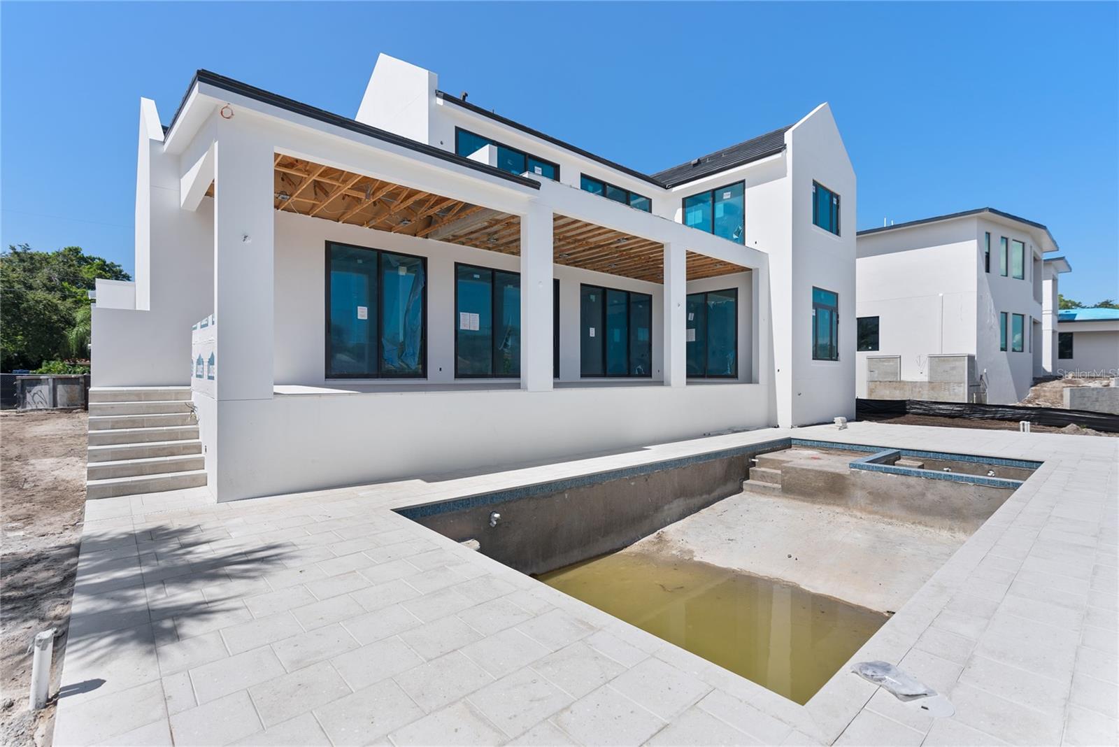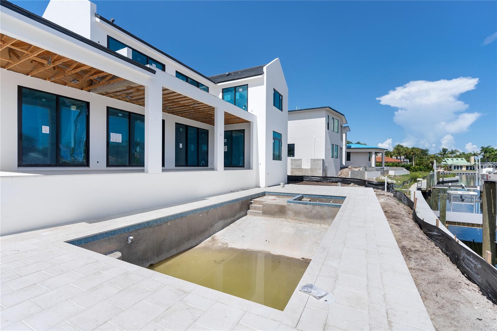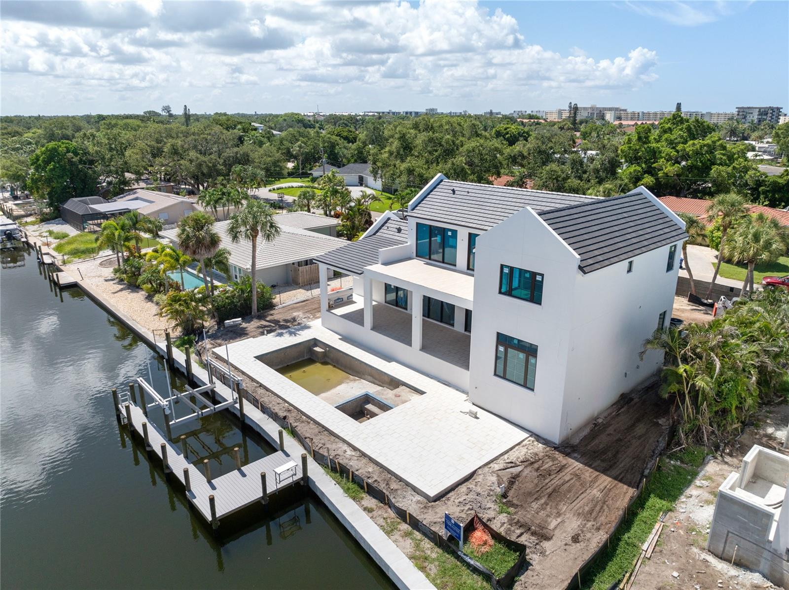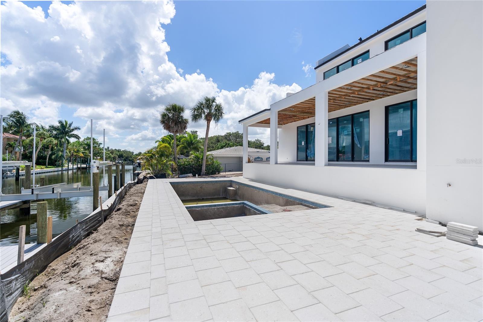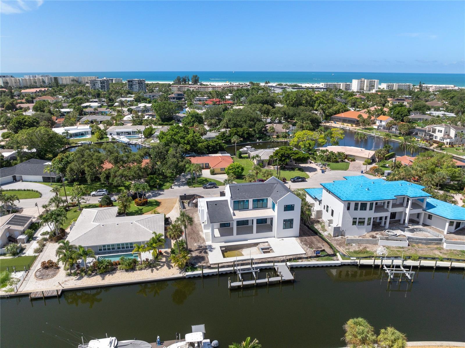 Under Construction. Tidewater Builders presents this custom, luxury waterfront property on Siesta Key's Grand Canal. With easy access to the Gulf of Mexico and just one bridge to the inter-coastal, this is a boater's dream. A new, raised seawall has been constructed along with a new boat dock and 12,000 lb boat lift. The home is ideally located in Siesta Isles, a community with 298 homes known for spacious lawns and lush, tropical landscape creating an atmosphere of a true paradise. Designed by highly respected DSDG Architects, every detail of the home has been carefully thought out. The home features a desirable layout with an open-floor plan and primary suite on the first floor. With 4 spacious bedrooms, 3 full & 2 half bathrooms, a private office, and 2 separate living areas, this 3,685 SqFt home has it all. The expansive covered lanai overlooking the salt-water pool & spa provide a seamless flow for Florida's coveted indoor-outdoor lifestyle. 927 Contento is a short walk or bike ride from Siesta Key's famous white sand beaches and local shopping & dining district, "The Village". Estimated completion time is Sept/Oct 2024. Photo renderings are for illustration purposes only and should not be used as representation of the home's precise or actual features. Call today for more information.