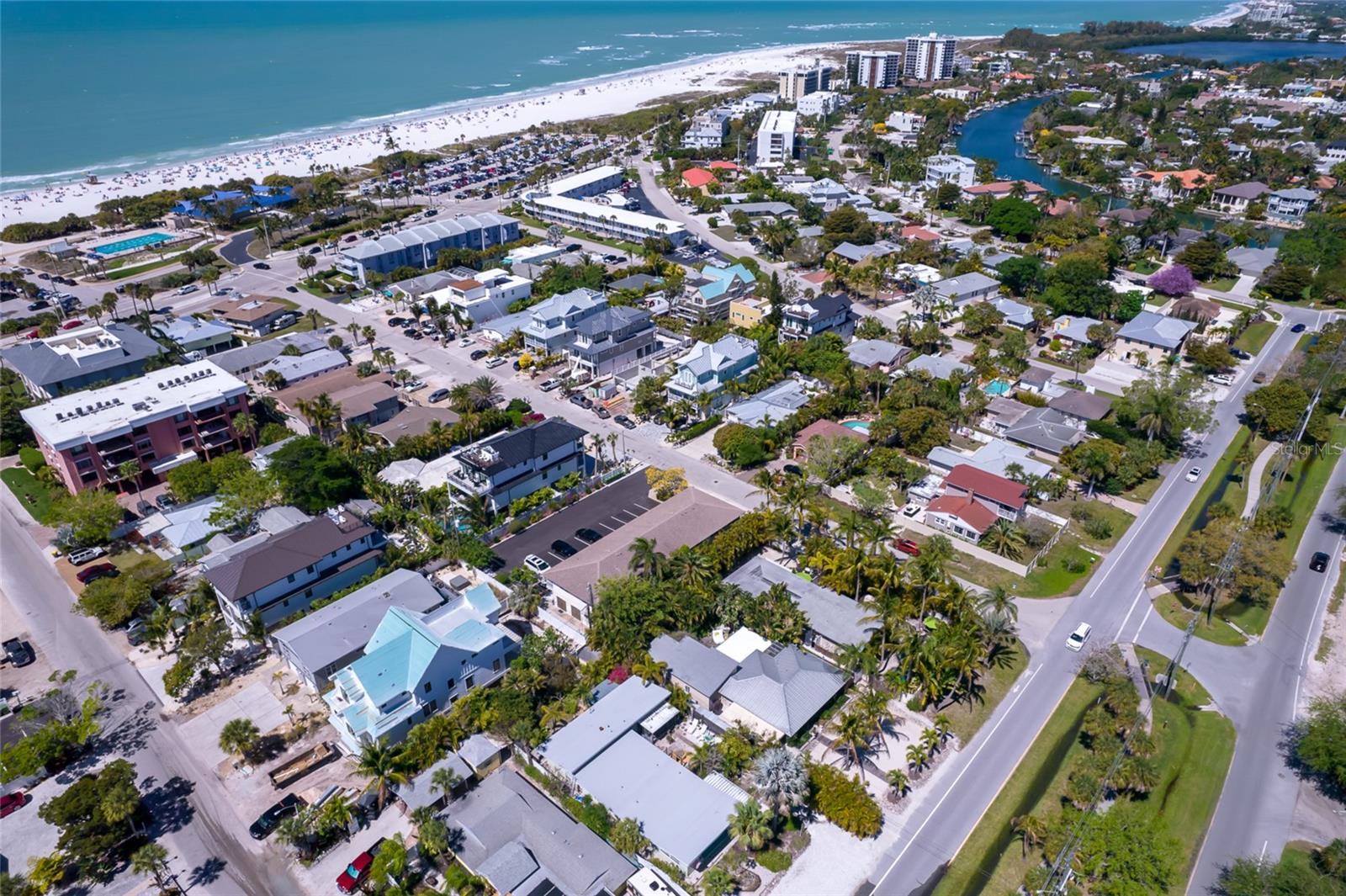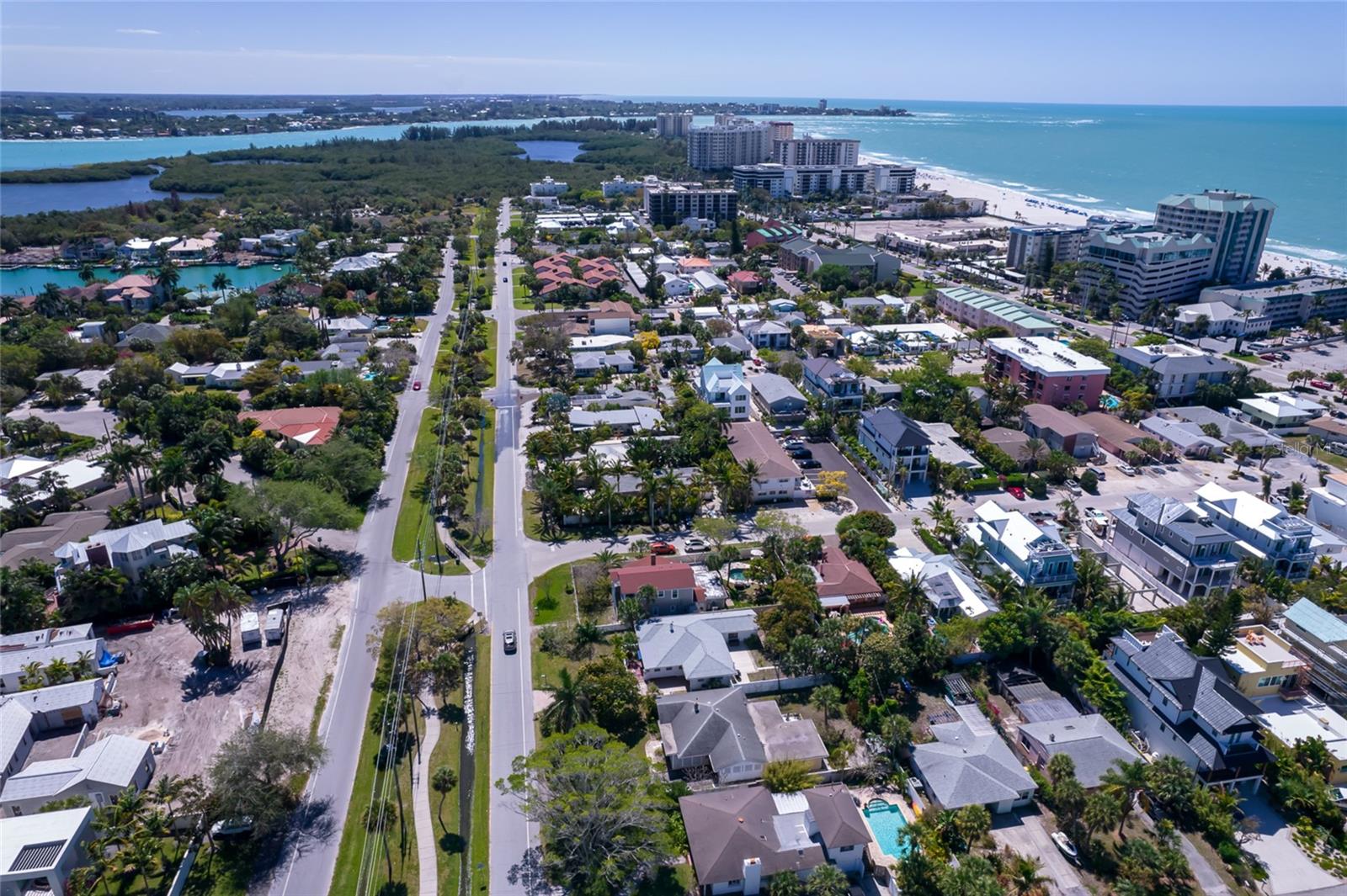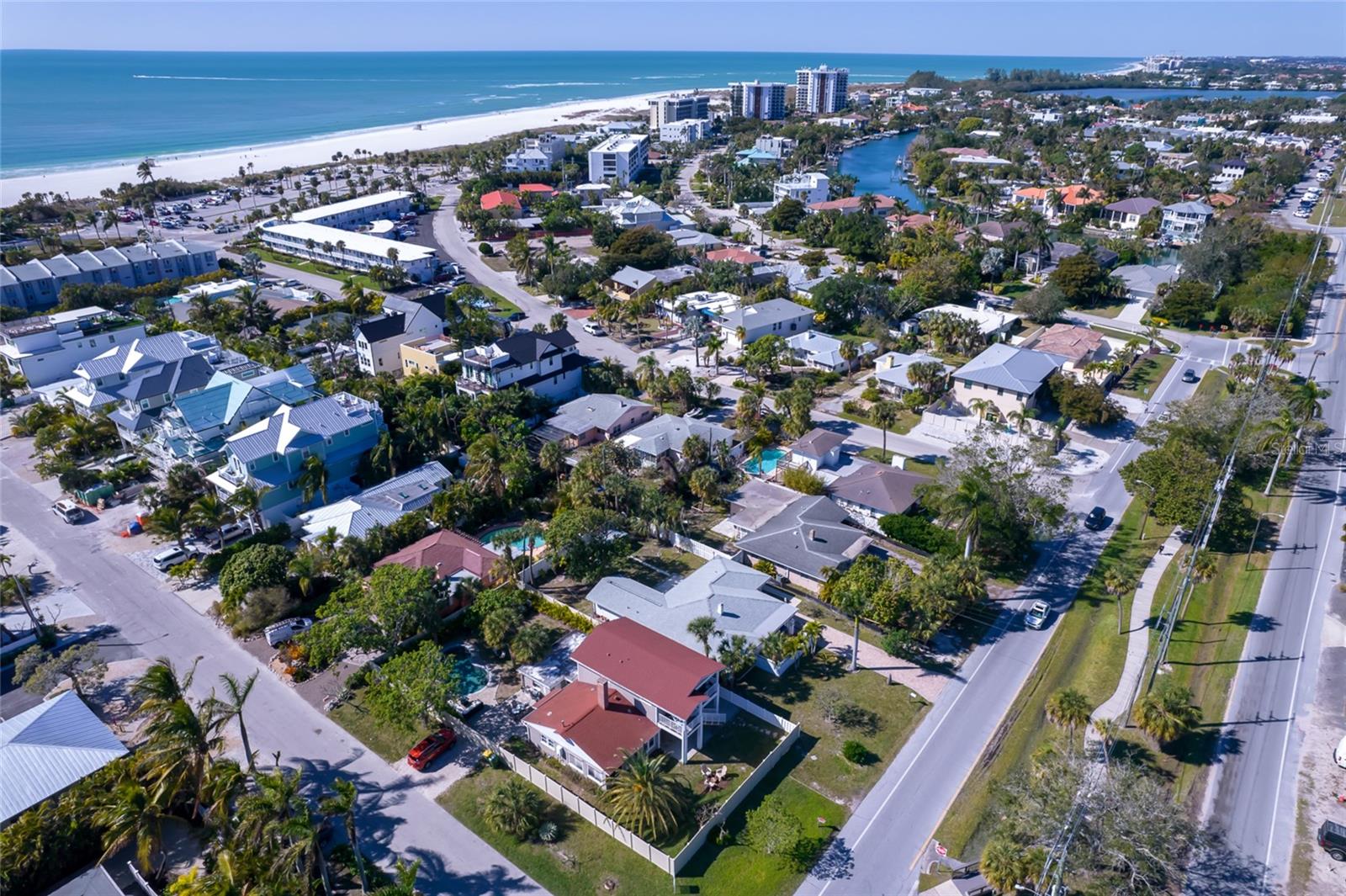 Walk and bike to one of Florida’s most beautiful beaches, Sarasota’s Lido Key beach and the famous St. Armands Circle where you can find a mix of casual and fine dining, boutiques, entertainment, and shopping! Charming midcentury renovated and fully furnished pool home is located just a minute walk to the warm waters of the Gulf of Mexico. Mature tropical trees and plants surround this 4-bedroom 3 bath paradise. Located on the first floor are 3-bedrooms and 2 baths. Accessed via a breezeway with its own separate exterior entrance are guest quarters with a private, separate entrance, 1-bedroom, living area, bathroom with shower, and a washer/dryer. The mother-in-law suit can be used completelt separately on the main part of the home, balcony gives your guests a place to hang out and enjoy their own quiet space. New floors, kitchen and bathrooms on the ground floor, AC from 2021. The charming eat-in kitchen is directly off the back yard near the in-ground pool and new patio (2023). Take a quick hop over the Ringling Bridge into downtown Sarasota and enjoy the many live theatres, ballet, opera and more world class dining, shopping, and entertainment. Enjoy endless activities. Located just a couple minutes down the Key is Ted Sperling Nature Park where you can kayak the mangrove tunnels, birding, fishing, or a picnic. Continue south just a minute and you will find another gem, South Lido Public Beach. If cycling is your thing head north into Longboat and you are sure to see fellow cycling enthusiasts on the scenic bike path. This is a beach home, perfect investment property or both - live on the maln floor, rent the upstairs or vice vers. Options are limitless and the beach is just down the block…