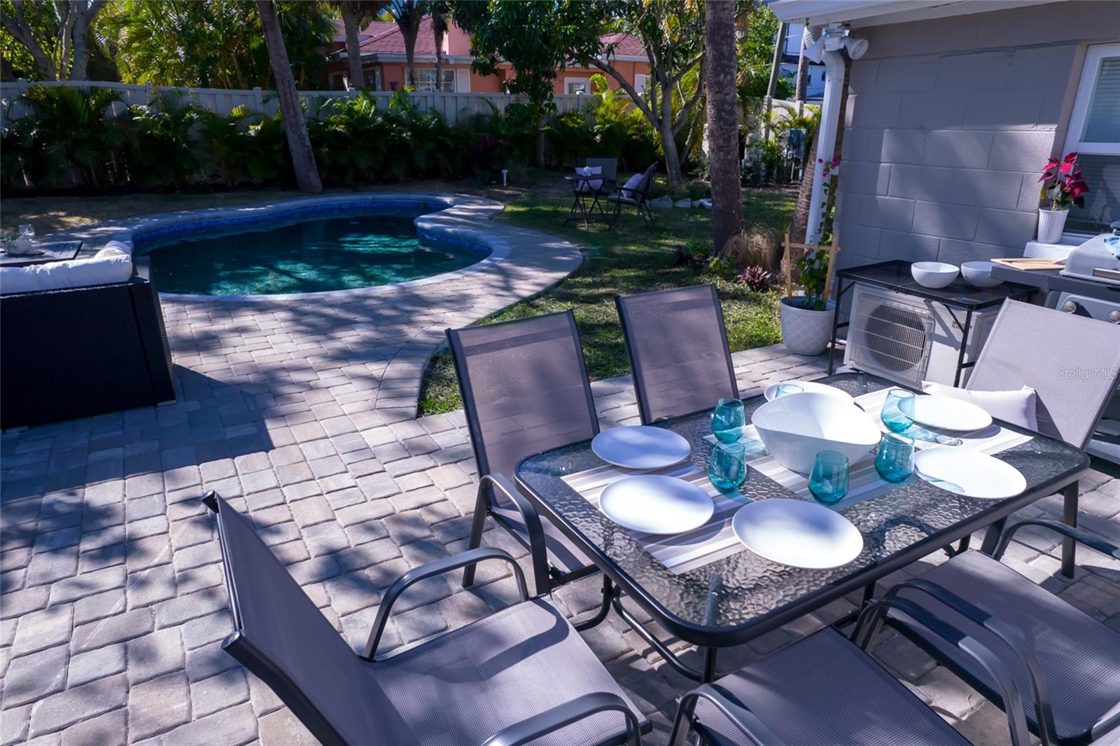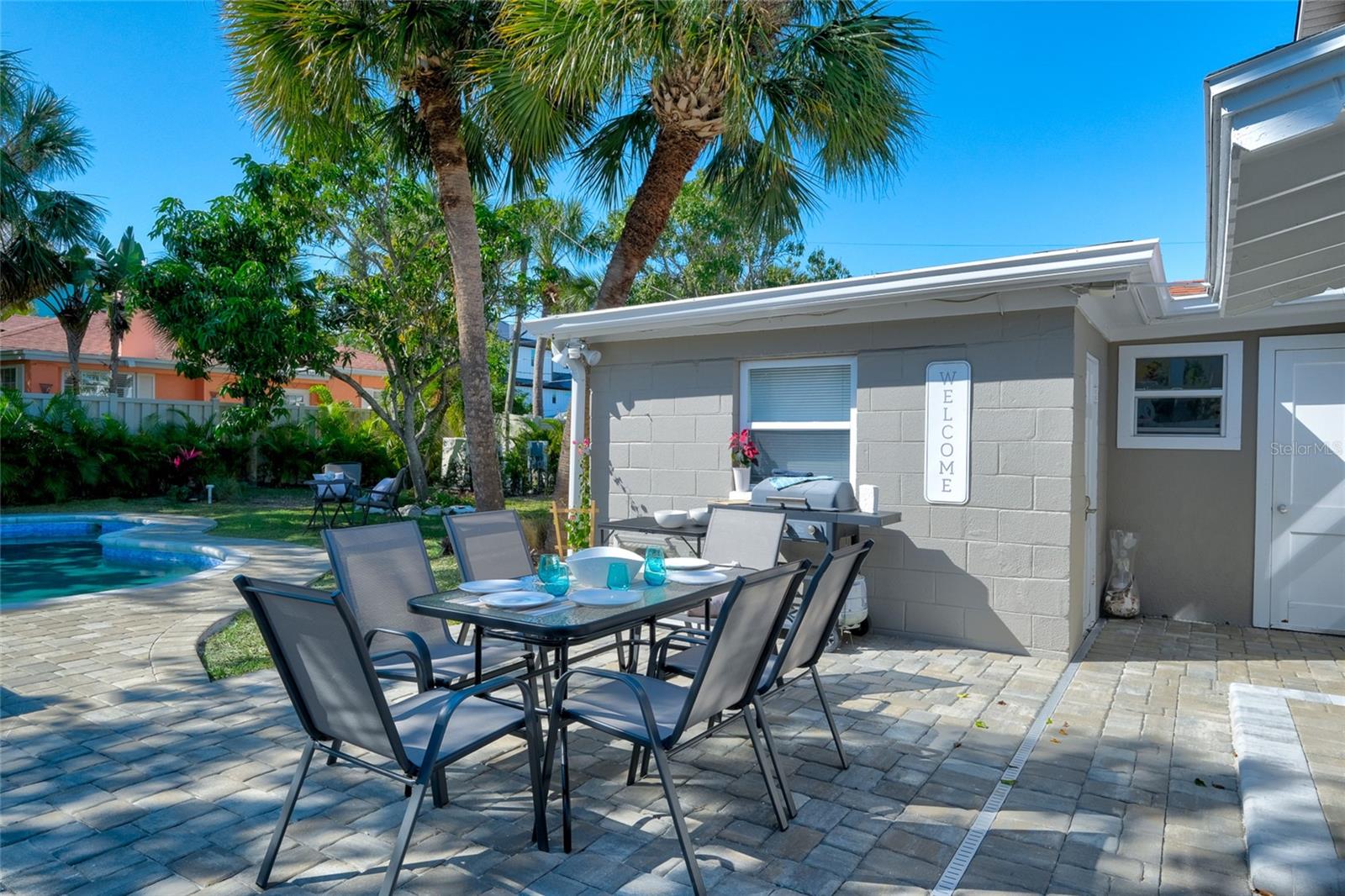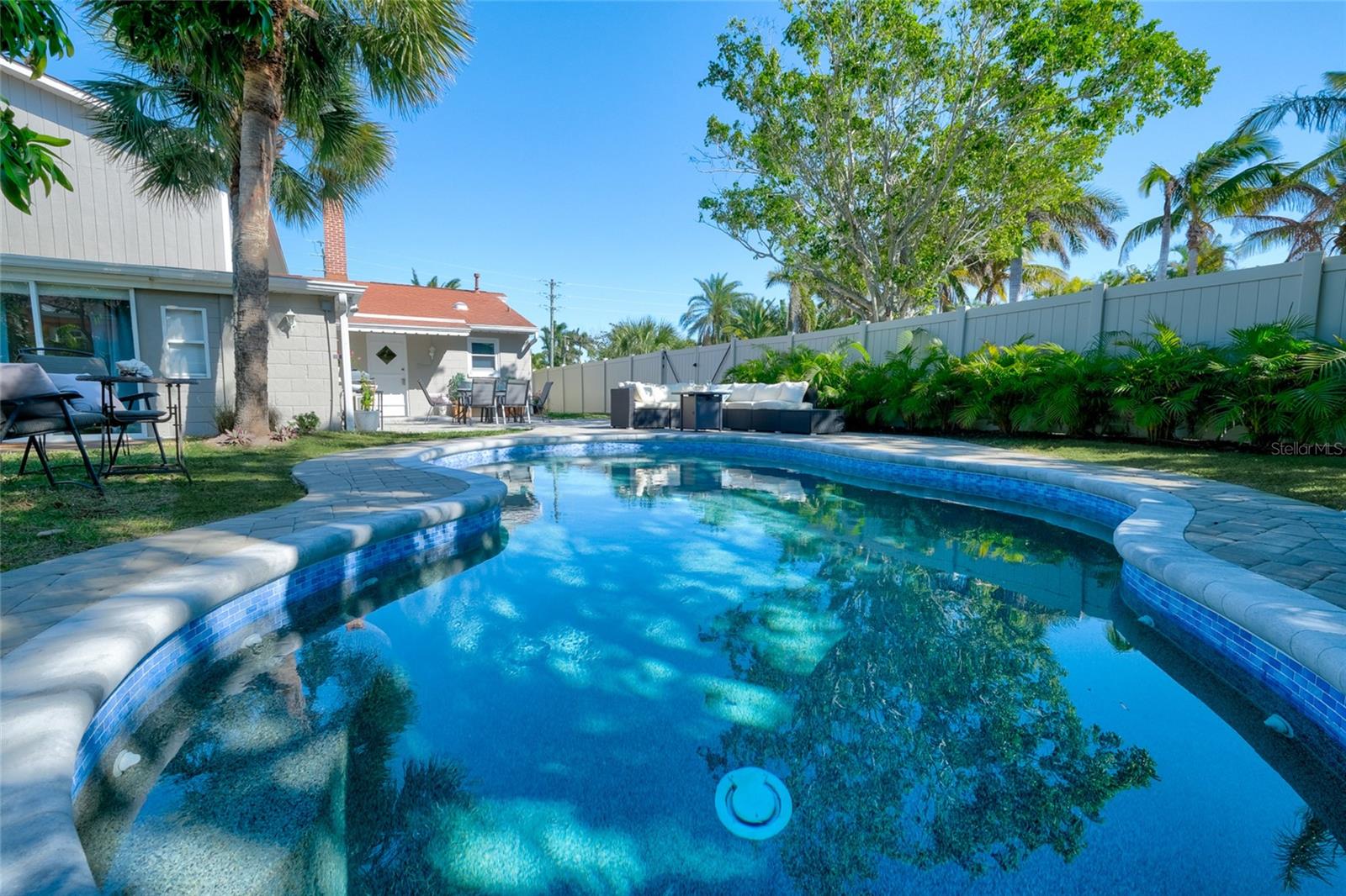 Walk and bike to one of Florida’s most beautiful beaches, Sarasota’s Lido Key beach and the famous St. Armands Circle where you can find a mix of casual and fine dining, boutiques, entertainment, and shopping! Charming midcentury renovated and fully furnished pool home is located just a minute walk to the warm waters of the Gulf of Mexico. Mature tropical trees and plants surround this 4-bedroom 3 bath paradise. Located on the first floor are 3-bedrooms and 2 baths. Accessed via a breezeway with its own separate exterior entrance are guest quarters with a private, separate entrance, 1-bedroom, living area, bathroom with shower, and a washer/dryer. The mother-in-law suit can be used completelt separately on the main part of the home, balcony gives your guests a place to hang out and enjoy their own quiet space. New floors, kitchen and bathrooms on the ground floor, AC from 2021. The charming eat-in kitchen is directly off the back yard near the in-ground pool and new patio (2023). Take a quick hop over the Ringling Bridge into downtown Sarasota and enjoy the many live theatres, ballet, opera and more world class dining, shopping, and entertainment. Enjoy endless activities. Located just a couple minutes down the Key is Ted Sperling Nature Park where you can kayak the mangrove tunnels, birding, fishing, or a picnic. Continue south just a minute and you will find another gem, South Lido Public Beach. If cycling is your thing head north into Longboat and you are sure to see fellow cycling enthusiasts on the scenic bike path. This is a beach home, perfect investment property or both - live on the maln floor, rent the upstairs or vice vers. Options are limitless and the beach is just down the block…