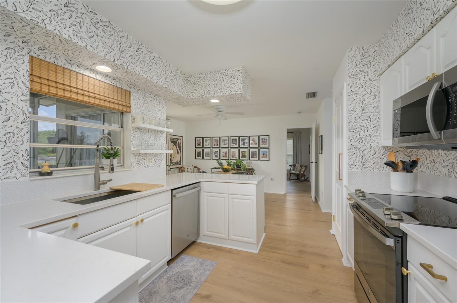 So close to the culture of Sarasota and yet a safe 30 ft above sea level. The beach is minutes away, but this home is safely elevated! Envision yourself enjoying life on the Gulf coast in the Woods of Whitfield! With nearly new roof, flooring and appliances, 7313 Connecticut offers an exquisite living experience like no other. First driving through the community you will notice 40 foot front setbacks through out the community. And homes are a minimum of 1400 sq ft! No fences or hedges in the front! And, no commercial vehicles unless completed located with the garage or carport. Then as you enter the home, you'll be captivated by the elegant luxury vinyl flooring throughout and unique feature walls. Split plan bedrooms provide privacy. The ensuite Master also features a walk in closet. The open kitchen has been tastefully updated with stainless steel appliances, modernized cabinetry, and gorgeous quartz countertops. The kitchen, nook and dining room also provide easy access to the covered, screened outdoor living space. Want to expand your social contacts? The voluntary Homeowner Association provides community events and dining access to SaraBay Country Club. The Woods of Whitfield community is located just minutes away from world-renowned beaches, fine dining establishments, and high-end shopping, and the art, entertainment and culture of Sarasota! This home offers the best of both worlds - a peaceful sanctuary in a prime location. And for peace of mind, the roof and hot water heater tank have been replaced. Come take a look! Call us for the complete lists of upgrades. All Done for You...just come and enjoy!