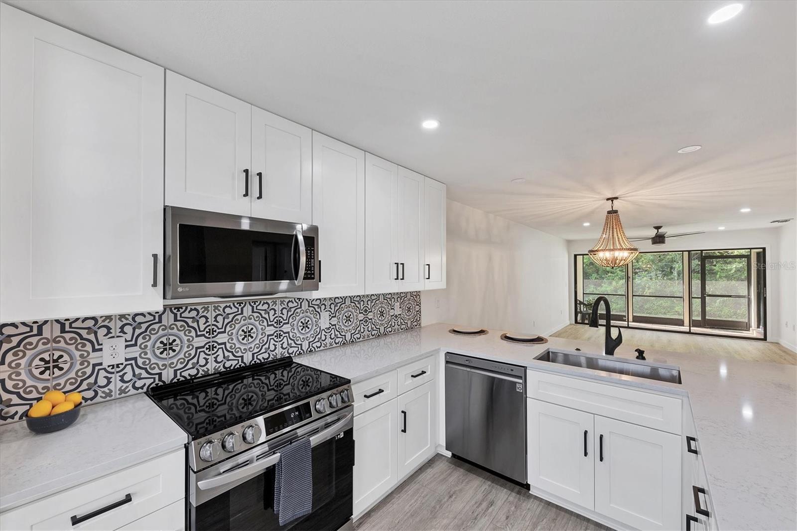 Priced to sell! SOOOOO beautiful inside! What a surprise when you open the door to this seemingly simple facade. You will be treated to stunning updates at every turn. LG Stainless appliances grace the open kitchen with beautiful quartz countertops and custom cabinetry. Both bathrooms have been updated and are fresh, inviting, light and bright. This home lives large and offers a wonderful split-plan layout with the Owner's retreat opening up to the private screened back porch. There are many special features including finished attic space which is a huge bonus for extra storage. AC is new in 2022 and the association takes care of the roof, exterior and pest control. Enjoy an easy going life in this incredible location. The Glen is a hidden gem of a community. It is in an excellent location and close all that Sarasota has to offer. Enjoy a cool splash in the community pool and then retreat to your luxurious sanctuary. You're close to many great restaurants, shops, grocery stores, the new 27 hole Bobby Jones golf course as well as our amazing beaches. This one is definitely worth a visit and completely ready for you to move in. These high-end finishes don't come along at this price very often. Don't let it get away!