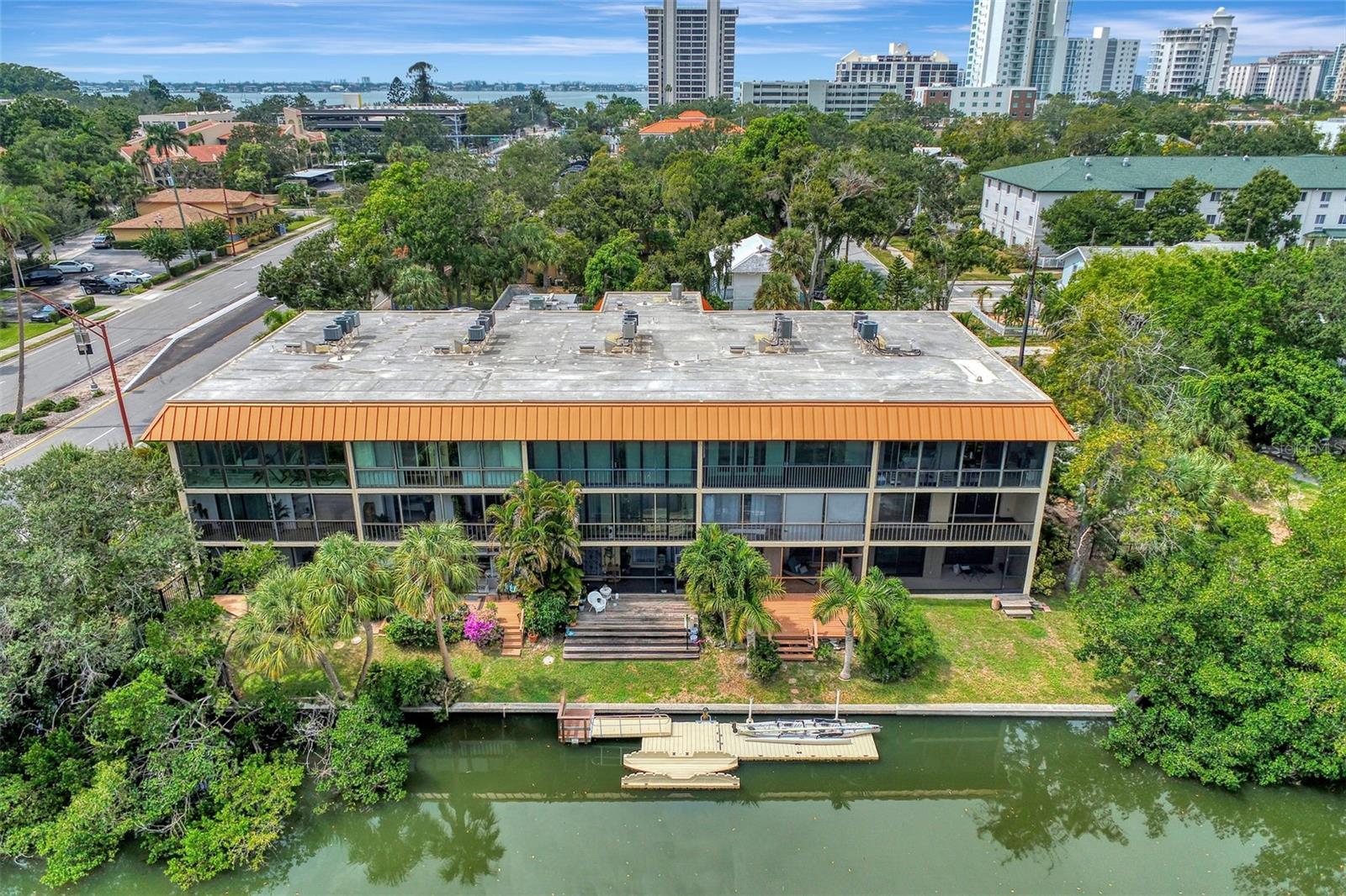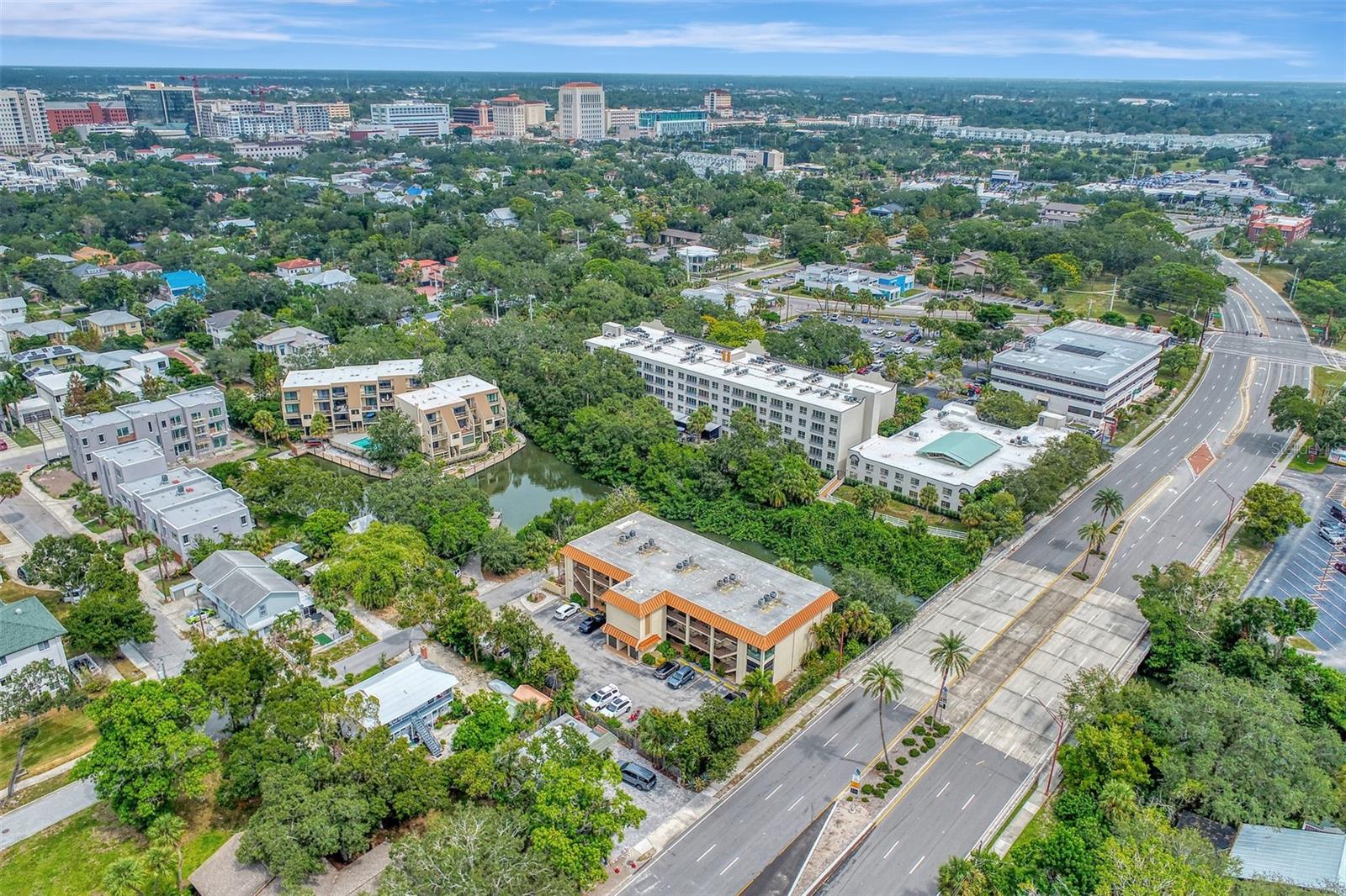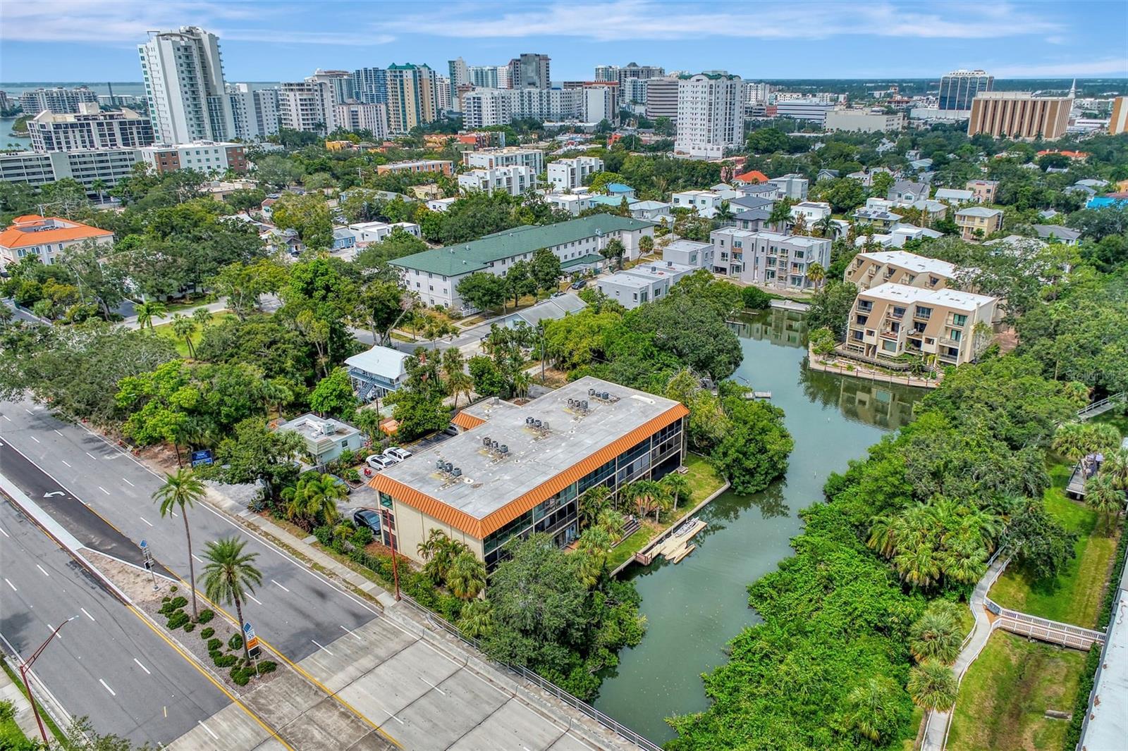 Stunning, WATERFRONT, 2 bedroom, 2 bathroom, first floor condo located in the highly desired Bayou House Apts community in the vibrant and artistic downtown Sarasota area, come see all of the amazing features! Inside you will find an airy open concept floorplan and easy-to-clean ceramic tile flooring throughout. First as you walk in is the fully equipped kitchen featuring wooden cabinets with pull out drawers & plenty of storage space, high end stainless steel appliances and granite countertops! The kitchen leads to the dining and living rooms both with an immaculate water view out of the screened-in lanai where you are greeted each morning by nesting Blue Herons, pelicans soaring by and the perfect spot for watching the sunset in the evenings and relaxing with family, enjoy a tranquil kayak experience right outside your back door! A split bedroom floorplan takes you to the first bedroom which has unique built-in bookshelves, a large closet and a full sized bathroom with shower/tub combo! The Owners suite is the ultimate retreat with a breathtaking view of the bayou off the private lanai entrance, a massive walk-in closet and an attached en-suite with updated countertops/vanity and custom tiled walk-in shower! Bayou House Apts is a peaceful and active community, just a short walk to the local farmers market, theatres, the library and the beautiful Selby Gardens, only 4 miles form the sandy Lido Key beaches and all of the popular shopping & dining you could want!