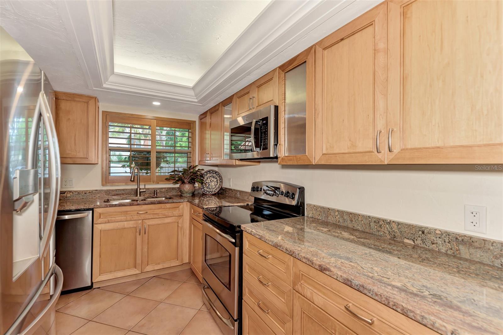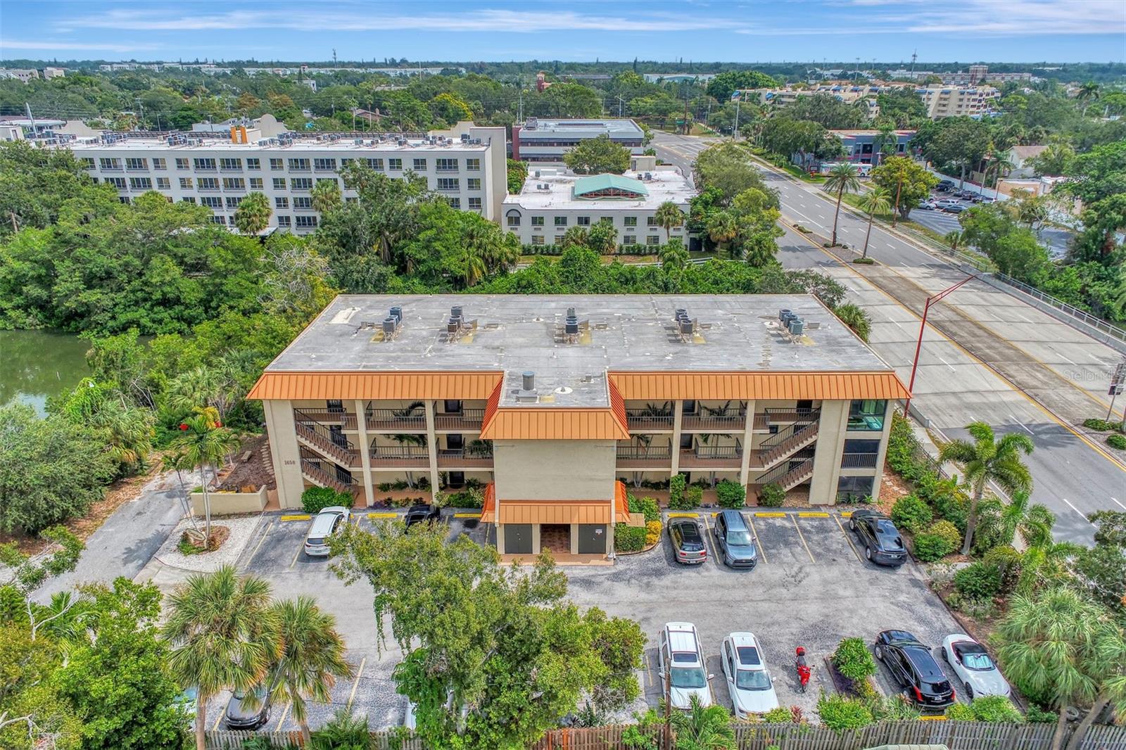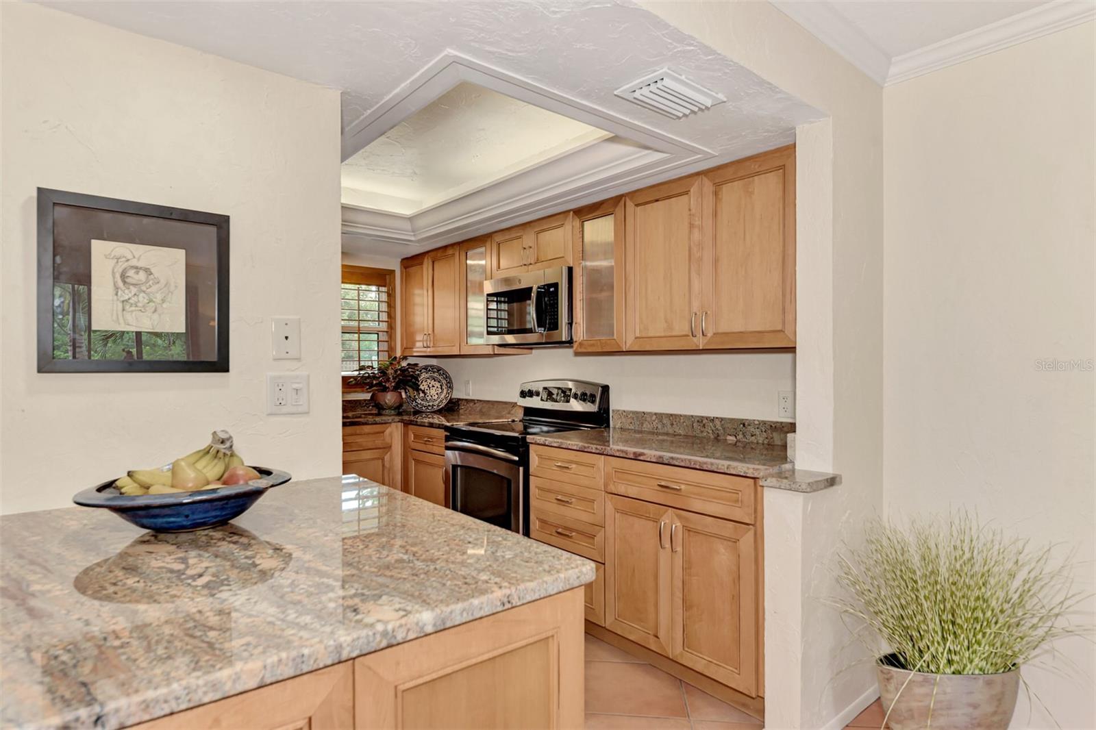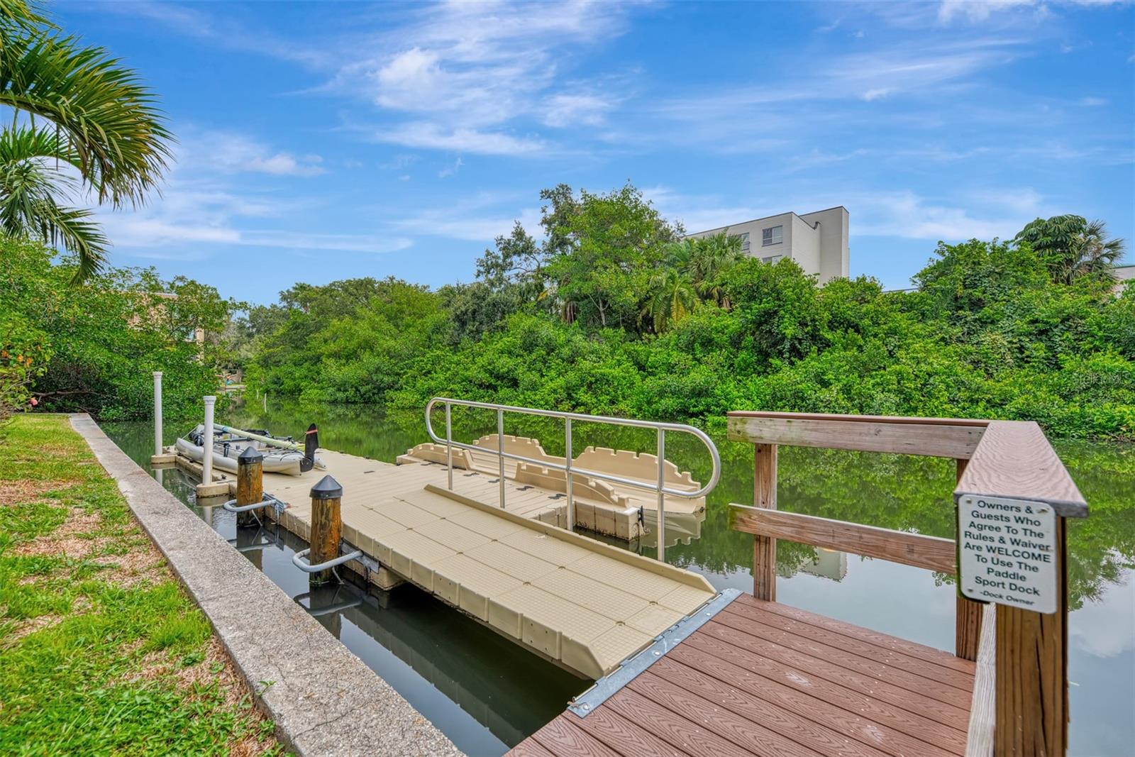 Stunning, WATERFRONT, 2 bedroom, 2 bathroom, first floor condo located in the highly desired Bayou House Apts community in the vibrant and artistic downtown Sarasota area, come see all of the amazing features! Inside you will find an airy open concept floorplan and easy-to-clean ceramic tile flooring throughout. First as you walk in is the fully equipped kitchen featuring wooden cabinets with pull out drawers & plenty of storage space, high end stainless steel appliances and granite countertops! The kitchen leads to the dining and living rooms both with an immaculate water view out of the screened-in lanai where you are greeted each morning by nesting Blue Herons, pelicans soaring by and the perfect spot for watching the sunset in the evenings and relaxing with family, enjoy a tranquil kayak experience right outside your back door! A split bedroom floorplan takes you to the first bedroom which has unique built-in bookshelves, a large closet and a full sized bathroom with shower/tub combo! The Owners suite is the ultimate retreat with a breathtaking view of the bayou off the private lanai entrance, a massive walk-in closet and an attached en-suite with updated countertops/vanity and custom tiled walk-in shower! Bayou House Apts is a peaceful and active community, just a short walk to the local farmers market, theatres, the library and the beautiful Selby Gardens, only 4 miles form the sandy Lido Key beaches and all of the popular shopping & dining you could want!