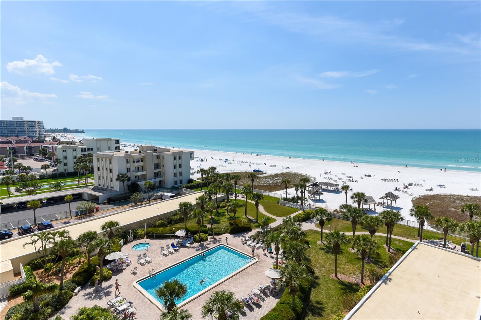 Tired of the long winters? Need a tranquil beach hideaway? Just want to get away to paradise? This spectacular 9th floor Penthouse on Siesta Key’s famous Crescent Beach is waiting for you. Full Gulf of Mexico views ensure you’ll never miss a sunset from this stunning contemporary property. Enjoy your morning coffee or evening beverage while taking in the shimmering crystal sand and majestic blue water from Point of Rocks to the northern tip of Crescent Beach. This spacious one bedroom, one bath unit is the perfect beach getaway. An open floorplan allows you to take in the views from the living room, dining room and large, open kitchen. This unit’s generous size allows you to add a sleeper sofa or Murphy bed for family and friends. The oversized walk-in pantry can be reimagined as a second bath with entry from the hallway. Just bring your bathing suit and sunglasses as this beautiful unit is sold turnkey furnished. A new impact door was just installed and new refrigerator and 2023 microwave. The unit has impact windows, 2021 AC, and a new bedroom window and new glass railing to replace the current railing has been ordered. In the bedroom you will find a 2023 king-sized bed, plenty of custom closet space and updated bathroom with walk-in shower. Your paradise is located in Horizons West, a gulf-to-bay community consisting of over 7-acres. The gulf side has 300 feet of deeded beach access, beach cabanas, a beachside pool and spa, and beachside grilling areas. There is a second pool adjacent to the community clubhouse. Explore the grounds and private intracoastal waterway park with day dock that is perfect for picnicking, fishing or just watching boats cruise by. Bayside is the perfect place to launch your kayaks and paddle boards to explore the mangroves. Use Siesta Key’s free trolley to partake in the Key’s exceptional dining, entertainment, and shopping. Come visit carefree living on Siesta Key!
