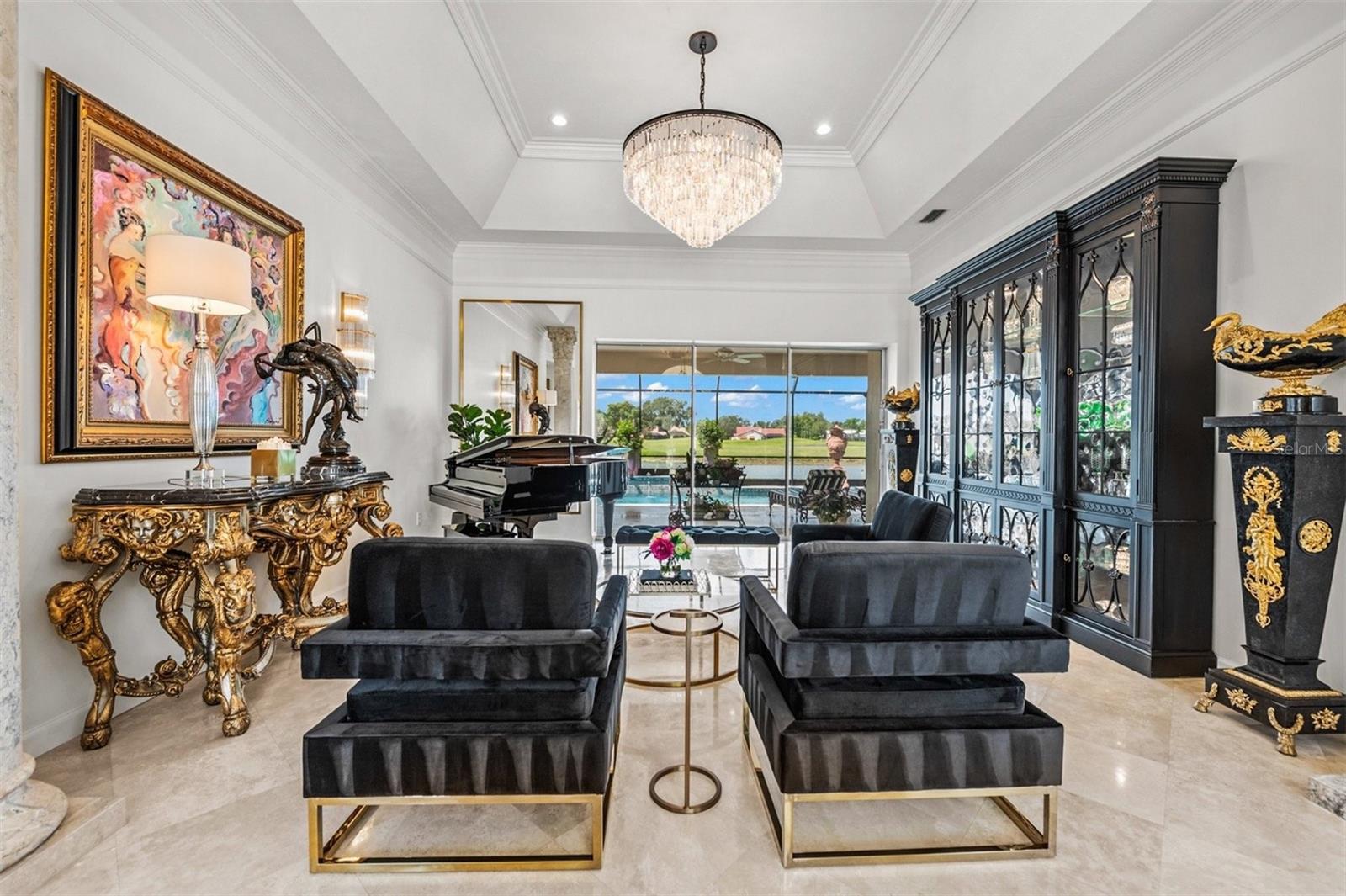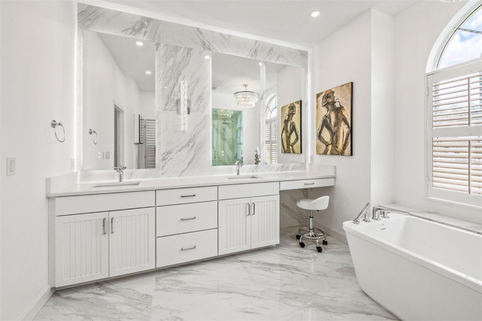****LAKE VIEW*** 4th. Bedroom could be turned into Office/Den...$350 k in Renovations!!! Stunning Modern Estate that has been updated professionally! Its charm and character exemplify Luxury. Upon entering you will be Wowed by the Craftsmanship of this Home. Formal-Living has Vaulted ceiling and large Pillars on each side of the room that makes a Statement. All Glass Sliding pocket doors disappear into the walls, extends your living space, leading out to the brand-new screened Lanai with Extra-large Lap Pool with a waterfall Spa that overlooks the Lake and Golf course! Making this a great entertaining home that extends your living space to the outdoors. Every room has been renovated tastefully .... Move in ready! New bathrooms with marble floors to the ceiling. Custom soft closed cabinets and drawers. Back lighted mirrors in the bathrooms ...Bedrooms have en-suite bathrooms. The Den/Office being converted into a 4th. bedroom, also has en-suite bathroom. Double doors lead into the Extra-large Master bedroom with his and her closets. The Master bath has double sinks and a stand-alone soaking tub. Frame-less all glass shower with rain head shower faucets. All sliding doors are pocket doors that disappear into the walls that creates more space for entertaining. Overlooking the Lake and 8th. Fairway with Endless Views of the Ted McAnlis designed 72 championship golf course. Separate Dining area that leads into this amazing Chef kitchen with plenty of Custom solid wood cabinet space with Quartz counters with custom lighting. Eat in kitchen that leads into the Family-room with Bar-area that has a Wine Fridge and Ice maker. Family room has sliding pocket doors that opens up to your extended living area. This is a Perfect home for Entertaining. Laundry-room has new Whirlpool Washer and Dryer. Custom cabinets with Quartz from the floor to the ceiling. Two new efficiency hot water tanks. All new alarm system for the home. All new LED lighting throughout with New Flooring . All new Landscaping and LED out-doors lighting and irrigation. Very quiet cul-de-sac street. Completely painted inside . Extra-large Garage with storage cabinets and work bench area. Every-room has been redesigned to create an elegant and intimate space for entertaining! Misty Creek is set on 350 acres of preserve with lakes and hammock forest. Gated Golf Course Community with 24 hr. Guard on duty....Home built by Christner Brothers in Sarasota.
