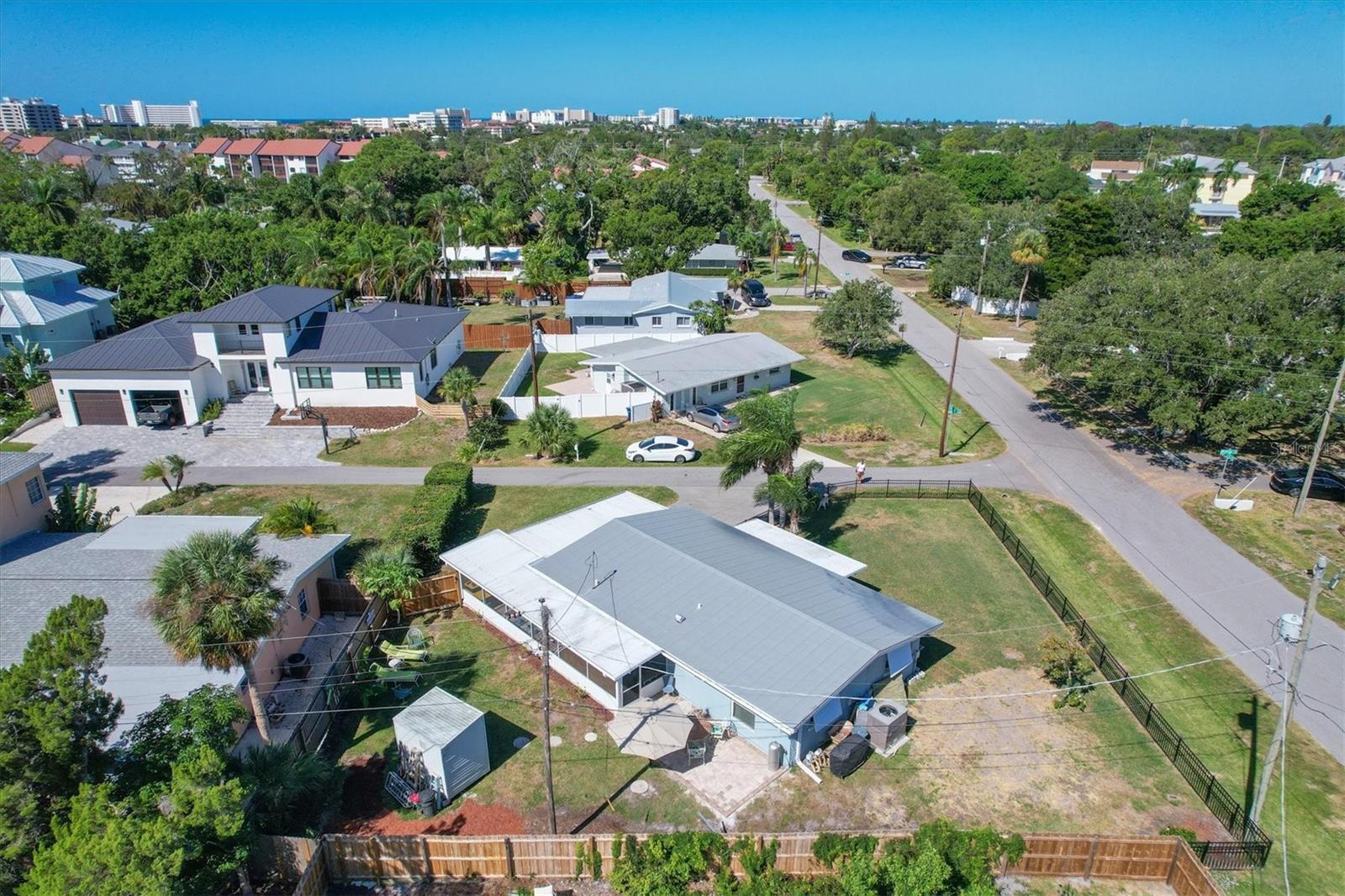 Florida Style Bungalow with Steel Roof and Bermuda Shutters that performed very well during the past storms. Location, Location, Location - most will agree that these are the first 3 rules in Real Estate... West of the Trail. Walk to the Beach from Bay View Acres, where you can enjoy friendly neighborhood living with NO HOA fees! Use this beautiful home as an investment, or fulfill your dream of living in a cottage by the sea today! This 3 bedroom/2 bath home features at its heart a thoughtfully updated gourmet Kitchen completed in the Summer of 2023... as well as having the feel of old Florida, including Terrazzo flooring, screened front and back lanais, and a super short distance to Siesta Key while including upgrades such as brand new Glass-front appliances, a disposal, and an oven that practically does it FOR you (proofs bread, broils, dehydrates, and has an air fryer!). The fully fenced, spacious yard, located in the bird sanctuary of Bayview Acres has ceiling fans in each of the bedrooms, impact slider to the huge rear lanai that includes a shade-out blind, the elusive SPLIT floorplan, and a storage shed for all those items we can't do without. The kitchen, heart of the home, showcases the appliances and workspace with gorgeous sea-blue glass subway tile backsplash and a granite composite sink which doesn't show splashes. This corner lot with custom fencing will make the perfect, primary residence, second home or investment property. You Can Live Anywhere - Let Me Show You Where!! Come HOME to 1686 Chapline Lane! This home had no flooding issues over recent storms...