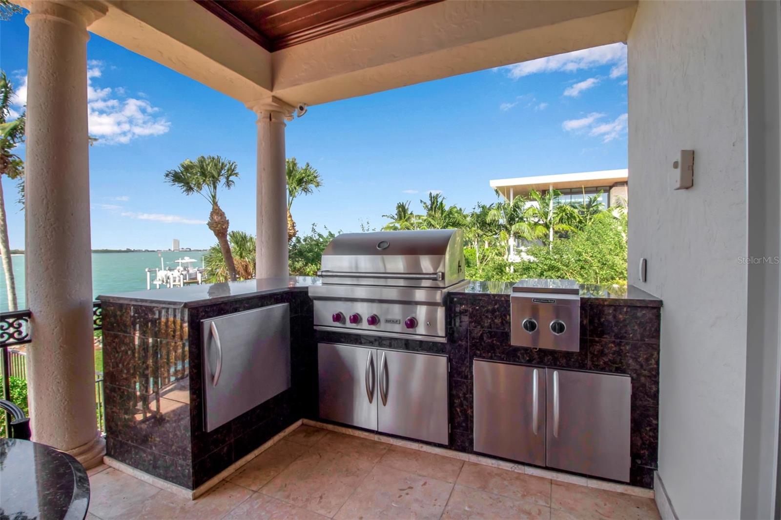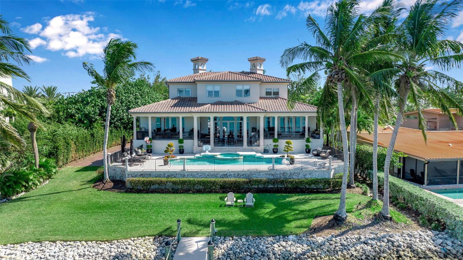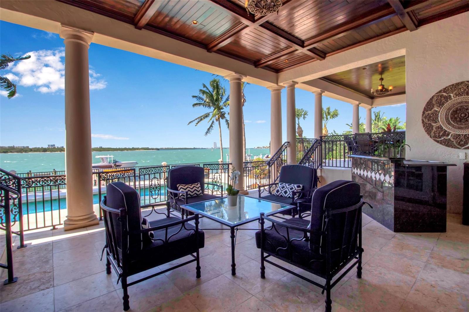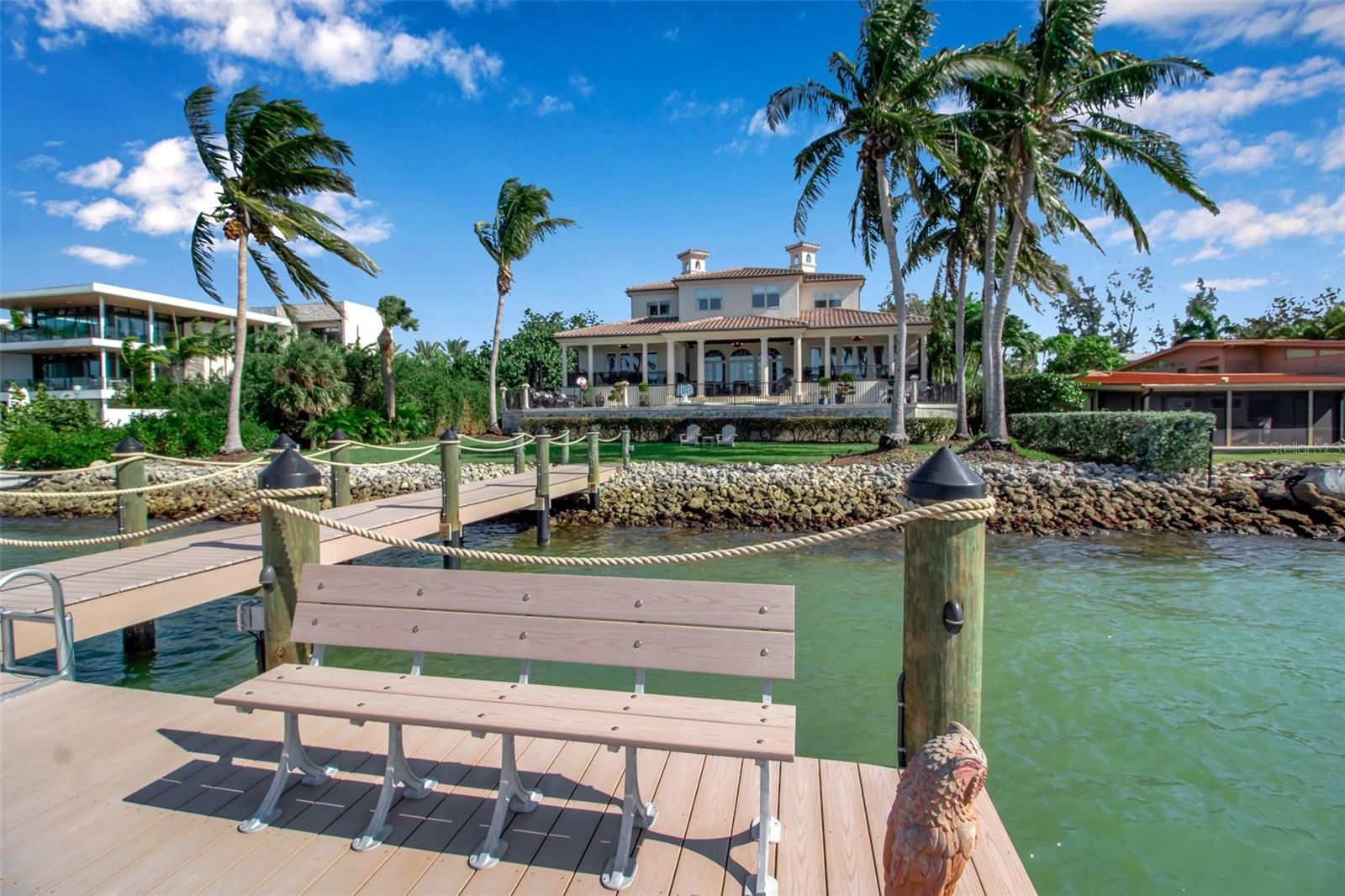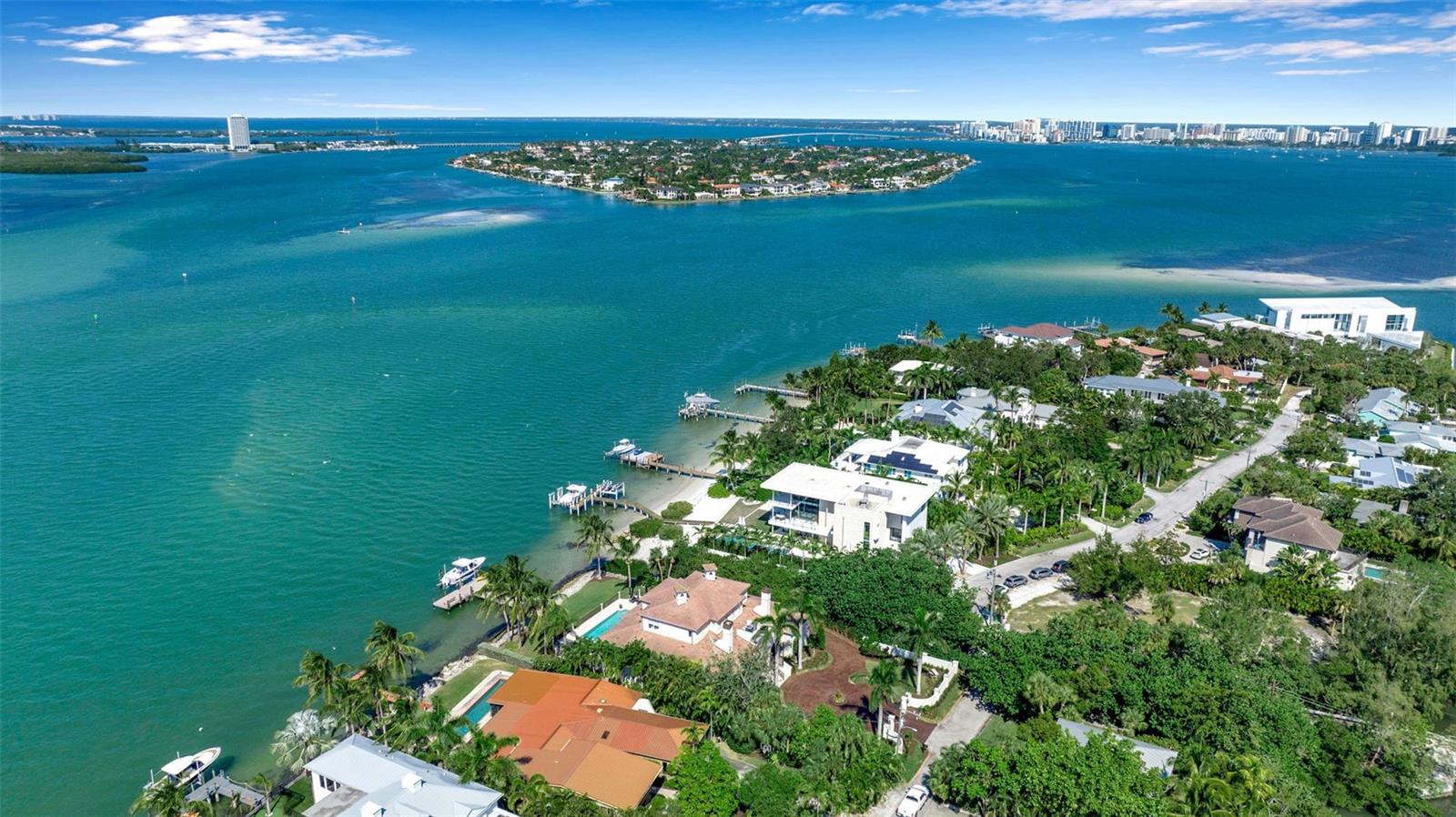 PRICE IMPROVEMENT on this exquisite home also, now being offered fully furnished, ensuring a seamless transition for new owners and providing instant enjoyment to create memories for a lifetime. Sellers have taken proactive measures by contracting and paying for a new roof, even though the existing roof has an estimated 5-7 years of life remaining. This enhancement provides added peace of mind and long term value. Furthermore, the home has shown no signs of water intrusion following the recent tropical storm, highlighting its robust construction. Welcome to your sanctuary on the famous Siesta Key, located on Big Pass at the entrance to the Gulf of Mexico. This extraordinary timeless residence offers beach access, boat dock, and, of course, those incredible views that never go out of style. You can have it all in this exquisite home! This home is the epitome of "Location! Location! Location!" Brilliantly designed and lavishly appointed, it showcases the very best of everything as far as the eye can see. Imagine instant enjoyment, with coveted sunrises, sunsets, and the serenity of the island living in this exquisite waterfront estate on the coveted north end of Siesta Key steps away from beach access. Step inside and be greeted by the stunning vistas you've only dreamed about, and embrace every day with the 5-star lifestyle that Sarasota and her islands are famous for, including the world-renowned crystal white sands of Siesta Beach. The open-concept living area, complete with high-end appliances, offers the perfect space for intimate gatherings and grand entertaining. A private elevator whisks you between levels, while high ceilings and floor-to-ceiling impact glass windows frame an expansive 180-degree view that seems to go on forever. Every generous bedroom—five in total—has an ensuite bathroom, allowing you and your guests to bask in natural light and gorgeous views from every corner of the home. Waterfront properties like 3500 Bayou Louise Lane are truly a rarity, making this a once-in-a-lifetime opportunity to acquire a true gem. One of Architect Thorning Little's most transcendent designs, this home boasts a distinctive symmetry, beautifully balanced by the ever-changing canvas of Big Pass and the Gulf of Mexico. Nearly every room offers breathtaking views of the Caribbean turquoise waters, providing a perfect escape from the hustle and bustle of the outside world. With over $3 million in upgrades since 2020, no detail has been overlooked. Bespoke finishes adorn every room, including Italian plaster, book-matched Calcutta Gold slab marble, hand-carved limestone, a hand-finished Clive Christian kitchen, custom-designed authentic wood floors, a Palm Beach Designer ceiling, and a custom American walnut library. Thoroughly modern and automated, the home features Lutron lighting, a hardwired camera and security system, and commercial-quality Wi-Fi in every room for seamless coverage. The amenities continue with a four-car garage, a 40x20 pool and spa, a 24K lbs. beamless boat lift, three fireplaces (outdoor, library, and living room), ample storage, two Tesla high-speed charging stations, a cellular gate call box, and Seura TV mirrors in the master and in-law bathroom suites. Programmable motorized window blinds complete the package, adding a touch of luxury and convenience to every day.