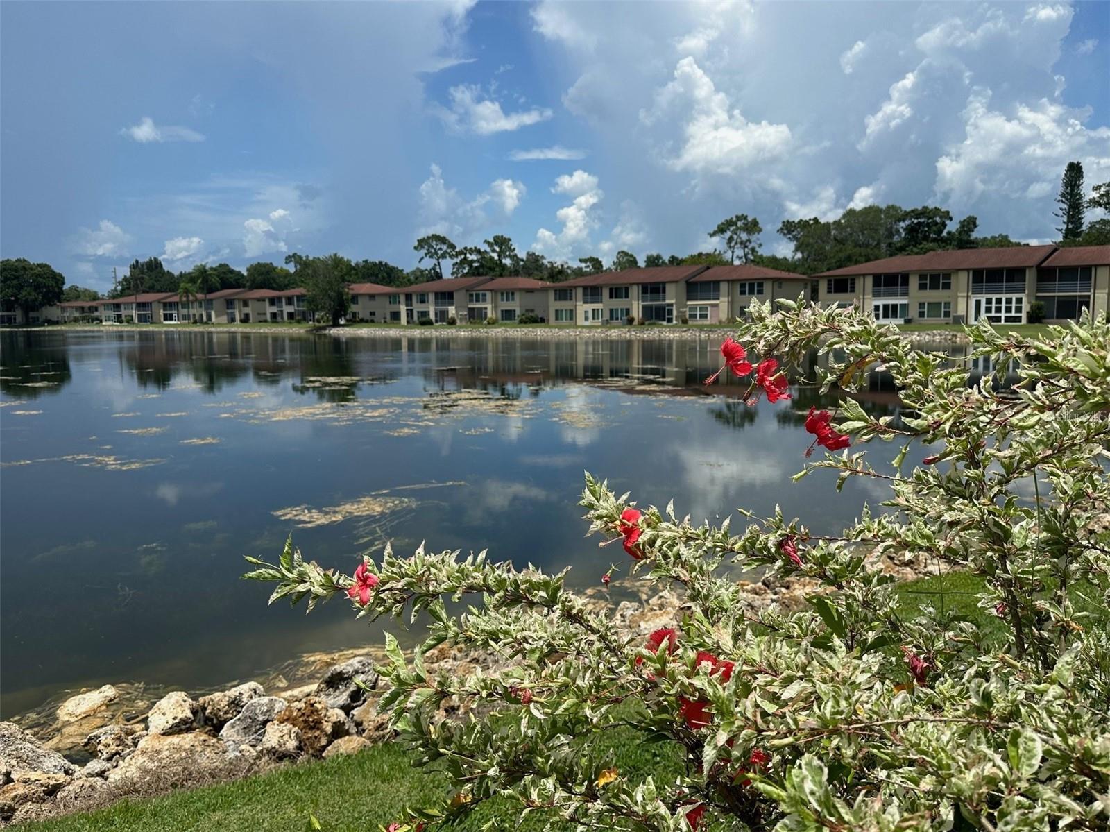 Relax on your private covered lanai overlooking this stunning serene lake in the peaceful 55+ community of Lake Tippecanoe. The open floor plan allows for views throughout the living area and the primary suite. The split plan allows for privacy between from the 2nd bedroom and bath. Approximately 7 miles from the famous Siesta Key Beach and downtown Sarasota, this charming villa is perfect for a full time residence or a 2nd vacation home. There is a beautiful lakeside community pool, shuffleboard, and a clubhouse for social gatherings. Covered parking is conveniently located outside your front door.