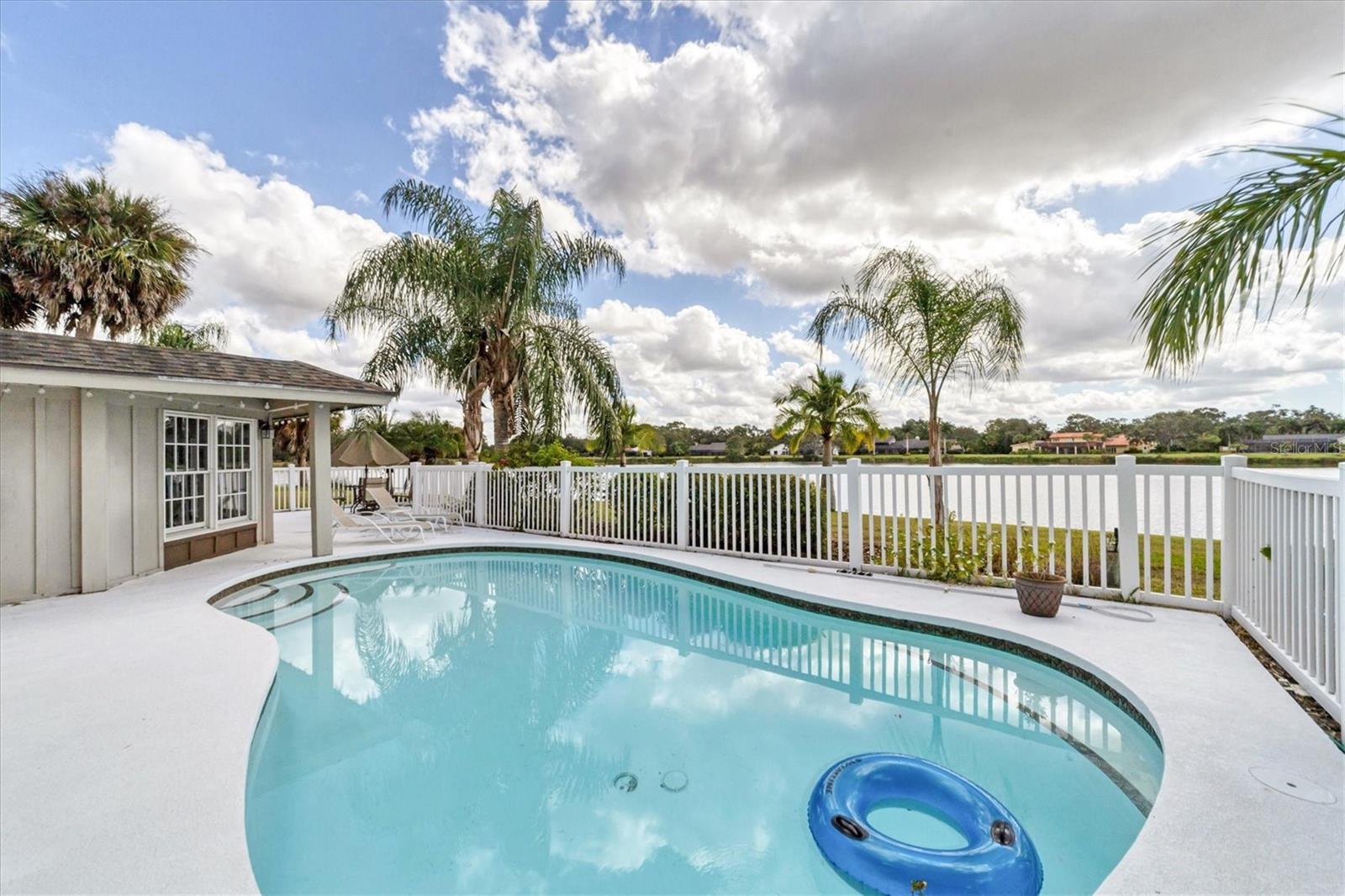Nestled within the private gated setting in one of the most coveted neighborhoods in Sarasota, gorgeous Bent Tree. You will be captivated by the breathtaking views and the stunning lake that provides a serene setting for relaxation. The pool and patio area has expansive water views awaiting your arrival each day. The perfect place for entertaining with privacy and quietness of the lake. As you step inside you'll be greeted by an impressive two-story foyer adorned with an incredible wood plank slanted ceiling. This custom home has an openness with soaring ceilings creating a sense of spaciousness and an abundance of natural light throughout. The living room boasts a fabulous wood-burning fireplace for those cozy winter evenings. The kitchen is spacious and includes an island for extra workspace and storage, a closet pantry and a desk area. The large dining area has plantation shutters and french doors to the Florida Room/Bonus Room/Office where the wall of windows provides picturesque views of the lake. You'll find 2 master suites and both of considerable size. The main floor master suite has sliders to the pool, a walk-in closet and a full bath with it's own door to the pool. The second floor master suite has his and her closets, a walk-in closet and a full bath including dual sinks, a tub and a separate shower. There is also a half bath on the first floor. The laundry room has lots of storage space and ample room for your laundry needs. This amazing home has a 2 car garage and a long driveway for your vehicles. There is a well on the property used for irrigation. Bent Tree 2 has an annual fee of only $586 with no CDD and this property is X Flood Zone. Membership at Bent Tree Golf Club is optional. An ideal location near great schools and a short commute to Siesta Key Beach, I75, Sarasota Bradenton Int'l Airport, UTC, Celery Fields, Rothenbach Park, golf courses, dining and so much more! Roof 2016, Water Heater and Pool Pump 2023. Bring your contractor if you desire another bedroom or a dedicated office - don't pass up this fantastic lot! **SELLER WILL CONSIDER ALL OFFERS!