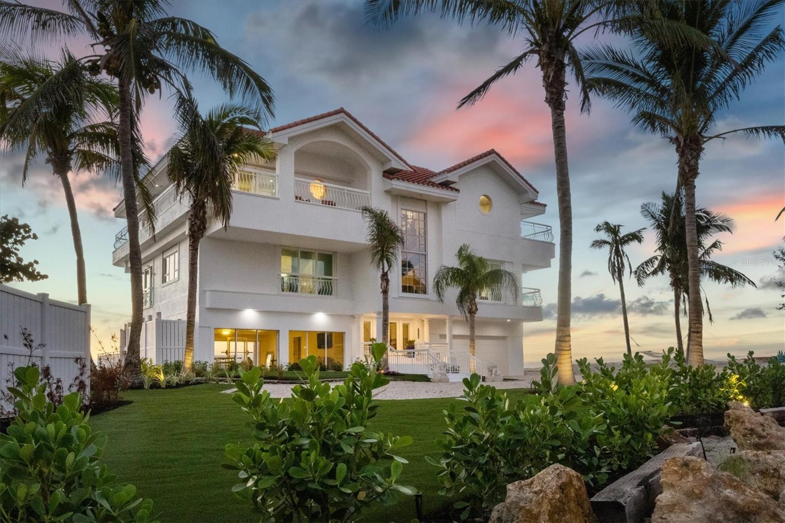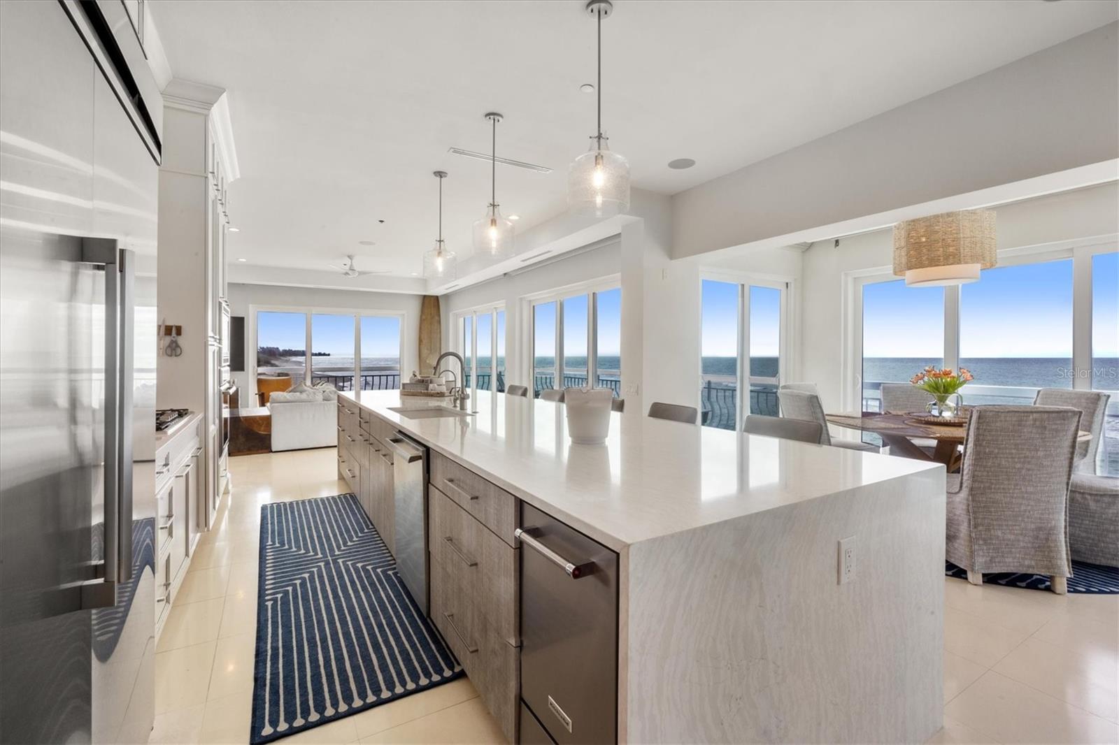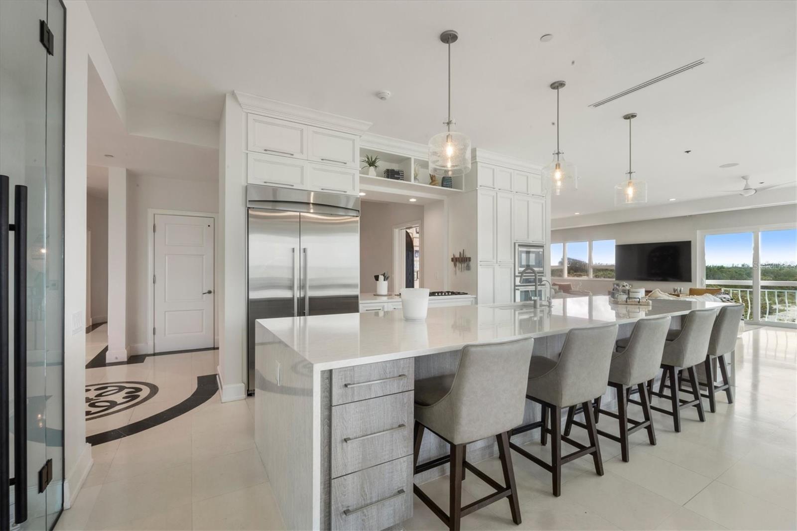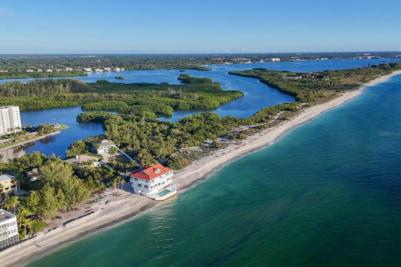 This is island living at its best on world-famous Siesta Key! Revel in unparalleled proximity to the Gulf of Mexico, as this residence places you literally on one of the best beaches in the country, where you can watch the gentle waves roll in and admire the ever-changing sunsets over the calm blue gulf water. Accessed via a private sandy road on the south end of Siesta Key, this beach house is a true island escape. Sited on a Gulf-front lot with 85 feet of frontage with pristine crystal sand beach, this residence stands as a testament to architectural significance and superior craftsmanship. Once inside, the grand staircase gives way to the expansive open floor plan revealing a living space that is both awe-inspiring and welcoming. Immerse yourself in the panoramic vistas of the Gulf of Mexico through floor-to-ceiling sliding glass doors that grace the formal living, dining, kitchen, and family rooms. The kitchen, featuring stunning cabinetry, top-of-the-line stainless steel appliances, and a long rectangular island with counter-height seating, is perfectly positioned between the formal and informal living areas to create one generous entertaining space. The wine enthusiast will love the large, lighted wine display cabinet. Finishing up the main living level is an office and a sitting area. The primary suite is an oasis and boasts tray ceilings, custom closets, and a spa-like bathroom with built-in beverage cooler and sliding glass doors onto a balcony wrapping around the house. Additional bedrooms offer spacious accommodations with walk-in closets and en-suite bathrooms. For added privacy, there is an upper bonus room that could be used as a bedroom, playroom, home gym, or extra office space. The multiple terracing outdoor spaces, private gulf-side pool, firepit, and downstairs game room offer plenty of options to relax and enjoy island living. Turf landscaping and an oversized two-car garage with a charging station complete this incredible property. Start enjoying all that island life on Siesta Key has to offer. Incredible rental potential - sellers have been quoted $50,000 per month.