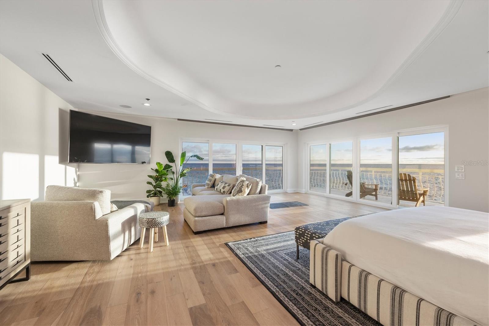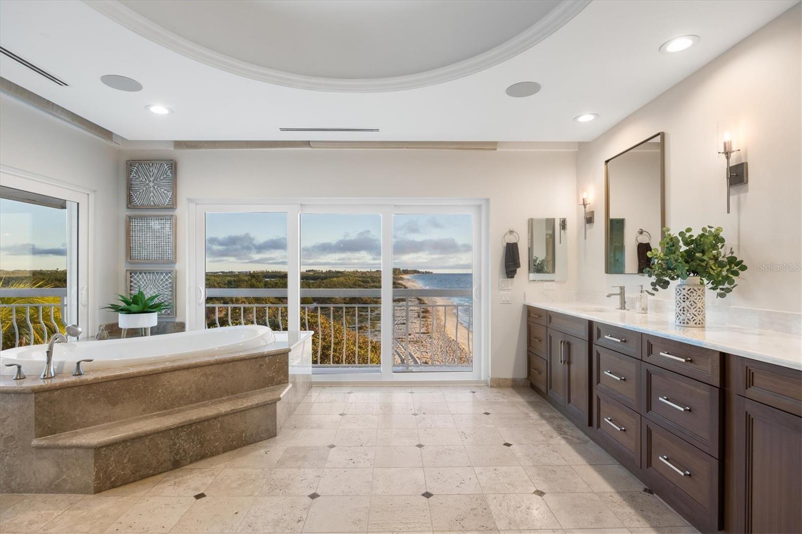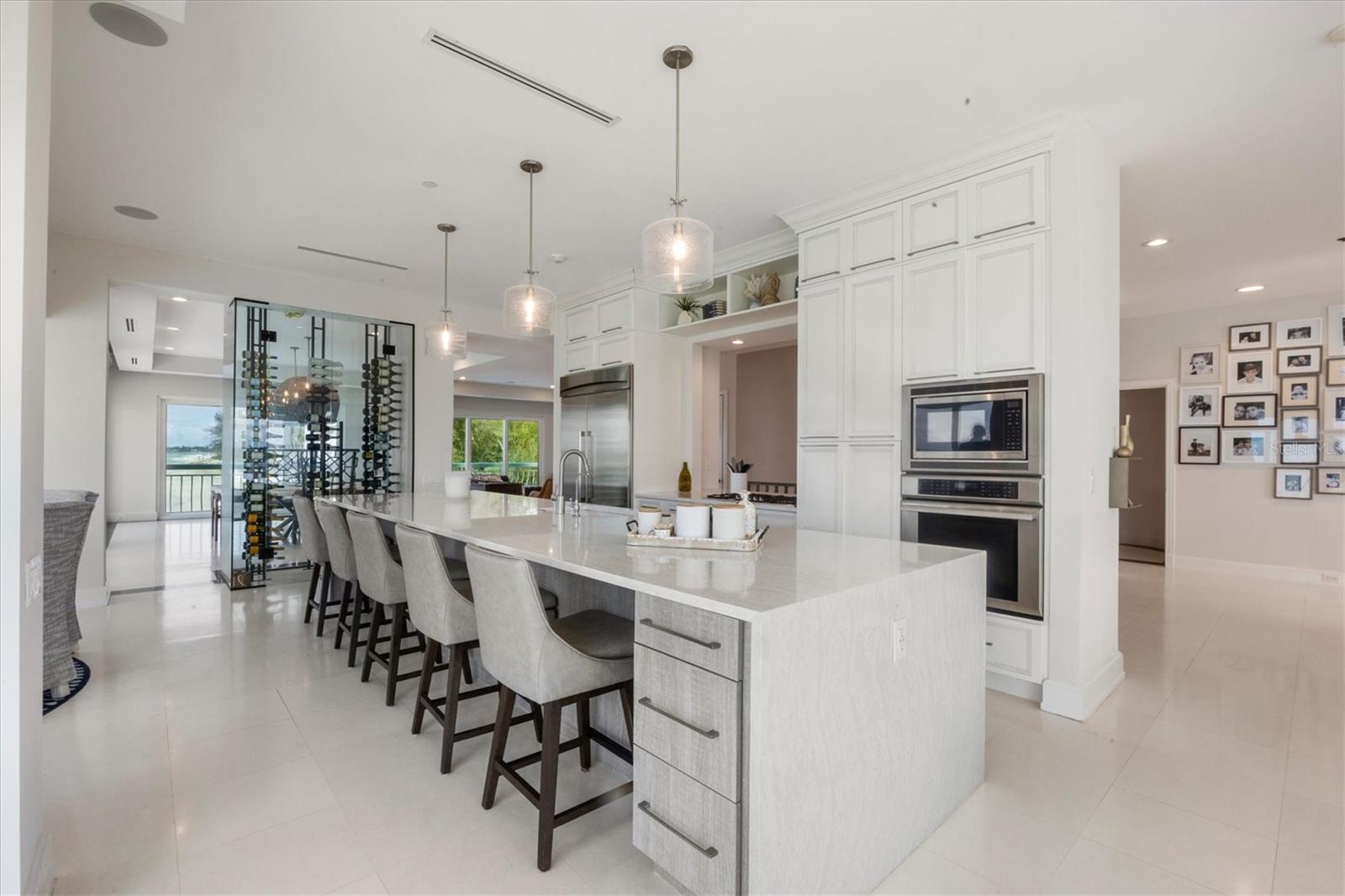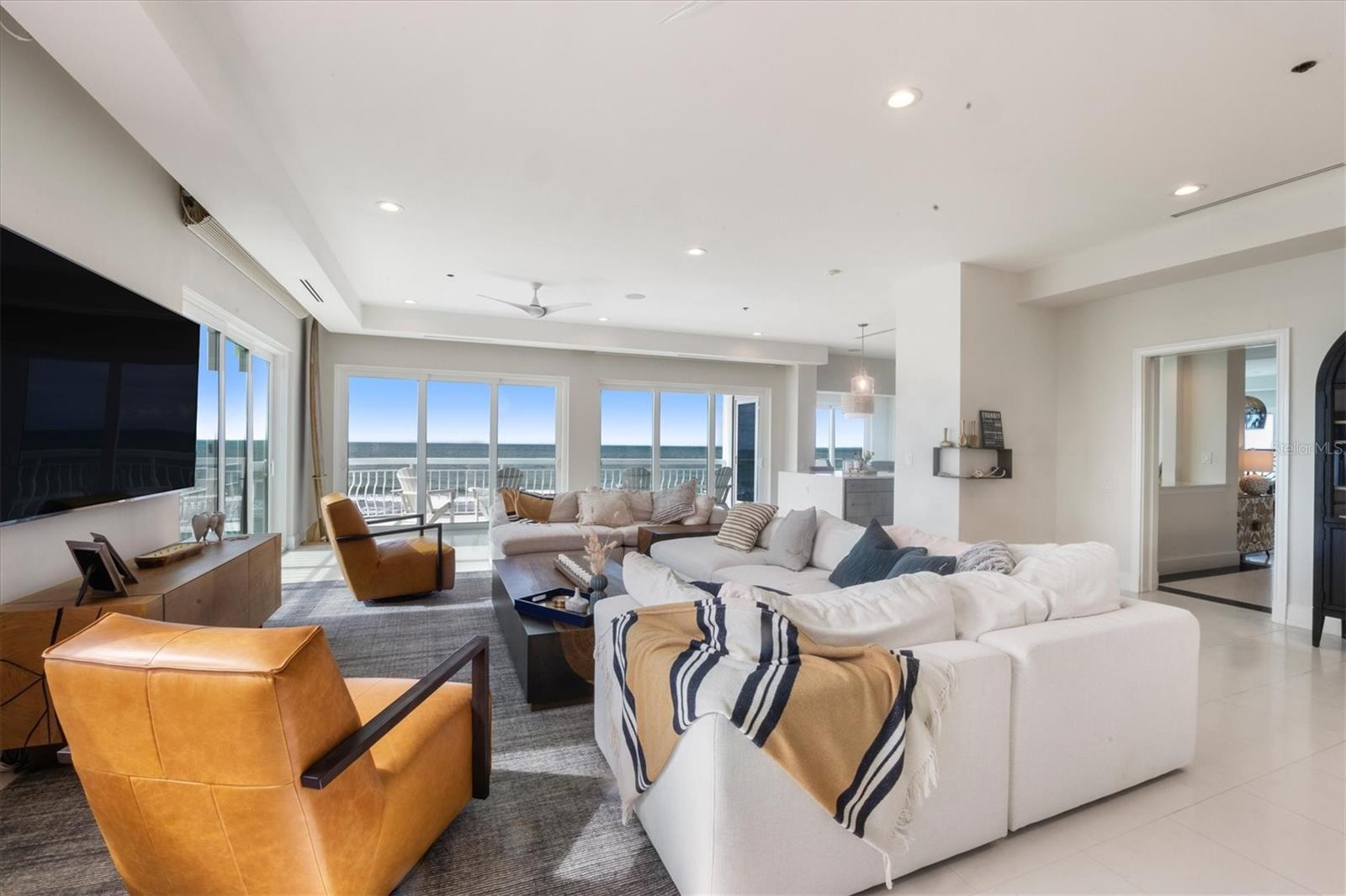 This is island living at its best on world-famous Siesta Key! Revel in unparalleled proximity to the Gulf of Mexico, as this residence places you literally on one of the best beaches in the country, where you can watch the gentle waves roll in and admire the ever-changing sunsets over the calm blue gulf water. Accessed via a private sandy road on the south end of Siesta Key, this beach house is a true island escape. Sited on a Gulf-front lot with 85 feet of frontage with pristine crystal sand beach, this residence stands as a testament to architectural significance and superior craftsmanship. Once inside, the grand staircase gives way to the expansive open floor plan revealing a living space that is both awe-inspiring and welcoming. Immerse yourself in the panoramic vistas of the Gulf of Mexico through floor-to-ceiling sliding glass doors that grace the formal living, dining, kitchen, and family rooms. The kitchen, featuring stunning cabinetry, top-of-the-line stainless steel appliances, and a long rectangular island with counter-height seating, is perfectly positioned between the formal and informal living areas to create one generous entertaining space. The wine enthusiast will love the large, lighted wine display cabinet. Finishing up the main living level is an office and a sitting area. The primary suite is an oasis and boasts tray ceilings, custom closets, and a spa-like bathroom with built-in beverage cooler and sliding glass doors onto a balcony wrapping around the house. Additional bedrooms offer spacious accommodations with walk-in closets and en-suite bathrooms. For added privacy, there is an upper bonus room that could be used as a bedroom, playroom, home gym, or extra office space. The multiple terracing outdoor spaces, private gulf-side pool, firepit, and downstairs game room offer plenty of options to relax and enjoy island living. Turf landscaping and an oversized two-car garage with a charging station complete this incredible property. Start enjoying all that island life on Siesta Key has to offer. Incredible rental potential - sellers have been quoted $50,000 per month.