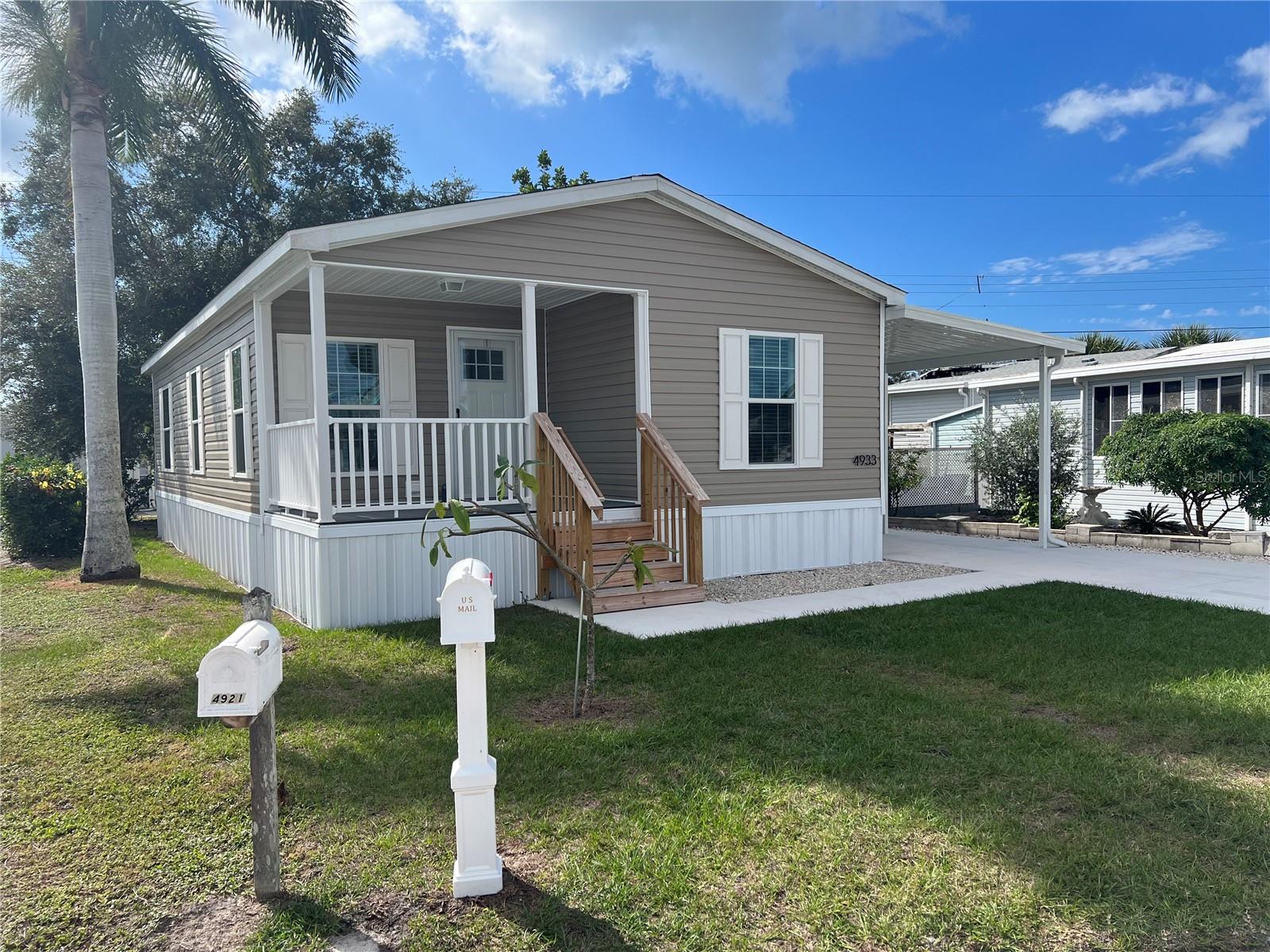 Come see this BRAND NEW 2023 MODULAR HOME with an open plan, featuring 2 bedrooms, 2 baths, loaded with great features! It's nestled on a nice homesite in TRI-PAR ESTATEs, an active 55+ COMMUNITY, where you’ll OWN the homesite along with a deed and title to this new home. Loaded with nice finishes and sleek designs, enjoy new stainless steel appliances, Farmhouse style Kitchen sink, luxury vinyl plank throughout, LED recessed lighting, and blinds and curtains! And yes, a brand new driveway, carport and so much more! WHY BUY a 40-60 year old unit... when this lovely NEW 2023’ HOME, which is fully insurable and has been constructed IN Florida to meet the latest 2023 Florida/County building codes! You’ll own your own land in this special park and recreation district, with a low annual HOA fee to Tri-par is $1584/yr, which is included within your property tax bill, and includes Frontier Internet, cable and Trash. TRI-PAR ESTATEs offers a peaceful setting, with many popular amenities including a large Community pool, spa, Tiki Hut, fitness center, pickleball courts, miniature golf, shuffleboard, horseshoes, game rooms with billiards, ping-pong, and sewing and painting classes, and card games. The spacious clubhouse hosts many events including casual dinners, dances, meetings, church services, and other occasional events. ENJOY an active lifestyle and amenities at a fraction of the cost of most other modular and Mobile home communities! Call for a tour today to learn about one of Sarasota's best kept secrets where YOU can own your piece of Paradise! Fantastic location just north of downtown Sarasota with Marina Jacks, and the World Class Beaches of Siesta Key and Lido Key! Also nearby are several great hospitals, UTC Mall with shopping, dining, and cultural options like museums, and local performing arts! TRI-PAR is golf-cart and motorcycle-friendly community and has optional storage for your R/V and boat! Come see this lovely new home TODAY!