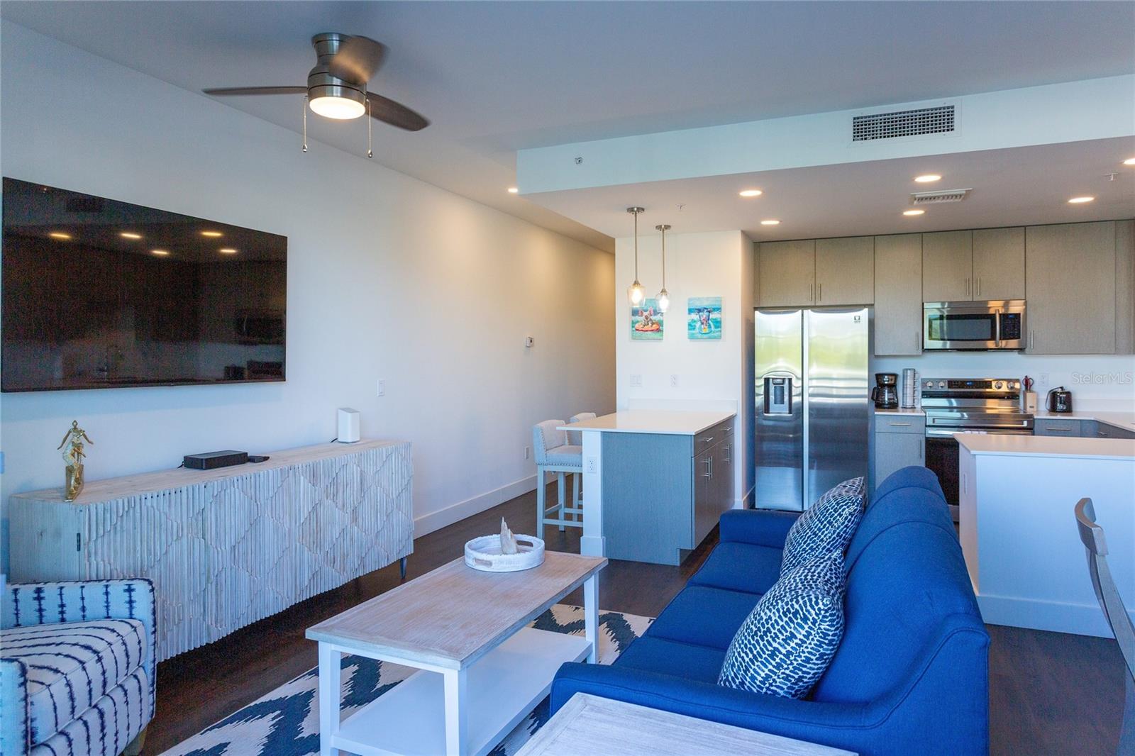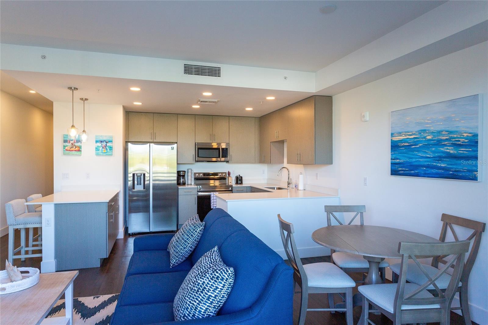 Welcome to the epitome of Sarasota living in this stunning one-bedroom with a den unit at The Strand, a luxurious waterfront condominium less than a mile from downtown Sarasota. Built in 2022, this property boasts spectacular views of Sarasota Bay, offering a visual feast of sunsets and city lights. The unit, fully furnished with over $20,000 worth of beautiful décor, provides an immediate sense of sophistication and comfort. This urban oasis not only embodies a downtown lifestyle but also presents an excellent investment opportunity, as it can be rented weekly. The Strand, home to 152 upscale condos, features a resort-style heated pool and spa, a fitness center, a dog park, and a floating kayak dock for exploring the picturesque bay leading to the Gulf of Mexico. Residents enjoy conveniences like an electric car charging station, a fire pit, and gas grills, enhancing the overall lifestyle experience. Inside the unit, luxury vinyl flooring graces the main living areas, complemented by gorgeous quartz countertops, modern cabinets, and stainless-steel appliances. The abundance of natural light creates an inviting ambiance, making it an ideal space for entertaining. The property includes an assigned covered parking spot, ample guest spaces, and a storage closet for beach essentials or recreational gear. Situated in the heart of Sarasota, this condo is within walking or biking distance to an array of attractions, including restaurants, the new Bay Front park, theaters, museums, and yoga studios. A five-minute drive takes you to the renowned St. Armands Circle and the pristine shores of Lido Beach. Don't miss the chance to make this incredible property your home, vacation retreat, or savvy investment. Call today to discover more details and schedule your private tour of this unparalleled Sarasota gem.
